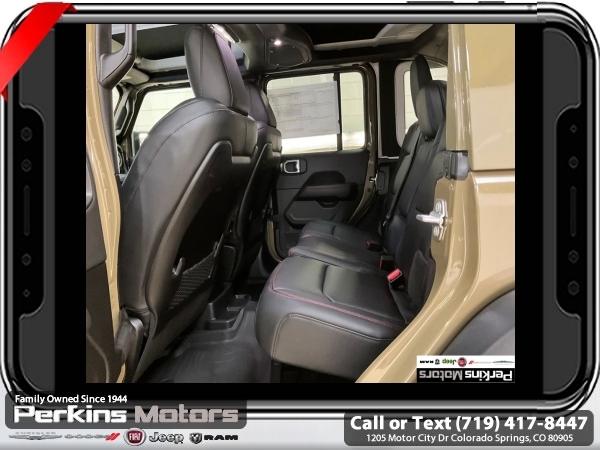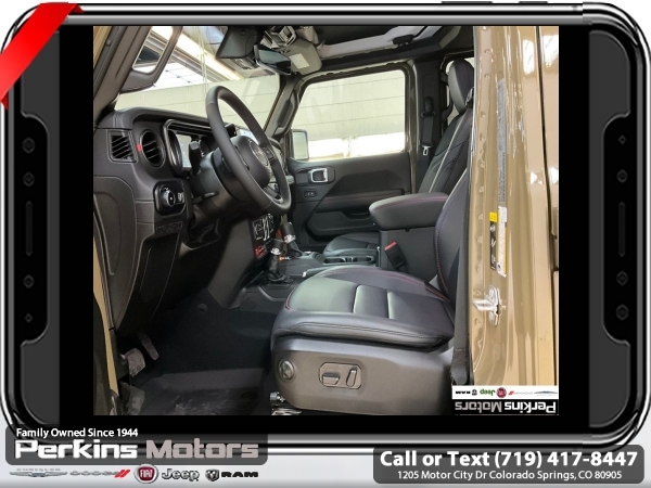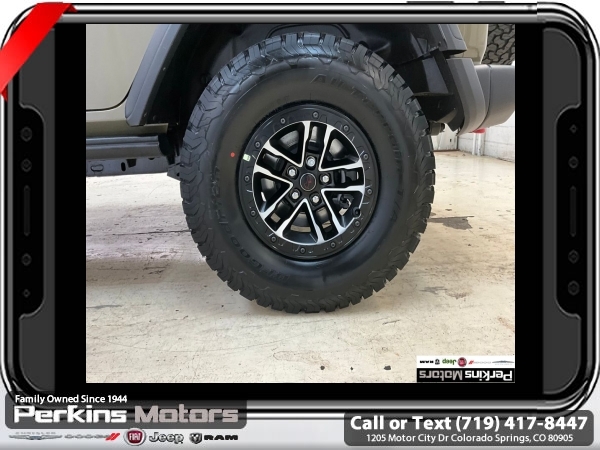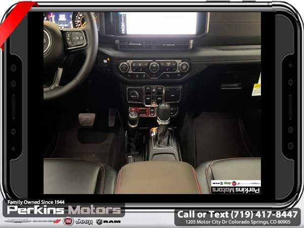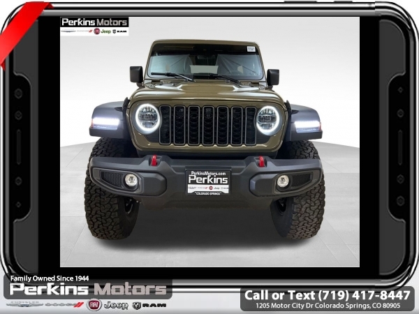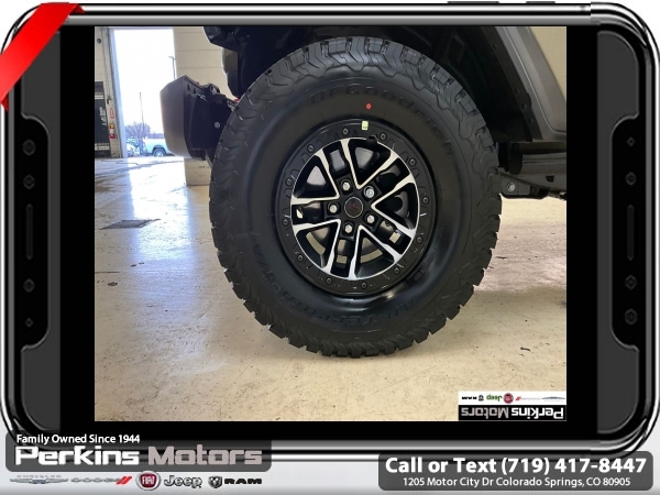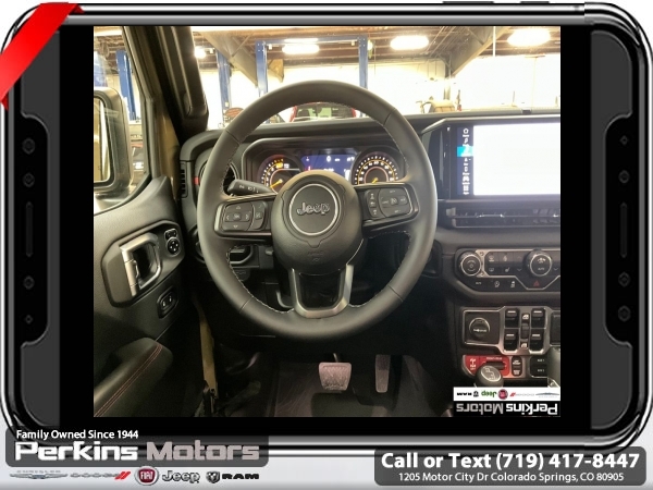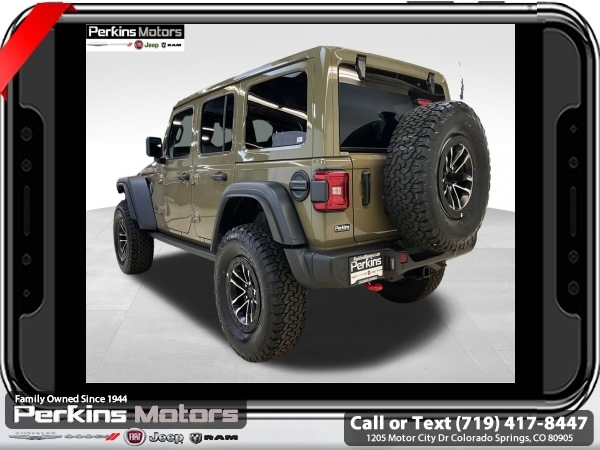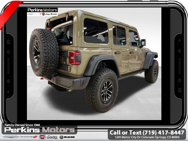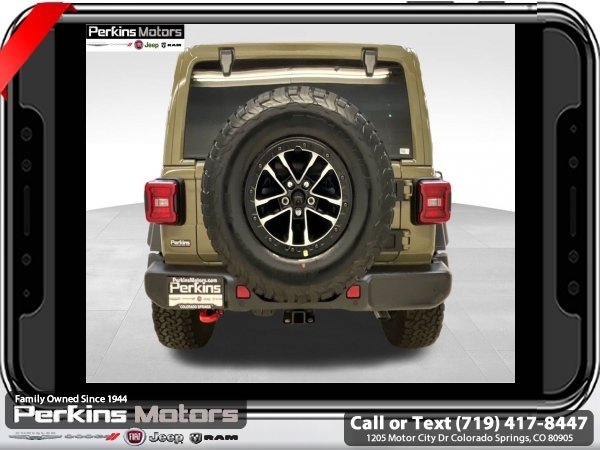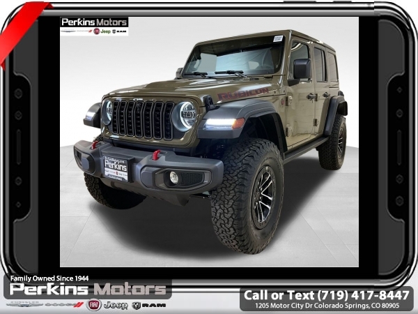 Factory MSRP: $75,175 $9,648 off MSRP! 41 2025 Jeep Wrangler Rubicon 4WD 8-Speed Automatic 3.6L V6 24V VVT<br><br>Check us out at www.perkinsmotors.com to see our specials! Since opening our doors in 1944, we’ve been proud to serve Colorado Springs, CO, and the surrounding areas of Pueblo, Castle Rock and Denver, CO. Throughout this time of being family owned for 80 years, we’ve maintained a firm commitment to our customers: to offer a wide selection of New Chrysler, Dodge, Fiat, Jeep, and Ram vehicles and quality pre-owned vehicles, and provide a quick, no-hassle car-buying process that ensures everyone drives off the lot satisfied with their purchase.<br><br>Convenience Group (Heated Front Seats, Heated Steering Wheel, and Universal Garage Door Opener), Quick Order Package 24R Rubicon, Safety Group (Auto High Beam Headlamp Control, Blind Spot & Cross Path Detection, and ParkSense Rear Park Assist System), Technology Group (12.3 Touchscreen Display, 4G LTE Wi-Fi Hot Spot, Apple CarPlay, Auto-Dimming Rear-View Mirror, Connected Travel & Traffic Services, Connectivity - US/Canada, Google Android Auto, GPS Navigation, HD Radio, Integrated Off-Road Camera, Integrated Voice Command w/Bluetooth, Radio: Uconnect 5 Nav w/12.3 Display, SiriusXM Radio Service, and SiriusXM w/360L), Xtreme 35 Tire Package (35 Tire Suspension, 4.56 Rear Axle Ratio, 97 MPH Vehicle Max Speed Calibration, Anti-Lock 4-Wheel Disc Perf Brakes, and Wheels: 17 x 8 Machined w/Black Pockets), 4-Wheel Disc Brakes, 4.10 Rear Axle Ratio, 4.88 Rear Axle Ratio, 8 Speakers, ABS brakes, Air Conditioning, Alloy wheels, Alpine Premium Audio System, AM/FM radio: SiriusXM, Apple CarPlay/Android Auto, Automatic temperature control, Aux Battery, Auxiliary Switches, Body Color 3-Piece Hard Top, Brake assist, Class II Receiver Hitch, Cloth Low-Back Bucket Seats, Compass, Cruise Control, Delay-off headlights, Driver door bin, Driver vanity mirror, Dual front impact airbags, Dual front side impact airbags, Electronic Stability Control, Emergency communication system: Jeep Connect, Freedom Panel Storage Bag, Front anti-roll bar, Front Bucket Seats, Front Center Armrest w/Storage, Front dual zone A/C, Front fog lights, Front License Plate Bracket (DISC), Front reading lights, Fully automatic headlights, Heated door mirrors, Illuminated entry, Integrated roll-over protection, Jeep Trail Rated Kit, Low tire pressure warning, MOPAR All-Weather Floor Mats, MOPAR Doors Off Mirror Kit, MOPAR Hardtop Headliner, MOPAR Hinge-Gate Reinforcement, Non-Lock Fuel Cap w/o Discriminator, Occupant sensing airbag, Outside temperature display, Overhead airbag, Panic alarm, ParkView Rear Back-Up Camera, Passenger door bin, Passenger vanity mirror, Performance Suspension, Power door mirrors, Power steering, Power windows, Radio data system, Radio: Uconnect 5 w/12.3 Display, Rear anti-roll bar, Rear reading lights, Rear Window Defroster, Rear Window Wiper/Washer, Remote keyless entry, Security system, Split folding rear seat, Steering wheel mounted audio controls, Stop-Start Dual Battery System, Tachometer, Telescoping steering wheel, Tilt steering wheel, Traction control, Trip computer, Variably intermittent wipers, Voltmeter, Wheel Flare Extensions, and Wheels: 17 x 7.5 Machined/Painted Black.