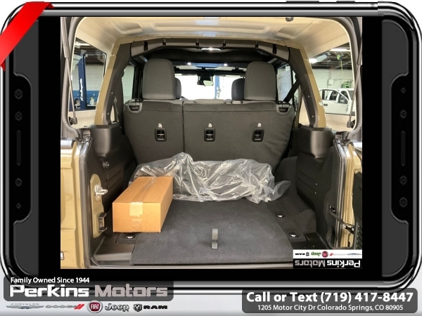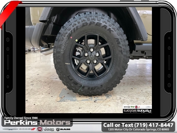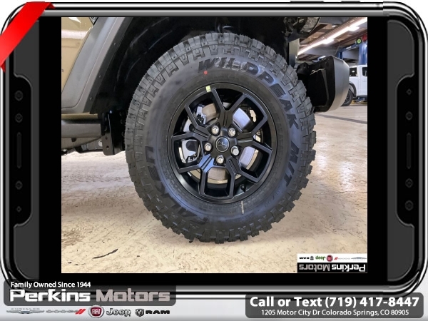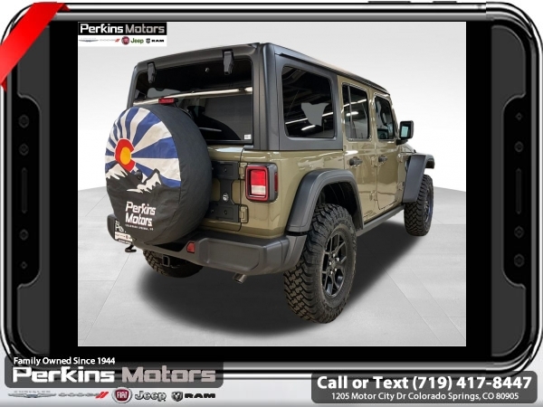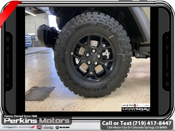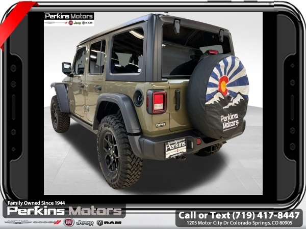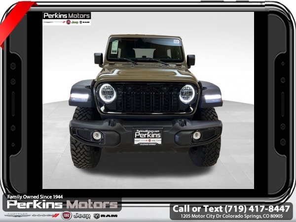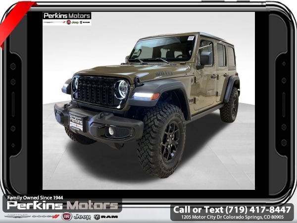 Factory MSRP: $55,945 $7,295 off MSRP! 41 2025 Jeep Wrangler Willys 4WD 8-Speed Automatic 3.6L V6 24V VVT<br><br>Check us out at www.perkinsmotors.com to see our specials! Since opening our doors in 1944, we’ve been proud to serve Colorado Springs, CO, and the surrounding areas of Pueblo, Castle Rock and Denver, CO. Throughout this time of being family owned for 80 years, we’ve maintained a firm commitment to our customers: to offer a wide selection of New Chrysler, Dodge, Fiat, Jeep, and Ram vehicles and quality pre-owned vehicles, and provide a quick, no-hassle car-buying process that ensures everyone drives off the lot satisfied with their purchase.<br><br>Convenience Group (2-Door Passive Entry, Front Door Locks, Air Conditioning w/Auto Temperature Control, Air Filtering, Cluster 7.0 TFT Color Display, Emergency/Assistance Call, Heated Front Seats, Heated Steering Wheel, Remote Start System, and Universal Garage Door Opener), Quick Order Package 24W Willys (4-Wheel Drive Swing Gate Decal, 4.10 Rear Axle Ratio, 7 & 4 Pin Wiring Harness, 97 MPH Vehicle Max Speed Calibration, Advanced Brake Assist, Automatic Headlamps, Auxiliary Switches, Black Grille, Class II Receiver Hitch, Conventional Differential Front Axle, Corning Gorilla Glass, Dana M210 Wide HD Tube Front Axle, Dana M220 Wide Rear Axle, Daytime Running Lamps LED Accents, Deep Tint Sunscreen Windows, E-Locker Rear Axle, Enhanced Adaptive Cruise Control, Front LED Fog Lamps, Full Speed Forward Collision Warning Plus, Injection Molded Black Rear Bumper, LED Premium Reflector Headlamps, Mold In Color Bumper w/Gloss Black, Molded in Color Rubicon Highline Flare, MOPAR All-Weather Floor Mats, Off-Road Plus Mode, Power Heated Mirrors, Premium Wrapped Steering Wheel, Security Alarm, Sun Visors w/Illuminated Vanity Mirrors, Wheels: 17 x 7.5 Painted Black, Willy's Suspension, and Willys Hood Decal), Trailer Tow & Aux Switch Group, 110 MPH Vehicle Max Speed Calibration, 3.45 Overall Top Gear Ratio, 4-Wheel Disc Brakes, 8 Speakers, ABS brakes, Air Conditioning, AM/FM radio: SiriusXM, Apple CarPlay/Android Auto, Aux Battery, Black 3-Piece Hard Top, Brake assist, Cloth Low-Back Bucket Seats, Compass, Cruise Control, Delay-off headlights, Driver door bin, Driver vanity mirror, Dual front impact airbags, Dual front side impact airbags, Electronic Stability Control, Freedom Panel Storage Bag, Front anti-roll bar, Front Bucket Seats, Front Center Armrest w/Storage, Front fog lights, Front reading lights, Illuminated entry, Integrated roll-over protection, Jeep Trail Rated Kit, Low tire pressure warning, MOPAR Hinge-Gate Reinforcement, Non-Lock Fuel Cap w/o Discriminator, Normal Duty Suspension, Occupant sensing airbag, Outside temperature display, Overhead airbag, Panic alarm, ParkView Rear Back-Up Camera, Passenger door bin, Passenger vanity mirror, Power steering, Power windows, Radio data system, Radio: Uconnect 5 w/12.3 Display, Rear anti-roll bar, Rear reading lights, Rear Window Defroster, Rear Window Wiper/Washer, Remote keyless entry, Split folding rear seat, Steering wheel mounted audio controls, Stop-Start Dual Battery System, Tachometer, Telescoping steering wheel, Tilt steering wheel, Traction control, Trip computer, Variably intermittent wipers, and Wheels: 17 x 7.5 Black Steel Styled.