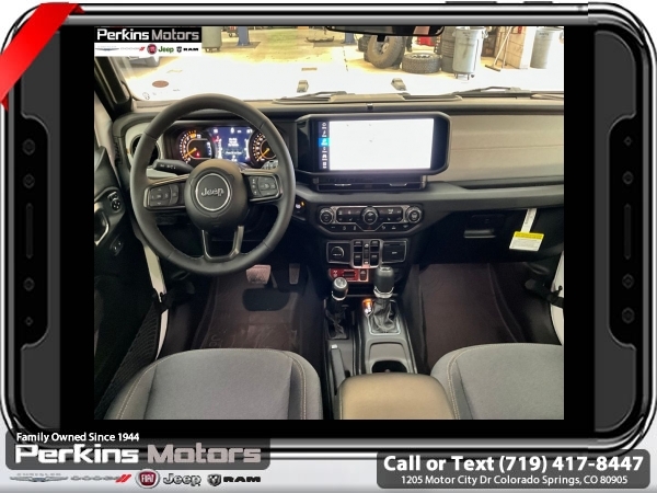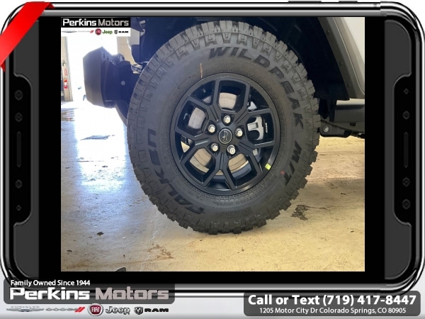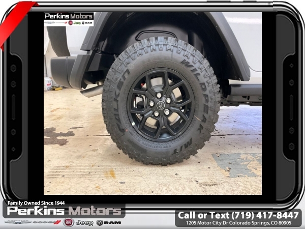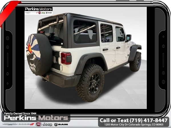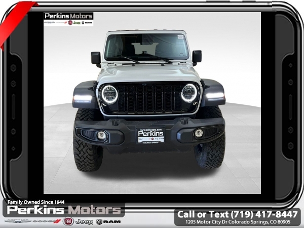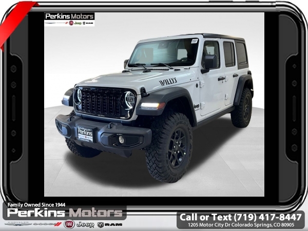 Factory MSRP: $55,695 $7,268 off MSRP! Bright White Clearcoat 2025 Jeep Wrangler Willys 4WD 8-Speed Automatic 2.0L I4 DOHC<br><br>Check us out at www.perkinsmotors.com to see our specials! Since opening our doors in 1944, we’ve been proud to serve Colorado Springs, CO, and the surrounding areas of Pueblo, Castle Rock and Denver, CO. Throughout this time of being family owned for 80 years, we’ve maintained a firm commitment to our customers: to offer a wide selection of New Chrysler, Dodge, Fiat, Jeep, and Ram vehicles and quality pre-owned vehicles, and provide a quick, no-hassle car-buying process that ensures everyone drives off the lot satisfied with their purchase.<br><br>Convenience Group (2-Door Passive Entry, Front Door Locks, Air Conditioning w/Auto Temperature Control, Air Filtering, Cluster 7.0 TFT Color Display, Emergency/Assistance Call, Heated Front Seats, Heated Steering Wheel, Remote Start System, and Universal Garage Door Opener), Quick Order Package 22W Willys (4-Wheel Drive Swing Gate Decal, 4.10 Rear Axle Ratio, 7 & 4 Pin Wiring Harness, 97 MPH Vehicle Max Speed Calibration, Advanced Brake Assist, Automatic Headlamps, Auxiliary Switches, Black Grille, Class II Receiver Hitch, Conventional Differential Front Axle, Corning Gorilla Glass, Dana M210 Wide HD Tube Front Axle, Dana M220 Wide Rear Axle, Daytime Running Lamps LED Accents, Deep Tint Sunscreen Windows, E-Locker Rear Axle, Enhanced Adaptive Cruise Control, Front LED Fog Lamps, Full Speed Forward Collision Warning Plus, Injection Molded Black Rear Bumper, LED Premium Reflector Headlamps, Mold In Color Bumper w/Gloss Black, Molded in Color Rubicon Highline Flare, MOPAR All-Weather Floor Mats, Off-Road Plus Mode, Power Heated Mirrors, Premium Wrapped Steering Wheel, Security Alarm, Sun Visors w/Illuminated Vanity Mirrors, Wheels: 17 x 7.5 Painted Black, Willy's Suspension, and Willys Hood Decal), Safety Group (Auto High Beam Headlamp Control, Blind Spot & Cross Path Detection, LED Taillamps, and ParkSense Rear Park Assist System), 110 MPH Vehicle Max Speed Calibration, 3.45 Overall Top Gear Ratio, 4-Wheel Disc Brakes, 8 Speakers, ABS brakes, Air Conditioning, AM/FM radio: SiriusXM, Apple CarPlay/Android Auto, Aux Battery, Black 3-Piece Hard Top, Brake assist, Cloth Low-Back Bucket Seats, Compass, Cruise Control, Delay-off headlights, Driver door bin, Driver vanity mirror, Dual front impact airbags, Dual front side impact airbags, Electronic Stability Control, Freedom Panel Storage Bag, Front anti-roll bar, Front Bucket Seats, Front Center Armrest w/Storage, Front fog lights, Front reading lights, Illuminated entry, Integrated roll-over protection, Jeep Trail Rated Kit, Low tire pressure warning, MOPAR Doors Off Mirror Kit, MOPAR Hardtop Headliner, MOPAR Hinge-Gate Reinforcement, Non-Lock Fuel Cap w/o Discriminator, Normal Duty Suspension, Occupant sensing airbag, Outside temperature display, Overhead airbag, Panic alarm, ParkView Rear Back-Up Camera, Passenger door bin, Passenger vanity mirror, Power steering, Power windows, Radio data system, Radio: Uconnect 5 w/12.3 Display, Rear anti-roll bar, Rear reading lights, Rear Window Defroster, Rear Window Wiper/Washer, Remote keyless entry, Split folding rear seat, Steering wheel mounted audio controls, Stop-Start Dual Battery System, Tachometer, Telescoping steering wheel, Tilt steering wheel, Traction control, Trip computer, Variably intermittent wipers, and Wheels: 17 x 7.5 Black Steel Styled.