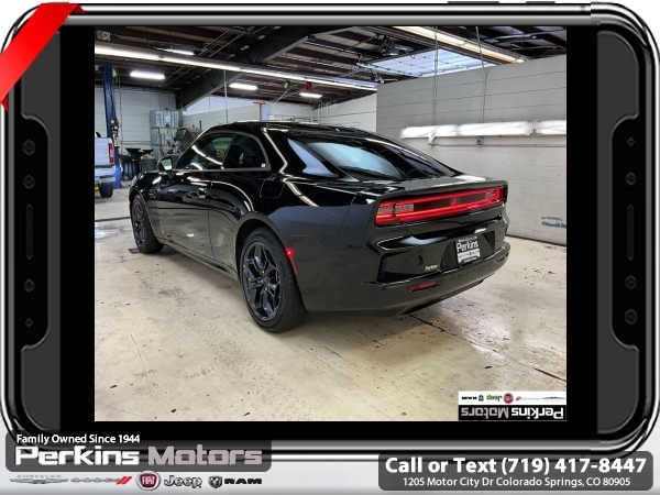 Factory MSRP: $62,685 $10,919 off MSRP! Priced below KBB Fair Purchase Price! Diamond Black Crystal Pearlcoat 2025 Dodge Charger R/T AWD 1-Speed Automatic Electric Motor<br>AWD, Black Artificial Leather.<br>Check us out at www.perkinsmotors.com to see our specials! Since opening our doors in 1944, we’ve been proud to serve Colorado Springs, CO, and the surrounding areas of Pueblo, Castle Rock and Denver, CO. Throughout this time of being family owned for 80 years, we’ve maintained a firm commitment to our customers: to offer a wide selection of New Chrysler, Dodge, Fiat, Jeep, and Ram vehicles and quality pre-owned vehicles, and provide a quick, no-hassle car-buying process that ensures everyone drives off the lot satisfied with their purchase.<br><br>Blacktop Package (Dark Exterior Badging and Nexen Brand Tires), Quick Order Package 25M R/T, Two Tone Paint Group, AWD, Black Artificial Leather, 10 Speakers, 18 x 8.5 Aluminum Wheels, 2-Way Manual Adjust Head Restraints, 2-Way Power Driver Lumbar Adjust, 4-Wheel Disc Brakes, 8-Way Power Driver Seat Adjust, ABS brakes, Air Conditioning, Alloy wheels, AM/FM radio: SiriusXM w/360L, Apple CarPlay/Android Auto, Auto-dimming Rear-View mirror, Automatic temperature control, Black Seats, Brake assist, Bumpers: body-color, Compass, Cruise Control, Delay-off headlights, Driver door bin, Driver vanity mirror, Dual front impact airbags, Dual front side impact airbags, Electronic Stability Control, Emergency communication system: Dodge Connect, Four wheel independent suspension, Front anti-roll bar, Front Bucket Seats, Front Center Armrest, Front dual zone A/C, Front License Plate Bracket, Front reading lights, Fully automatic headlights, Garage door transmitter, Heated door mirrors, Heated Exterior Mirrors, Heated Front Seats, Heated front seats, Heated steering wheel, Illuminated entry, Knee airbag, Leather Shift Knob, Leatherette/Cloth Performance Seats, Low Back Bucket Seats, Low tire pressure warning, Navigation System, Occupant sensing airbag, Outside temperature display, Overhead airbag, Overhead console, Panic alarm, ParkView Rear Back-Up Camera, Passenger door bin, Passenger vanity mirror, Power Adjust Mirrors, Power door mirrors, Power driver seat, Power steering, Power windows, Radio data system, Radio: Uconnect 5 Nav w/12.3 Display, Rear anti-roll bar, Rear reading lights, Rear seat center armrest, Rear window defroster, Remote keyless entry, Security system, Split folding rear seat, Sport steering wheel, Steering wheel mounted audio controls, Telescoping steering wheel, Tilt steering wheel, Traction control, Trip computer, Variably intermittent wipers, and Wheels: 20 x 9 Black Aluminum.<br><br>104/91 City/Highway MPG Sale price includes all manufacture's incentives and dealer discounts. Sale price not available on lease or compatible with special APR. $4500 - 2025 National Retail Consumer Cash. Exp. 06/30/2025