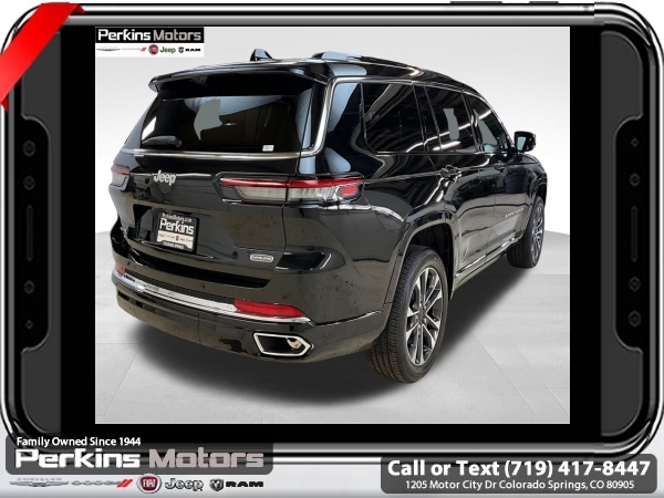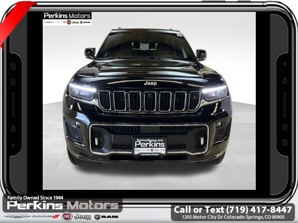 Factory MSRP: $68,030 $5,700 off MSRP! Diamond Black Crystal Pearlcoat 2025 Jeep Grand Cherokee L Overland 4WD 8-Speed Automatic 3.6L V6 24V VVT<br><br>Check us out at www.perkinsmotors.com to see our specials! Since opening our doors in 1944, we’ve been proud to serve Colorado Springs, CO, and the surrounding areas of Pueblo, Castle Rock and Denver, CO. Throughout this time of being family owned for 80 years, we’ve maintained a firm commitment to our customers: to offer a wide selection of New Chrysler, Dodge, Fiat, Jeep, and Ram vehicles and quality pre-owned vehicles, and provide a quick, no-hassle car-buying process that ensures everyone drives off the lot satisfied with their purchase.<br><br>Advanced Protech Group III (Active Driving Assist System, Heads-Up Display, Integrated Off-Road Camera, Interior Rear Facing Camera, Intersection Collision Assist System, Leather Wrapped Steering Wheel, Map-In-Cluster Display, Night Vision/Pedestrian-Animal Detection, Rear Back Up Camera Washer, Surround View Camera System, and Windshield Wiper De-Icer), Luxury Tech Group IV (2nd Row Manual Window Shades, Driver Power Seat Back Massage, Front Passenger Power Seat Back Massage, Nappa Leather Seats (TL), Passenger Seat Memory, Power Adjust 12-Way Driver Seat, Power Adjust 12-Way Front Passenger Seat, Rearview Autodim Digital Display Mirror, and Wireless Charging Pad), Trailer Tow Package (7 & 4 Pin Wiring Harness and Class IV Receiver Hitch), 10 Speakers, 3.45 Rear Axle Ratio, 3rd row seats: split-bench, 4-Wheel Disc Brakes, ABS brakes, Adaptive suspension, Air Conditioning, Alloy wheels, AM/FM radio: SiriusXM with 360L, Anti-whiplash front head restraints, Audio memory, Auto High-beam Headlights, Auto-dimming door mirrors, Auto-dimming Rear-View mirror, Auto-leveling suspension, Automatic temperature control, Brake assist, Bumpers: body-color, Compass, Cruise Control, Delay-off headlights, Driver door bin, Driver vanity mirror, Dual front impact airbags, Dual front side impact airbags, Electronic Stability Control, Emergency communication system, Four wheel independent suspension, Front anti-roll bar, Front Bucket Seats, Front Center Armrest w/Storage, Front dual zone A/C, Front fog lights, Front License Plate Bracket, Front reading lights, Fully automatic headlights, Garage door transmitter, Heated door mirrors, Heated front seats, Heated rear seats, Heated steering wheel, Illuminated entry, Knee airbag, Low tire pressure warning, Memory seat, Model Year Tracking, Nappa Leather Seats, Navigation System, Normal Duty Suspension, Occupant sensing airbag, Outside temperature display, Overhead airbag, Overhead console, Panic alarm, Passenger door bin, Passenger vanity mirror, Power door mirrors, Power driver seat, Power Fold Seatbacks, Power Liftgate, Power moonroof, Power passenger seat, Power steering, Power windows, Radio data system, Radio: Uconnect 5 Nav w/10.1 Display, Rain sensing wipers, Rear air conditioning, Rear anti-roll bar, Rear reading lights, Rear window defroster, Rear window wiper, Reclining 3rd row seat, Remote keyless entry, Security system, Speed-Sensitive Wipers, Split folding rear seat, Spoiler, Steering wheel memory, Steering wheel mounted audio controls, Tachometer, Telescoping steering wheel, Tilt steering wheel, Traction control, Trip computer, Turn signal indicator mirrors, Variably intermittent wipers, Ventilated front seats, Voltmeter, and Wheels: 20 x 8.5 Machined Face Aluminum. Sale price includes all manufacture's incentives and dealer discounts. Sale price not available on lease or compatible with special APR. $1000 - 2025 National Retail Consumer Cash. Exp. 04/30/2025 $1500 - 2025 National Jeep Celebration Event Retail Bonus Cash . Exp. 04/30/2025