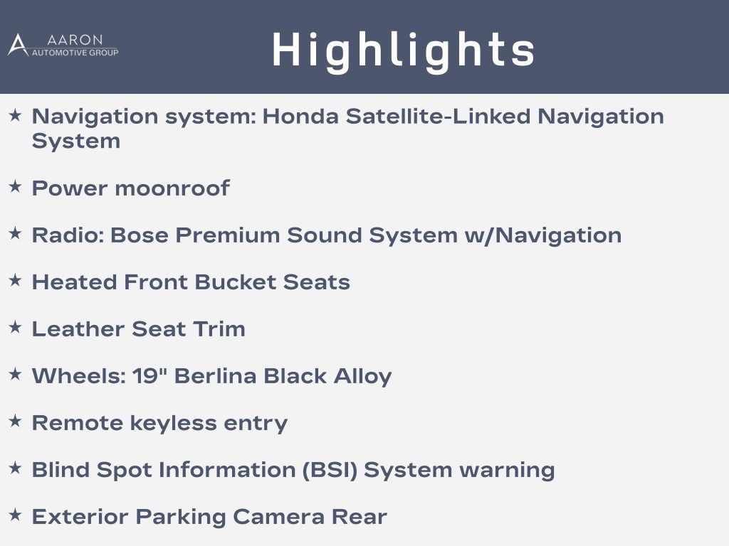 Crystal Black Pearl 2024 Honda CR-V Hybrid Sport Touring AWD eCVT 2.0L I4 DOHC 16V 2.0L I4 DOHC 16V, Blind Spot Information (BSI) System warning, Exterior Parking Camera Rear, Heated Front Bucket Seats, Leather Seat Trim, Navigation system: Honda Satellite-Linked Navigation System, Power Liftgate, Power moonroof, Radio: Bose Premium Sound System w/Navigation, Remote keyless entry, Wheels: 19" Berlina Black Alloy, Wireless Apple CarPlay/Wireless Android Auto.40/34 City/Highway MPG