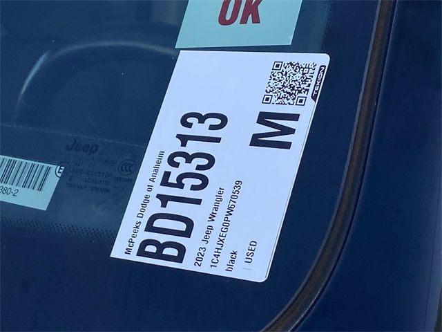 Certified. Odometer is 18346 miles below market average! Clean CARFAX. CARFAX One-Owner. INTERIOR & EXTERIOR PROFESSIONALLY DETAILED FOR DELIVERY, MCPEEK CHRYSLER DODGE JEEP RAM FAMILY OWNED AND OPERATED SINCE 1961 !!!!!.Black Clearcoat 2023 Jeep Wrangler Sahara 4WD 8-Speed AutomaticFCA US LLC Certified Pre-Owned Details: * Powertrain Limited Warranty: 84 Month/100,000 Mile (whichever comes first) from original in-service date * Vehicle History * Roadside Assistance * Limited Warranty: 3 Month/3,000 Mile (whichever comes first) after new car warranty expires or from certified purchase date * Transferable Warranty * Includes First Day Rental, Car Rental Allowance, and Trip Interruption Benefits. SiriusXM 3 month trial subscription * Warranty Deductible: $100 * 125 Point InspectionReceive Free lube and oil filter changes for up to 45,000 miles for 3 years!!! McPeek's Dodge of Anahiem 1221 S. Auto Center Drive Anahiem, CA 92806 714-262-4902.
