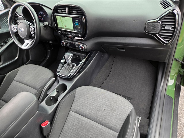 Recent Arrival!CARFAX One-Owner.28/33 City/Highway MPGUndercover Green 2021 Kia Soul EX FWD CVT 2.0L I4 MPI DOHC 16V LEV3-SULEV30 147hpIf you don't drive here, you can't save here!Awards: * JD Power Initial Quality Study (IQS)Price may not include recon fee. 4-Wheel Disc Brakes, 6 Speakers, ABS brakes, Air Conditioning, Alloy wheels, AM/FM radio: SiriusXM, Apple CarPlay & Android Auto, Automatic temperature control, Brake assist, Bumpers: body-color, Cargo Net, Cargo Tray, Carpeted Floor Mats, Delay-off headlights, Driver door bin, Driver vanity mirror, Dual front impact airbags, Dual front side impact airbags, Electronic Stability Control, Emergency communication system: UVO link, Exterior Parking Camera Rear, Front anti-roll bar, Front Bucket Seats, Front Center Armrest, Front dual zone A/C, Front fog lights, Front reading lights, Front wheel independent suspension, Fully automatic headlights, Heated door mirrors, Heated Front Bucket Seats, Heated front seats, Leather Shift Knob, Leather steering wheel, Low tire pressure warning, Navigation System, Occupant sensing airbag, Outside temperature display, Overhead airbag, Overhead console, Passenger door bin, Passenger vanity mirror, Power door mirrors, Power driver seat, Power moonroof, Power steering, Power windows, Premium Cloth Seat Trim, Radio: AM/FM/MP3 Audio System, Rear seat center armrest, Rear window defroster, Rear window wiper, Remote keyless entry, Speed control, Speed-sensing steering, Split folding rear seat, Steering wheel mounted audio controls, Tachometer, Telescoping steering wheel, Tilt steering wheel, Traction control, Trip computer, Variably intermittent wipers, and Wheels: 17" x 6.5 Alloy.