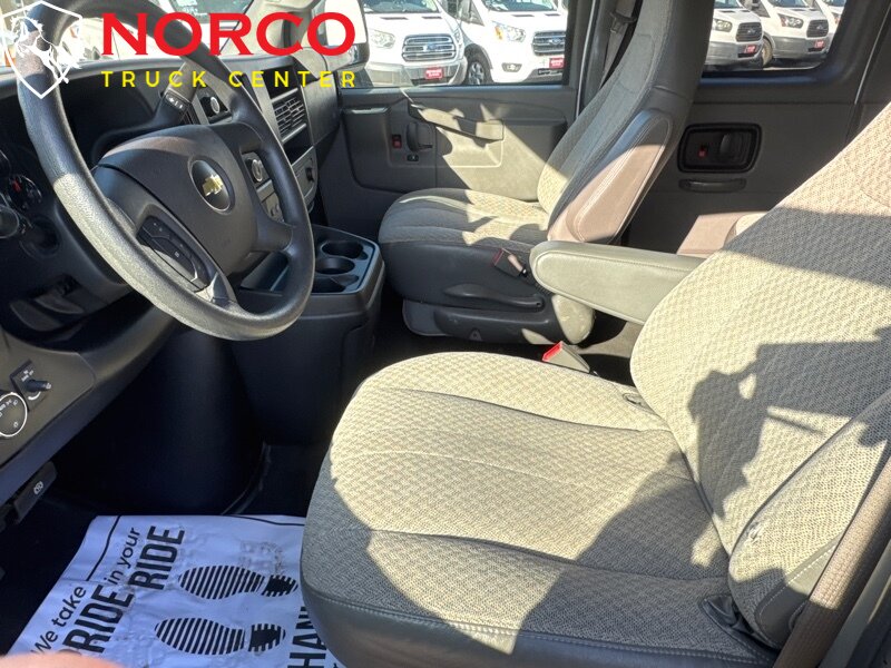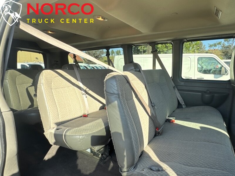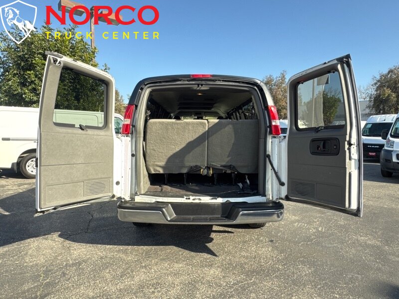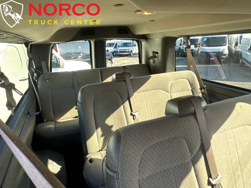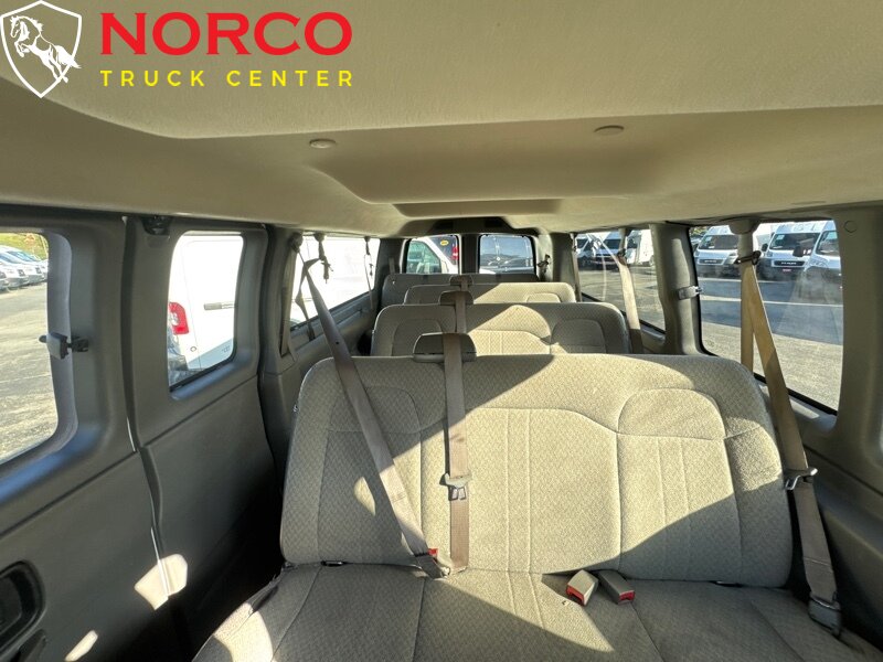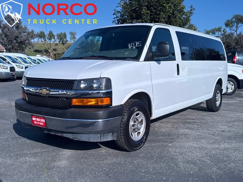 INSTALLED FEATURES: Front air conditioning, Front air conditioning zones: single, Rear air conditioning, Rear air conditioning zones: single, Airbag deactivation: passenger switch, Front airbags: dual, Side airbags: front, Side curtain airbags: front / rear / third row, Antenna type: mast, Auxiliary audio input: jack, Radio: AM/FM, Total speakers: 2, ABS: 4-wheel, Electronic brakeforce distribution, Front brake type: ventilated disc, Power brakes, Rear brake type: ventilated disc, Armrests: front center, Floor mat material: rubber/vinyl, Floor material: carpet, Floor mats: front / rear, Steering wheel trim: urethane, Assist handle: front, Cargo area light, Cruise control, Cupholders: 3 / front, Multi-function remote: keyless entry / panic alarm, Power outlet(s): 115V front / 12V front, Power steering, Reading lights: front, Rearview mirror: manual day/night, Steering wheel: tilt, Steering wheel mounted controls: cruise control, Storage: door pockets / in dash, Vanity mirrors: driver / passenger illuminating, Bumper detail: rear step, Door handle color: black, Exhaust tip color: stainless steel, Front bumper color: chrome, Grille color: black with chrome accents, License plate bracket: front, Mirror color: black, Rear bumper color: chrome, Rear trunk/liftgate: barn, Side door type: passenger-side hinged swing-out, Window trim: black, Clock, Compass, Digital odometer, Fuel economy display: MPG / range, Gauge: oil pressure / tachometer, Multi-function display, Powertrain hour meter, Trip odometer, Warnings and reminders: low fuel level / maintenance due, Daytime running lights, Headlights: auto on/off / halogen, Side mirror adjustments: manual / manual folding, Alternator: 150 amps, Auxiliary oil cooler, Auxiliary transmission fluid cooler, Battery: maintenance-free, Battery rating: 600 CCA, Battery saver, OEM roof height: undefined, Camera system: rearview, Child safety door locks, Child seat anchors: LATCH system, Lane deviation sensors, Pre-collision warning system: audible warning / visual warning, Rearview monitor: in mirror, Fourth row seatbelts: 3-point, Front seatbelts: 3-point, Rear seatbelts: 3-point, Seatbelt pretensioners: front, Third row seatbelts: 3-point, Driver seat manual adjustments: 4 / reclining, Fourth row seat type: 50-50 split bench, Front headrests: 2 / integrated, Front seat type: bucket, Passenger seat manual adjustments: 4 / reclining, Rear seat type: bench, Third row seat type: bench, Upholstery: cloth, Anti-theft system: alarm / vehicle immobilizer, Power door locks: anti-lockout, Hill holder control, Stability control, Traction control, Front shock type: gas, Front spring type: coil, Front stabilizer bar: diameter 35 mm, Front suspension classification: independent, Front suspension type: short and long arm, Rear shock type: gas, Rear spring type: leaf, Rear suspension classification: solid live axle, Rear suspension type: multi-leaf, Driver assistance app: roadside assistance, Satellite communications: OnStar / voice guided directions, Smart device app compatibility: myChevrolet with Connected Access, Smart device app function: maintenance status, Wi-Fi: hotspot, Tow/Haul mode, Spare tire mount location: underbody, Spare tire size: full-size matching, Spare wheel type: steel, Tire Pressure Monitoring System, Wheel covers: partial, Wheels: steel, Front wipers: intermittent, Power windows, Solar-tinted glass, Window defogger: side