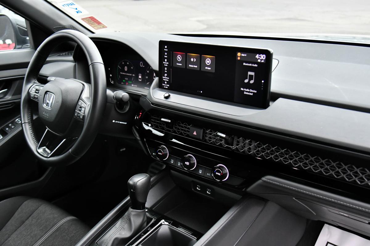 Only 18,751 Miles! Scores 41 Highway MPG and 46 City MPG! This Honda Accord Hybrid delivers a Gas/Electric I-4 2.0 L/122 engine powering this Variable transmission. Wheels: 19 x 8.5J Berlina Black -inc: machined face, Vehicle Stability Assist (VSA) Electronic Stability Control (ESC), Valet Function.*This Honda Accord Hybrid Comes Equipped with These Options *Trunk Rear Cargo Access, Trip Computer, Transmission: Electronic Continuously Variable -inc: econ, normal, sport and individual modes, Traffic Jam Assist, Tires: 235/40R19 96V AS, Tire Specific Low Tire Pressure Warning, Tire mobility kit, Strut Front Suspension w/Coil Springs, Speed Sensitive Variable Intermittent Wipers, Smart Device Remote Engine Start.