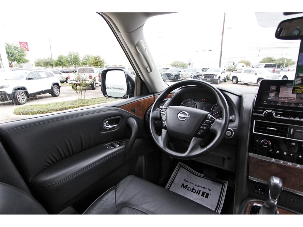 Central Houston Nissan is proud to present you with another True Market Priced Pre-Owned Vehicle. This 2023 Nissan Armada SL Nissan Certified is loaded with the following Factory Options: Nissan Certified Certified Captain's Chairs Package (2nd Row Captain's Chairs and 2nd Row Center Console w/Padded Armrest), Nissan Certified Certified, 13 Speakers, 2.94 Axle Ratio, 3rd Row Carpeted Floor Mats - Captain Seat, 3rd row seats: split-bench, 4-Wheel Disc Brakes, ABS brakes, Air Conditioning, Alloy wheels, AM/FM radio: SiriusXM, Anti-whiplash front head restraints, Auto High-beam Headlights, Auto tilt-away steering wheel, Auto-dimming door mirrors, Auto-dimming Rear-View mirror, Auto-leveling suspension, Automatic temperature control, Bose 13-Speaker Premium Audio System, Brake assist, Bumpers: body-color, Delay-off headlights, Driver door bin, Driver vanity mirror, Dual front impact airbags, Dual front side impact airbags, Electronic Stability Control, Emergency communication system: NissanConnect Services, Exterior Parking Camera Rear, Four wheel independent suspension, Front anti-roll bar, Front Bucket Seats, Front Center Armrest, Front dual zone A/C, Front fog lights, Front reading lights, Fully automatic headlights, Garage door transmitter: HomeLink, Heated door mirrors, Heated Front Bucket Seats, Heated front seats, Heated steering wheel, Illuminated entry, Knee airbag, Leather Shift Knob, Leather-Appointed Seat Trim, Low tire pressure warning, Memory seat, Navigation System, NissanConnect featuring Apple CarPlay and Android Auto, Occupant sensing airbag, Outside temperature display, Overhead airbag, Overhead console, Panic alarm, Passenger door bin, Passenger vanity mirror, Power door mirrors, Power driver seat, Power Liftgate, Power moonroof, Power passenger seat, Power steering, Power windows, Premium audio system: Bose, Radio: NissanConnect w/SiriusXM, Rear air conditioning, Rear anti-roll bar, Rear reading lights, Rear seat center armrest, Rear window defroster, Rear window wiper, Reclining 3rd row seat, Remote keyless entry, Security system, Speed control, Speed-sensing steering, Speed-Sensitive Wipers, Split folding rear seat, Spoiler, Steering wheel memory, Steering wheel mounted audio controls, Tachometer, Telescoping steering wheel, Tilt steering wheel, Traction control, Trip computer, Turn signal indicator mirrors, Variably intermittent wipers, Voltmeter, and Wheels: 20" x 8J Painted Alloy!!Central Houston Nissan is more than just your typical car dealership. When our customers visit us, our goal is to provide quality vehicles, exceptional service and a friendly atmosphere. Our staff has been trained to create ease during your purchase or service experience and we are always making sure you get everything you want and deserve out of your visit. Our vision and mission is an employee-centered and customer-focused environment. Vehicles may be subject to prep package and market adjustment. When you buy from Central Houston Nissan, we'll make it the best car buying experience you've ever had. When you purchase a New Nissan or a qualifying Pre-Owned vehicle from Central Houston Nissan, you are automatically enrolled into our Central Houston Nissan Central Care Program at no cost to you. You can’t beat that! Vehicles may be subject to prep package and market adjustment. Stop by 2901 S Loop W, Houston, Texas 77054 today!!!