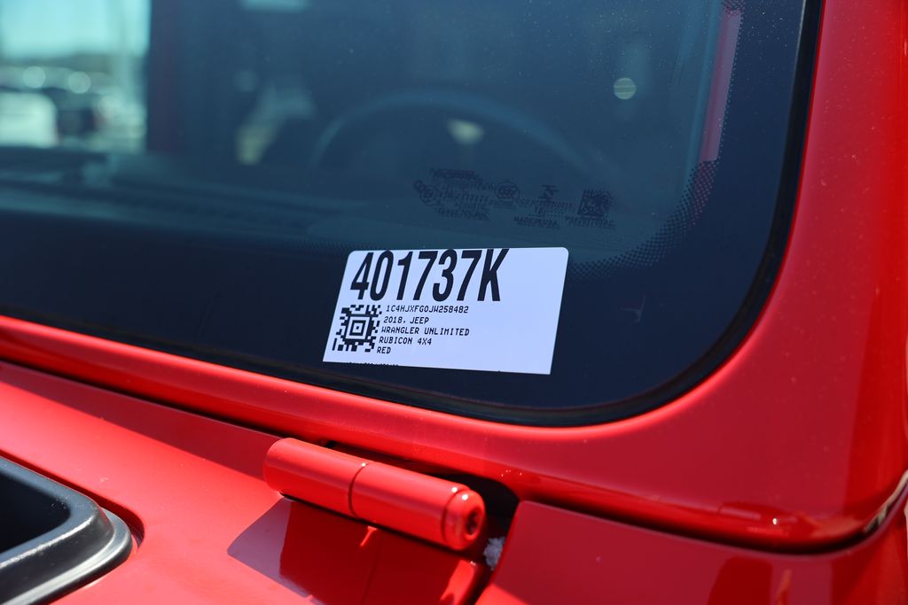 Firecracker Red Clearcoat 2018 Jeep Wrangler Unlimited Rubicon 4WD 8-Speed Automatic 3.6L V6 24V VVT 1-Year SiriusXM Guardian Trial, 240 Amp Alternator, 5-Year SiriusXM Traffic Service, 5-Year SiriusXM Travel Link Service, 7 & 4 Pin Wiring Harness, 700 Amp Maintenance Free Battery, 8.4" Touchscreen Display, Alpine Premium Audio System, Auto-Dimming Rear-View Mirror, Auxiliary Switches, Blind Spot & Cross Path Detection, Body Color 3-Piece Hard Top, Class II Receiver Hitch, Cold Weather Group, Daytime Running Lamps LED Accents, Electronic Infotainment System Group, Freedom Panel Storage Bag, Front LED Fog Lamps, GPS Navigation, HD Radio, Heated Front Seats, Heated Steering Wheel, LED Lighting Group, LED Reflector Headlamps, LED Taillamps, ParkSense Rear Park Assist System, ParkView Rear Back-Up Camera, Quick Order Package 24R, Radio: Uconnect 4C Nav w/8.4" Display, Rear Window Defroster, Rear Window Wiper/Washer, Remote keyless entry, Remote Proximity Keyless Entry, Remote Start System, Roadside Assistance & 9-1-1 Call, Safety Group, SiriusXM Traffic Plus, SiriusXM Travel Link, Steel Bumper Group, Steel Front Bumper, Steel Rear Bumper, Trailer Tow & HD Electrical Group, Wheels: 17" x 7.5" Polished w/Black Pockets.Recent Arrival! Odometer is 2138 miles below market average!Awards: * 2018 KBB.com 10 Most Awarded Brands