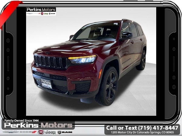 2024 Jeep Grand Cherokee L Altitude All Blacked Out, All the Right Moves<br>Velvet Red Pearlcoat • 4WD • 3.6L V6 • 8-Speed Automatic • One-Owner | Certified<br><br>This isnt just an SUV. Its a 3-row velvet-gliding, power-lifting, gloss-black stunner with brains, brawn, and just the right amount of attitude.<br><br>Altitude Appearance Package Gloss black wheels, blacked-out accents, and zero apologies<br><br>7-Passenger Power 3rd-row seating plus USB ports to keep the crew charged and comfortable<br><br>Comfort That Flexes Heated suede/leatherette seats, heated steering wheel, remote start<br><br>Loaded with Tech Wireless charging, rain-sensing wipers, power liftgate, selectable tire fill alert<br><br>Certified Pre-Owned 7-Year/100K Mile Powertrain Coverage and Roadside Assistance<br><br>Available now at Perkins Motors Elevating Colorado drives since 1944<br>Discover more at www.perkinsmotors.com