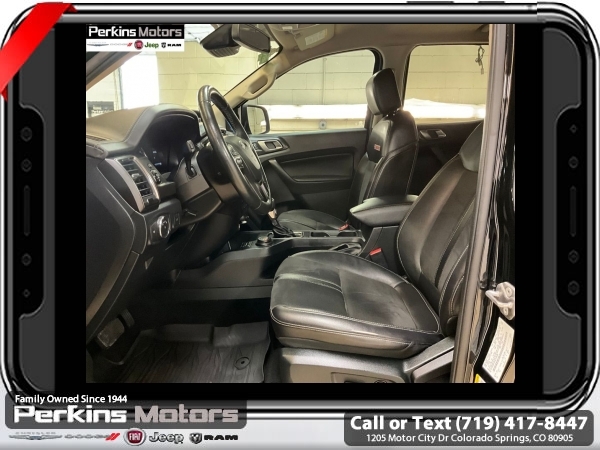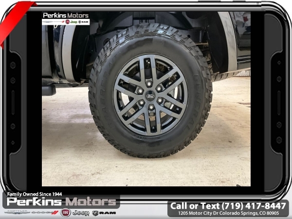 Shadow Black 4WD EcoBoost 2.3L I4 GTDi DOHC Turbocharged VCT 10-Speed Automatic<br><br>Tremor, 4WD, 2 4.2 Colored Productivity Screens, Adaptive Cruise Control, Black Interior Accents, Black Off-Road Hoop Steps, Blk Mesh Grille w/Magnetic Pntd Surround/Blk Bars, Class IV Trailer Hitch Receiver, Electronic-Locking Rear Differential, Equipment Group 501A High, Forward Sensing System, Fr Lthr-Trimmed Bucket Seats w/Miko Suede Inserts, Heated door mirrors, Heated front seats, Magnetic Painted Fender Vent Surround, Magnetic Painted Front & Rear Bumper, Magnetic Painted Wheel Arch Flare, Navigation, Off-Road Screen in Cluster, Off-Road Tuned Suspension w/FOX Dampers, Power passenger seat, Radio: B&O Sound System by Bang & Olufsen, Rain-Sensing Wipers, Rear Tow Hooks, Remote Start, SYNC 3, Technology Package, Terrain Management System, Trail Control, Trailer Tow Package, Tray Style Floor Liner w/Carpet Floor Mats, Tremor Box Decal, Tremor Off-Road Package, Universal Garage Door Opener (UGDO), Upfitter Switches (6), Wheels: 17 Magnetic Painted Aluminum, Wheels: 18 Machined Alum w/Stealth Gray Pockets.<br><br><br>CARFAX One-Owner.<br><br>Check us out at www.perkinsmotors.com to see our specials! Since opening our doors in 1944, we’ve been proud to serve Colorado Springs, CO, and the surrounding areas of Pueblo, Castle Rock and Denver, CO. Throughout this time of being family owned for 80 years, we’ve maintained a firm commitment to our customers: to offer a wide selection of New Chrysler, Dodge, Fiat, Jeep, and Ram vehicles and quality pre-owned vehicles, and provide a quick, no-hassle car-buying process that ensures everyone drives off the lot satisfied with their purchase.<br><br><br>Equipment Group 501A High (2 4.2 Colored Productivity Screens, Radio: B&O Sound System by Bang & Olufsen, Rain-Sensing Wipers, Remote Start, SYNC 3, and Universal Garage Door Opener (UGDO)), Technology Package (Adaptive Cruise Control, Forward Sensing System, and Navigation), Trailer Tow Package (Class IV Trailer Hitch Receiver), Tremor Off-Road Package (Black Interior Accents, Black Off-Road Hoop Steps, Blk Mesh Grille w/Magnetic Pntd Surround/Blk Bars, Electronic-Locking Rear Differential, Fr Lthr-Trimmed Bucket Seats w/Miko Suede Inserts, Magnetic Painted Fender Vent Surround, Magnetic Painted Front & Rear Bumper, Magnetic Painted Wheel Arch Flare, Off-Road Screen in Cluster, Off-Road Tuned Suspension w/FOX Dampers, Rear Tow Hooks, Terrain Management System, Trail Control, Tray Style Floor Liner w/Carpet Floor Mats, Tremor Box Decal, Upfitter Switches (6), and Wheels: 17 Magnetic Painted Aluminum), 4WD, Heated door mirrors, Heated front seats, Power passenger seat, Wheels: 18 Machined Alum w/Stealth Gray Pockets, 4-Wheel Disc Brakes, 6 Speakers, ABS brakes, Air Conditioning, Alloy wheels, AM/FM radio: SiriusXM, AM/FM Stereo, Auto High-beam Headlights, Auto Start-Stop Technology, Auto-dimming Rear-View mirror, Automatic temperature control, Brake assist, Bumpers: body-color, Compass, Cruise Control, Delay-off headlights, Driver door bin, Driver vanity mirror, Dual front impact airbags, Dual front side impact airbags, Electronic Stability Control, Emergency communication system: SYNC 3 911 Assist, Exterior Parking Camera Rear, Front anti-roll bar, Front Bucket Seats, Front Center Armrest, Front dual zone A/C, Front fog lights, Front Heated Leather-Trimmed Bucket Seats, Front reading lights, Front wheel independent suspension, Fully automatic headlights, Illuminated entry, Leather Shift Knob, Leather steering wheel, Low tire pressure warning, Occupant sensing airbag, Outside temperature display, Overhead airbag, Overhead console, Panic alarm, Passenger door bin, Passenger vanity mirror, Power door mirrors, Power driver seat, Power steering, Power windows, Rear Parking Sensors, Rear reading lights, Rear seat center armrest, Rear step bumper, Rear window defroster, Remote keyless entry, Security system, SiriusXM Satellite Radio, Speed-sensing steer