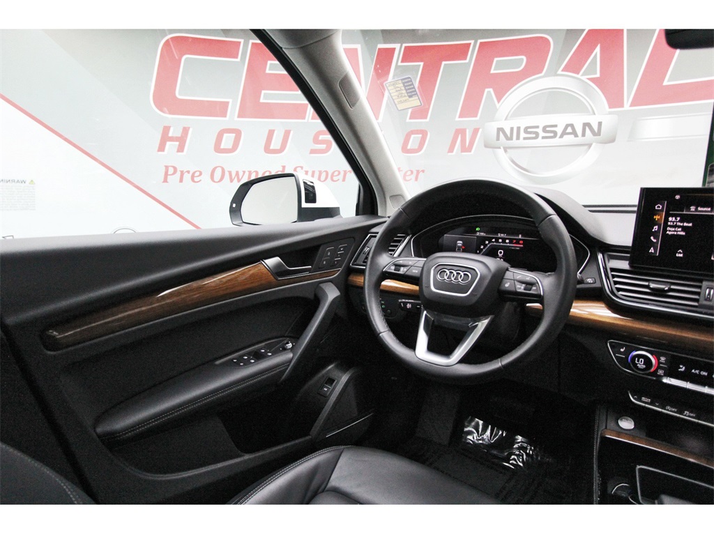 Central Houston Nissan is proud to present you with another True Market Priced Pre-Owned Vehicle. This 2023 Audi Q5 45 S line Premium quattro is loaded with the following Factory Options: Leather Leather, 10 Speakers, 4-Wheel Disc Brakes, 5.302 Axle Ratio, ABS brakes, Air Conditioning, Alloy wheels, AM/FM radio, Auto-dimming Rear-View mirror, Automatic temperature control, Brake assist, Bumpers: body-color, Compass, Delay-off headlights, Driver door bin, Driver vanity mirror, Dual front impact airbags, Dual front side impact airbags, Electronic Stability Control, Emergency communication system: Audi connect CARE, Exterior Parking Camera Rear, Four wheel independent suspension, Front anti-roll bar, Front Bucket Seats, Front Center Armrest, Front dual zone A/C, Front fog lights, Front reading lights, Garage door transmitter: HomeLink, Genuine wood console insert, Genuine wood dashboard insert, Genuine wood door panel insert, Heated 8-Way Power Front Bucket Seats, Heated door mirrors, Heated front seats, Illuminated entry, Leather Seating Surfaces, Leather Shift Knob, Low tire pressure warning, Occupant sensing airbag, Outside temperature display, Overhead airbag, Overhead console, Panic alarm, Passenger door bin, Passenger vanity mirror, Power door mirrors, Power driver seat, Power Liftgate, Power passenger seat, Power steering, Power windows, Radio data system, Radio: Audi Sound System, Rain sensing wipers, Rear air conditioning, Rear anti-roll bar, Rear fog lights, Rear reading lights, Rear seat center armrest, Rear window defroster, Rear window wiper, Remote keyless entry, Roof rack, Security system, Speed control, Speed-sensing steering, Speed-Sensitive Wipers, Split folding rear seat, Spoiler, Steering wheel mounted audio controls, Tachometer, Telescoping steering wheel, Tilt steering wheel, Traction control, Trip computer, Turn signal indicator mirrors, Variably intermittent wipers, and Wheels: 18" 5-Arm-Turbine Design!!Central Houston Nissan is more than just your typical car dealership. When our customers visit us, our goal is to provide quality vehicles, exceptional service and a friendly atmosphere. Our staff has been trained to create ease during your purchase or service experience and we are always making sure you get everything you want and deserve out of your visit. Our vision and mission is an employee-centered and customer-focused environment. Vehicles may be subject to prep package and market adjustment. When you buy from Central Houston Nissan, we'll make it the best car buying experience you've ever had. When you purchase a New Nissan or a qualifying Pre-Owned vehicle from Central Houston Nissan, you are automatically enrolled into our Central Houston Nissan Central Care Program at no cost to you. You can’t beat that! Vehicles may be subject to prep package and market adjustment. Stop by 2901 S Loop W, Houston, Texas 77054 today!!!