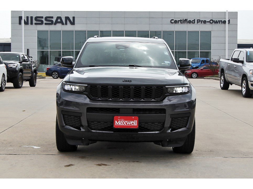Central Houston Nissan is proud to present you with another True Market Priced Pre-Owned Vehicle. This 2023 Jeep Grand Cherokee L Altitude is loaded with the following Factory Options: Altitude Appearance Package, Quick Order Package 23B Altitude (115V Auxiliary Power Outlet, 3rd Row Charge-Only USB Ports, Black Headliner, Capri Leatherette/Suede Seats, Gloss Black Exterior Accents, Heated Steering Wheel, Molded In Color Black/Gloss Black Roof Rails, Rain Sensitive Windshield Wipers, Remote Start System, and Wheels: 18" x 8.0" Fully Painted Aluminum 1), 3.45 Rear Axle Ratio, 3rd row seats: split-bench, 4-Wheel Disc Brakes, 6 Speakers, ABS brakes, Air Conditioning, Alloy wheels, Anti-whiplash front head restraints, Automatic temperature control, Brake assist, Bumpers: body-color, Cloth Seats, Compass, Delay-off headlights, Driver door bin, Driver vanity mirror, Dual front impact airbags, Dual front side impact airbags, Electronic Stability Control, Emergency communication system, Four wheel independent suspension, Front anti-roll bar, Front Bucket Seats, Front Center Armrest w/Storage, Front dual zone A/C, Front License Plate Bracket, Front reading lights, Fully automatic headlights, Heated door mirrors, Illuminated entry, Knee airbag, Low tire pressure warning, Manual Fold Seatbacks, Normal Duty Suspension, Occupant sensing airbag, Outside temperature display, Overhead airbag, Overhead console, Panic alarm, ParkView Rear Back-Up Camera, Passenger door bin, Passenger vanity mirror, Power door mirrors, Power driver seat, Power steering, Power Sunroof (DISC), Power windows, Radio data system, Radio: Uconnect 5 w/8.4" Display, Rear air conditioning, Rear anti-roll bar, Rear reading lights, Rear window defroster, Rear window wiper, Reclining 3rd row seat, Remote keyless entry, Security system, Speed control, Speed-Sensitive Wipers, Split folding rear seat, Spoiler, Steering wheel mounted audio controls, Tachometer, Telescoping steering wheel, Tilt steering wheel, Traction control, Trip computer, Variably intermittent wipers, Voltmeter, and Wheels: 18" x 8.0" Fully Painted Aluminum!!Central Houston Nissan is more than just your typical car dealership. When our customers visit us, our goal is to provide quality vehicles, exceptional service and a friendly atmosphere. Our staff has been trained to create ease during your purchase or service experience and we are always making sure you get everything you want and deserve out of your visit. Our vision and mission is an employee-centered and customer-focused environment. Vehicles may be subject to prep package and market adjustment. When you buy from Central Houston Nissan, we'll make it the best car buying experience you've ever had. When you purchase a New Nissan or a qualifying Pre-Owned vehicle from Central Houston Nissan, you are automatically enrolled into our Central Houston Nissan Central Care Program at no cost to you. You can’t beat that! Vehicles may be subject to prep package and market adjustment. Stop by 2901 S Loop W, Houston, Texas 77054 today!!!
