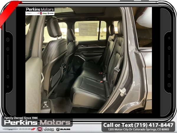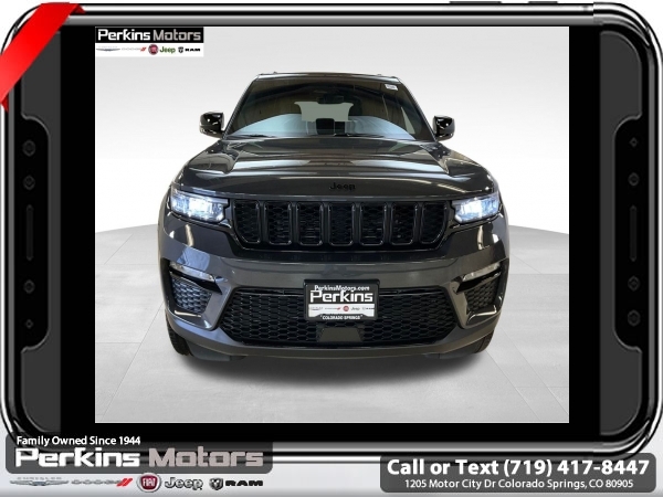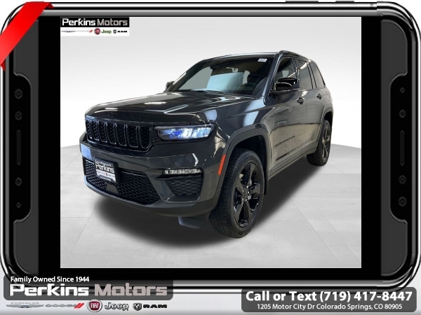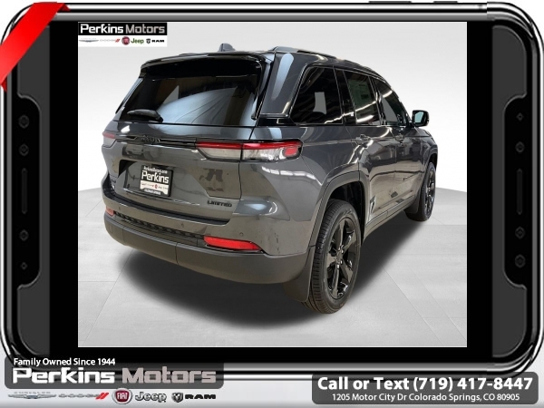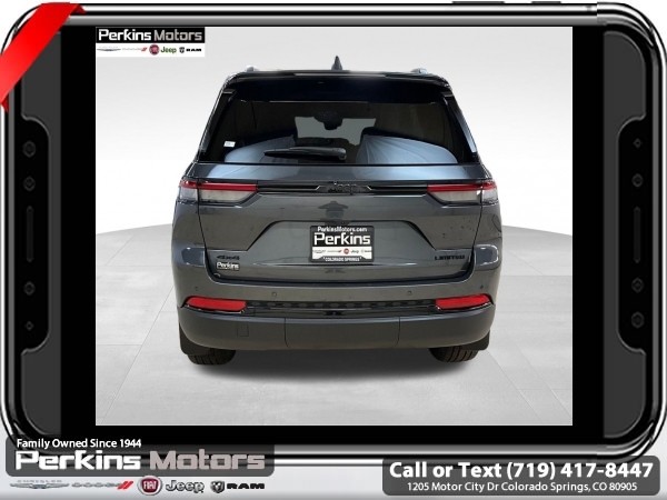 Factory MSRP: $55,730 $7,103 off MSRP! Baltic Gray Metallic Clearcoat 2025 Jeep Grand Cherokee Limited 4WD 8-Speed Automatic 3.6L V6 24V VVT<br>4WD.<br>Check us out at www.perkinsmotors.com to see our specials! Since opening our doors in 1944, we’ve been proud to serve Colorado Springs, CO, and the surrounding areas of Pueblo, Castle Rock and Denver, CO. Throughout this time of being family owned for 80 years, we’ve maintained a firm commitment to our customers: to offer a wide selection of New Chrysler, Dodge, Fiat, Jeep, and Ram vehicles and quality pre-owned vehicles, and provide a quick, no-hassle car-buying process that ensures everyone drives off the lot satisfied with their purchase.<br><br>Black Appearance Package (Gloss Black Exterior Accents and Wheels: 20 x 8.5 Gloss Black Painted Aluminum), MOPAR Finishing Package (MOPAR Front Splash Guards, MOPAR Paint Protection Film, and MOPAR Rear Splash Guards w/Jeep Logo), Quick Order Package 23E (DISC), Trailer Tow Package (220 Amp Alternator, 7 & 4-Pin Wiring Harness, Automatic Headlamp Levelling System, Class IV Receiver Hitch, Heavy-Duty Engine Cooling, Rear Load Levelling Suspension, and Trailer Hitch Zoom), 4WD, 4-Wheel Disc Brakes, 506 Watt Amplifier, 6 Speakers, 9 Amplified Speakers w/Subwoofer, ABS brakes, Active Noise Control System, Air Conditioning, Alloy wheels, AM/FM radio: SiriusXM with 360L, Anti-whiplash front head restraints, Audio memory, Auto High-beam Headlights, Automatic temperature control, Brake assist, Bumpers: body-color, Capri Leatherette Seats, Compass, Cruise Control, Delay-off headlights, Driver door bin, Driver vanity mirror, Dual front impact airbags, Dual front side impact airbags, Dual-Pane Panoramic Sunroof, Electronic Stability Control, Emergency communication system, Four wheel independent suspension, Front anti-roll bar, Front Bucket Seats, Front Center Armrest w/Storage, Front dual zone A/C, Front fog lights, Front License Plate Bracket, Front reading lights, Fully automatic headlights, Garage door transmitter, Heated door mirrors, Heated front seats, Heated rear seats, Heated steering wheel, Illuminated entry, Knee airbag, Low tire pressure warning, Memory seat, Model Year Tracking, Navigation System, Normal Duty Suspension, Occupant sensing airbag, Outside temperature display, Overhead airbag, Overhead console, Panic alarm, ParkView Rear Back-Up Camera, Passenger door bin, Passenger vanity mirror, Power door mirrors, Power driver seat, Power Liftgate, Power passenger seat, Power steering, Power windows, Radio data system, Radio: Uconnect 5 Nav w/10.1 Display, Rear anti-roll bar, Rear reading lights, Rear window defroster, Rear window wiper, Remote keyless entry, Security system, Speed-Sensitive Wipers, Split folding rear seat, Spoiler, Steering wheel mounted audio controls, Tachometer, Telescoping steering wheel, Tilt steering wheel, Traction control, Trip computer, Turn signal indicator mirrors, Variably intermittent wipers, Voltmeter, and Wheels: 18 x 8 Polished/Painted Aluminum.<br><br>19/26 City/Highway MPG
