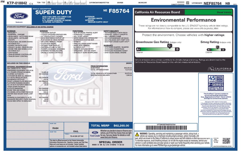 Oxford White 2022 Ford F-350SD XLT 4WD 10-Speed Automatic Power Stroke 6.7L V8 DI 32V OHV Turbodiesel 4WD, 110V/400W Outlet, 5th Wheel/Gooseneck Hitch Prep Package, Exterior Parking Camera Rear, Gooseneck Hitch Kit (Pre-Installed), Order Code 613A, Platform Running Boards, Remote keyless entry, SYNC 3 Communications & Entertainment System, Wheels: 18" Sparkle Silver Painted Cast Aluminum.Odometer is 2256 miles below market average!