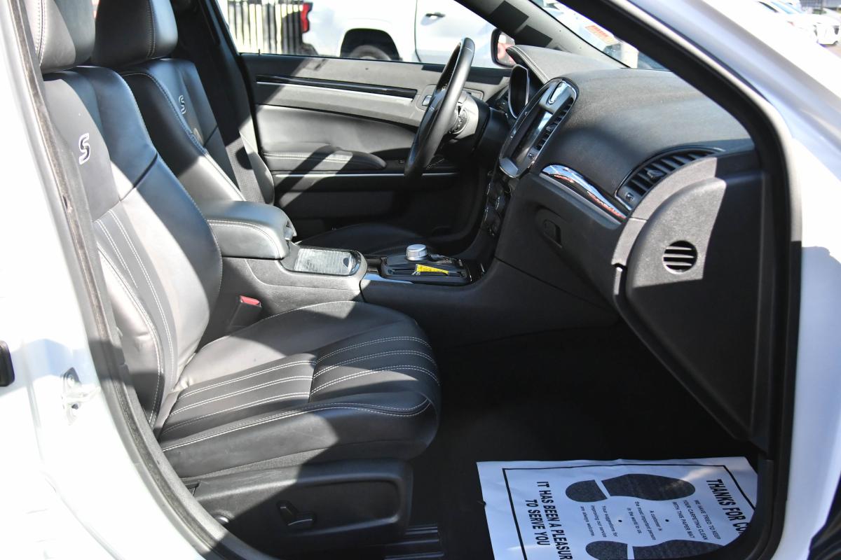 Only 34,474 Miles! Delivers 25 Highway MPG and 16 City MPG! This Chrysler 300 delivers a Regular Unleaded V-8 5.7 L/345 engine powering this Automatic transmission. TRANSMISSION: 8-SPEED AUTOMATIC 8HP70, QUICK ORDER PACKAGE 26J -inc: Engine: 5.7L V8 HEMI MDS VVT, Transmission: 8-Speed Automatic 8HP70, Gloss Black Fascia Applique, S Model Appearance Package, Surround Sound, FRONT LICENSE PLATE BRACKET.*This Chrysler 300 Comes Equipped with These Options *BRIGHT WHITE CLEARCOAT, BLACK, LEATHER TRIMMED SPORT SEATS, Window Grid Antenna, Wheels: 20 x 8.0 Black Noise Aluminum, Vinyl Door Trim Insert, Variable Intermittent Wipers, Valet Function, Trunk Rear Cargo Access, Trip Computer, Transmission: 8-Speed Automatic 8HP50.