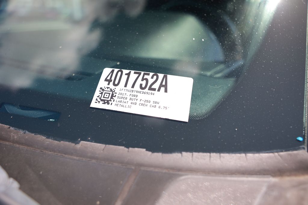 Magnetic 2017 Ford F-250SD Lariat 4WD TorqShift 6-Speed Automatic Power Stroke 6.7L V8 DI 32V OHV Turbodiesel 4WD, Exterior Parking Camera Rear, GVWR: 10,000 lb Payload Package, Order Code 608A, Rear Parking Sensors, Remote keyless entry, Wheels: 18" Bright Machined Cast Aluminum.Awards: * 2017 KBB.com Brand Image Awards * 2017 KBB.com 10 Most Awarded BrandsReviews: * Power Stroke turbodiesel V8 generates immense power and torque; stronger frame and suspension enable increased payload and tow ratings; aluminum body reduces overall weight and improves efficiency; spacious new cabs offer many convenience and technology options. Source: Edmunds