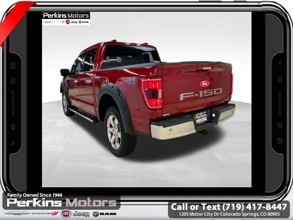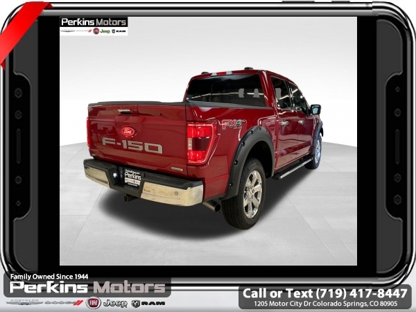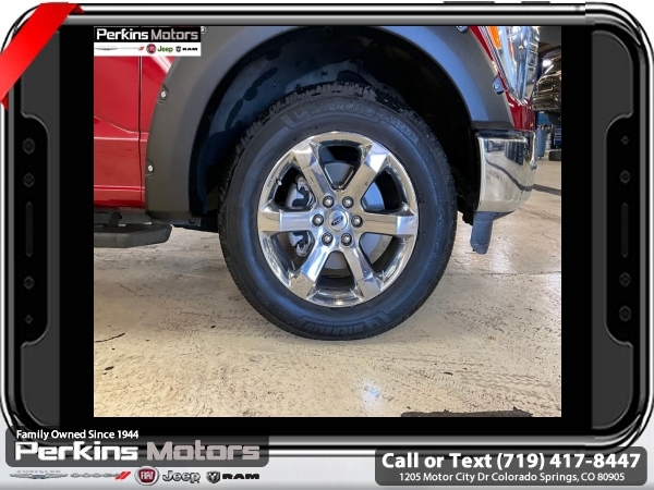 Red 4WD 3.5L V6 EcoBoost 10-Speed Automatic<br><br>4WD, 10-Way Power Driver & Passenger Seats, 2-Bar Style Grille w/Chrome 2 Minor Bars, 4x4 FX4 Off-Road Bodyside Decal, 8 Productivity Screen in Instrument Cluster, Auto-Dimming Rear-View Mirror, Chrome Door & Tailgate Handles w/Body-Color Bezel, Chrome Single-Tip Exhaust, Chrome Step Bars, Class IV Trailer Hitch Receiver, Dual Zone Automatic Temperature Control, Electronic Locking w/3.55 Axle Ratio, Equipment Group 302A High, FX4 Off-Road Package, GVWR: 7,050 lbs Payload Package, Heated Front Seats, Hill Descent Control, Integrated Trailer Brake Controller, Intelligent Access w/Push Button Start, Leather-Wrapped Steering Wheel, LED Box Lighting w/Zone Lighting, LED Reflector Headlamps, LED Sideview Mirror Spotlights, Monotube Rear Shocks, Off-Road Tuned Front Shock Absorbers, Onboard 400W Outlet, Power Glass Heated Sideview Mirrors, Pro Trailer Backup Assist, Radio: AM/FM SiriusXM w/360L, Radio: B&O Sound System by Bang & Olufsen, Rear Under-Seat Storage, Remote Start System w/Remote Tailgate Release, Rock Crawl Mode, SecuriCode Drivers Side Keyless-Entry Keypad, SYNC 4 w/Enhanced Voice Recognition, Trailer Tow Package, Tray Style Floor Liner, Wheels: 18 Chrome-Like PVD, XLT Chrome Appearance Package.<br><br><br>Check us out at www.perkinsmotors.com to see our specials! Since opening our doors in 1944, we’ve been proud to serve Colorado Springs, CO, and the surrounding areas of Pueblo, Castle Rock and Denver, CO. Throughout this time of being family owned for 80 years, we’ve maintained a firm commitment to our customers: to offer a wide selection of New Chrysler, Dodge, Fiat, Jeep, and Ram vehicles and quality pre-owned vehicles, and provide a quick, no-hassle car-buying process that ensures everyone drives off the lot satisfied with their purchase.<br><br><br>Awards:<br> * NACTOY 2021 North American Truck of the Year<br><br>Equipment Group 302A High (10-Way Power Driver & Passenger Seats, 8 Productivity Screen in Instrument Cluster, Auto-Dimming Rear-View Mirror, Class IV Trailer Hitch Receiver, Dual Zone Automatic Temperature Control, Heated Front Seats, Intelligent Access w/Push Button Start, Leather-Wrapped Steering Wheel, LED Box Lighting w/Zone Lighting, LED Reflector Headlamps, LED Sideview Mirror Spotlights, Onboard 400W Outlet, Power Glass Heated Sideview Mirrors, Radio: AM/FM SiriusXM w/360L, Rear Under-Seat Storage, Remote Start System w/Remote Tailgate Release, SecuriCode Drivers Side Keyless-Entry Keypad, and SYNC 4 w/Enhanced Voice Recognition), FX4 Off-Road Package (4x4 FX4 Off-Road Bodyside Decal, Hill Descent Control, Monotube Rear Shocks, Off-Road Tuned Front Shock Absorbers, Rock Crawl Mode, and Tray Style Floor Liner), GVWR: 7,050 lbs Payload Package, Trailer Tow Package (Integrated Trailer Brake Controller and Pro Trailer Backup Assist), XLT Chrome Appearance Package (2-Bar Style Grille w/Chrome 2 Minor Bars, Chrome Door & Tailgate Handles w/Body-Color Bezel, Chrome Single-Tip Exhaust, Chrome Step Bars, and Wheels: 18 Chrome-Like PVD), 4WD, Electronic Locking w/3.55 Axle Ratio, Radio: B&O Sound System by Bang & Olufsen, 4-Wheel Disc Brakes, 6 Speakers, ABS brakes, Air Conditioning, Alloy wheels, AM/FM radio, Auto High-beam Headlights, Brake assist, Bumpers: chrome, Cloth 40/20/40 Front Seat, Compass, Connected Built-In Navigation, Cruise Control, Delay-off headlights, Driver door bin, Driver vanity mirror, Dual front impact airbags, Dual front side impact airbags, Electronic Stability Control, Emergency communication system: SYNC 4 911 Assist, Extended Range 36 Gallon Fuel Tank, Exterior Parking Camera Rear, Front anti-roll bar, Front Center Armrest w/Storage, Front fog lights, Front reading lights, Front wheel independent suspension, Fully automatic headlights, Heated door mirrors, Illuminated entry, Low tire pressure warning, Occupant sensing airbag, Outside temperature display, Overhead airbag, Overhead console, Panic alarm, Passenger door bin,