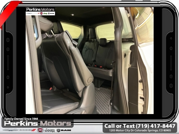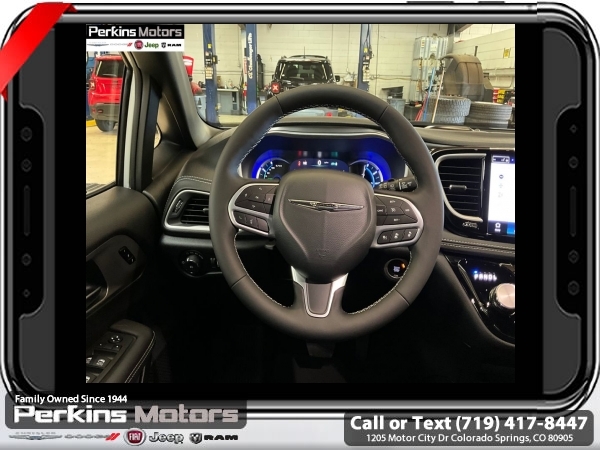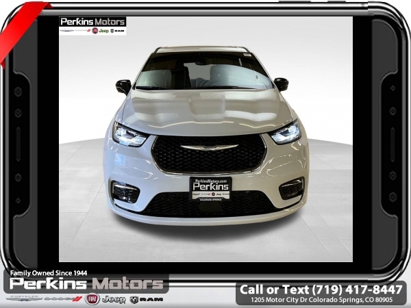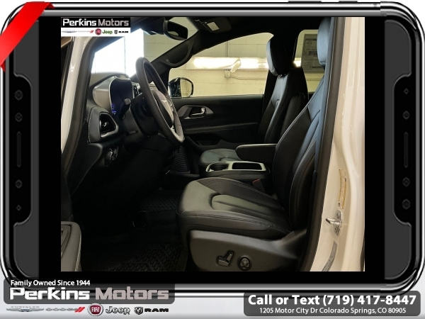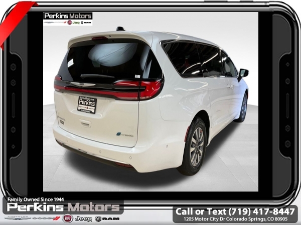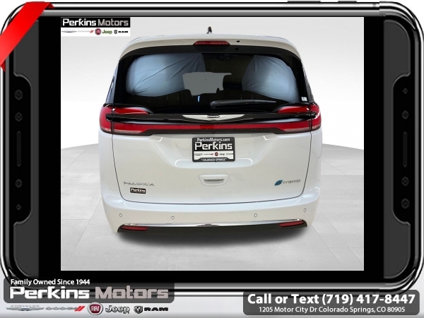 Factory MSRP: $55,140 $2,500 off MSRP! Bright White Clearcoat 2025 Chrysler Pacifica Hybrid Select FWD CVT 3.6L V6<br>3.6L V6.<br>Check us out at www.perkinsmotors.com to see our specials! Since opening our doors in 1944, we’ve been proud to serve Colorado Springs, CO, and the surrounding areas of Pueblo, Castle Rock and Denver, CO. Throughout this time of being family owned for 80 years, we’ve maintained a firm commitment to our customers: to offer a wide selection of New Chrysler, Dodge, Fiat, Jeep, and Ram vehicles and quality pre-owned vehicles, and provide a quick, no-hassle car-buying process that ensures everyone drives off the lot satisfied with their purchase.<br><br>MOPAR Interior Protection Package B (All Weather Cargo Floor Mats, All Weather Floor Mats, Bright Door Sills, Cargo Area Liner, and Rear Cargo Bin Stow 'N Go Storage), Quick Order Package 2EP Select, Safety Sphere (360 Surround View Camera System, Parallel & Perpendicular Park Assist w/Stop, and ParkSense Front/Rear Park Assist w/Stop), 3.6L V6, 10.1 Touchscreen Display, 3.59 Axle Ratio, 3rd row seats: split-bench, 4-Wheel Disc Brakes, 6 Speakers, ABS brakes, Air Conditioning, Alloy wheels, AM/FM radio: SiriusXM 360L, Apple CarPlay, Apple CarPlay/Android Auto, Audio memory, Auto-dimming Rear-View mirror, Automatic temperature control, Black Seats, Brake assist, Bumpers: body-color, Caprice Leatherette Bucket Seats, Compass, Cruise Control, Delay-off headlights, Disassociated Touchscreen Display, Driver door bin, Driver vanity mirror, Driver's Seat Mounted Armrest, Dual front impact airbags, Dual front side impact airbags, Electronic Stability Control, Emergency communication system: Chrysler Connect, Exterior Mirrors w/Heating Element, Exterior Mirrors w/Supplemental Signals, Exterior Parking Camera Rear, Four wheel independent suspension, Front anti-roll bar, Front Bucket Seats, Front dual zone A/C, Front Fascia Air Deflectors, Front fog lights, Front reading lights, Fully automatic headlights, Garage door transmitter, Gloss Black Exterior Mirrors, Google Android Auto, GPS Antenna Input, Heated door mirrors, Heated front seats, Heated steering wheel, Heavy Duty Suspension, Illuminated Cupholders, Illuminated entry, Integrated Active Noise Cancellation, Integrated Center Stack Radio, Knee airbag, Low tire pressure warning, Manufacturer's Statement of Origin, Memory seat, MOPAR Wheel Locks (Dealer Installed), Occupant sensing airbag, Outside temperature display, Overhead airbag, Overhead console, Panic alarm, Passenger door bin, Passenger seat mounted armrest, Passenger vanity mirror, Power door mirrors, Power driver seat, Power Liftgate, Power steering, Power windows, Radio data system, Radio: Uconnect 5 w/10.1 Display, Rain sensing wipers, Rear air conditioning, Rear reading lights, Rear window defroster, Rear window wiper, Reclining 3rd row seat, Remote keyless entry, Security system, SiriusXM Guardian - Included Trial (B), Split folding rear seat, Spoiler, Steering wheel mounted audio controls, Tachometer, Telescoping steering wheel, Tilt steering wheel, Traction control, Trip computer, Turn signal indicator mirrors, USB Host Flip, Variably intermittent wipers, Voltmeter, and Wheels: 17 x 7.0 Diamond Cut w/Painted Pockets. Sale price includes all manufacture's incentives and dealer discounts. Sale price not available on lease or compatible with special APR. $2500 - 2025 National Retail Consumer Cash. Exp. 06/30/2025