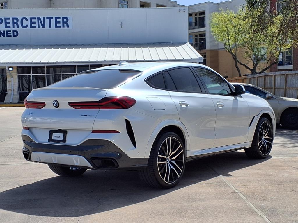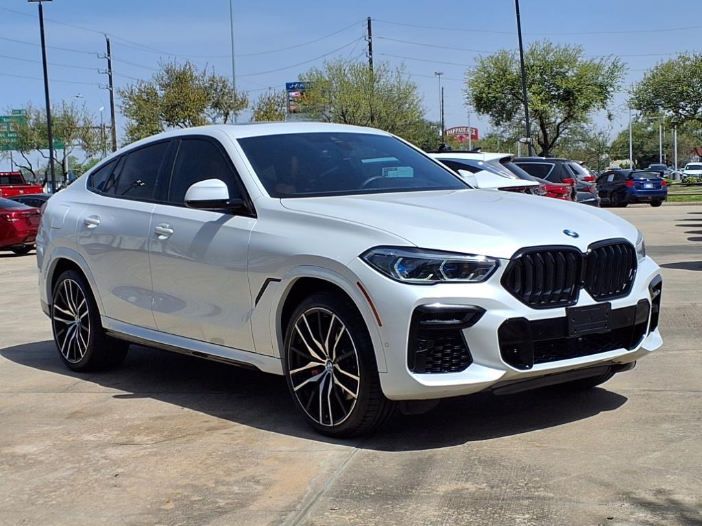This Mineral White Metallic 2022 BMW X6 xDrive40i would be a welcomed addition to your family or business. \n\n \n\nThis X6 has the following features:\n\n\n\n<h4 class=vc_build_package_name>Executive Package ($3,550 value)</h4><ul class=vc_build_package_item_list><li>Remote Engine Start</li><li>Panoramic Sky Lounge LED Roof</li><li>Rear Manual Side Window Shades</li><li>Glass Controls</li><li>Icon Adaptive LED Headlights with Laserlight</li><li>Head-Up Display</li><li>Gesture Control</li></ul><h4 class=vc_build_package_name>M Sport Package ($3,450 value)</h4><ul class=vc_build_package_item_list><li>M Sport Exhaust System</li><li>Adaptive M Suspension</li><li>M Sport Package</li><li>Without Lines Designation Outside</li><li>Aluminum Tetragon Trim</li><li>M Steering Wheel</li><li>Aerodynamic Kit</li><li>Shadowline Exterior Trim</li></ul><h4 class=vc_build_package_name>Shadowline Package ($600 value)</h4><ul class=vc_build_package_item_list><li>Illuminated Kidney Grille</li><li>Extended Shadowline Trim</li></ul><h4 class=vc_build_package_name>Luxury Seating Package ($1,600 value)</h4><ul class=vc_build_package_item_list><li>Front Ventilated Seats</li><li>Multi-Contour Seats</li><li>Front Massaging Seats</li></ul>\n\n\n<h4 class=vc_build_feature_name>Safety and Security</h4><ul class=vc_build_feature_item_list><li> Forward collision mitigation - Forward thinking. You look away for just a second and suddenly the vehicle in front of you has stopped. That's when the forward collision mitigation system comes to life. When it senses an impending impact, it will activate a combination of features to help prevent or reduce the severity of an accident. Forward collision mitigation is always looking ahead.</li><li> Pedestrian impact prevention - An extra step toward safety. Pedestrians don't always stop, look, and listen, but with Pedestrian Impact Prevention, your vehicle is equipped to better see them and avoid them. This system constantly monitors the road ahead to identify and track pedestrians. It projects that image to an interior display screen, AND should an impact become likely, Pedestrian impact prevention takes steps to avoid a collision.</li></ul><h4 class=vc_build_feature_name>Technology and Telematics</h4><ul class=vc_build_feature_item_list><li> Smart device mirroring - Smartphone, meet smart car. You can control your device through your vehicle's infotainment system. Smart device mirroring brings together safety and convenience by making it easier to find what you're looking for while keeping your eyes on the road.</li><li> Apple CarPlay smart device wireless mirroring</li><li> Apple CarPlay and Android Auto Compatibility smart device wireless mirroring</li></ul>\n\n\n\n\n \n\nTo be sure you don't miss out, give us a call at and schedule a test drive. We are located at 8811 Lakes At 610 Dr Houston TX 77054. We look forward to seeing you soon.