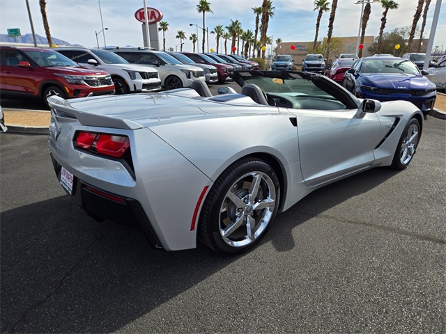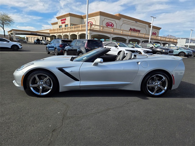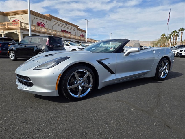 Priced below KBB Fair Purchase Price!16/28 City/Highway MPGBlade Silver Metallic 2014 Chevrolet Corvette Stingray 3LT RWD 6-Speed Automatic Paddle Shift 6.2L V8If you don't drive here, you can't save here!Awards: * Car and Driver 10 Best Cars * Ward's 10 Best Engines * NACTOY 2014 North American Car of the Year * 2014 KBB.com Brand Image AwardsCar and Driver, January 2017.Price may not include recon fee. Preferred Equipment Group 3LT (Body-Color Outside Heated Power-Adjustable Mirrors, Cargo Net, Heated & Vented Driver & Passenger Seats, Power Lumbar/Bolster Seat Adjusters, Radio: Chevrolet MyLink AM/FM Stereo, and Theft Deterrent System), 18" x 8.5" Fr & 19" x 10" Rr 5-Spoke Wheels, 18" x 8.5" Fr & 19" x 10" Rr Chrome Alum. Wheels, 2.56 Limited Slip Rear Axle Ratio, 4-Wheel Disc Brakes, 8-Way Driver & Passenger Seat Adjusters, 9 Speakers, ABS brakes, Air Conditioning, Alloy wheels, AM/FM radio: SiriusXM, Automatic temperature control, Bose Premium 9-Speaker Audio System Feature, Bumpers: body-color, Compass, Convertible roof lining, Delay-off headlights, Driver door bin, Driver vanity mirror, Dual front impact airbags, Dual front side impact airbags, Electronic Stability Control, Emergency communication system: OnStar Directions & Connections, Exterior Parking Camera Rear, Four wheel independent suspension, Front anti-roll bar, Front Bucket Seats, Front Center Armrest, Front dual zone A/C, Front License Plate Bracket, Front reading lights, Fully automatic headlights, Glass rear window, GT Bucket Seats, Heated door mirrors, High-Intensity Discharge Headlights, Illuminated entry, Leather Shift Knob, Leather steering wheel, Low tire pressure warning, Mulan Perforated Leather Seating Surfaces, Occupant sensing airbag, Outside temperature display, Panic alarm, Passenger door bin, Passenger vanity mirror, Performance Exhaust, Power convertible roof, Power door mirrors, Power driver seat, Power passenger seat, Power steering, Power windows, Premium audio system: Chevrolet MyLink, Radio data system, Rear anti-roll bar, Rear window defroster, Remote keyless entry, Remote Vehicle Starter System, SiriusXM Satellite Radio, Speed control, Speed-sensing steering, Spoiler, Sport steering wheel, Steering wheel mounted audio controls, Tachometer, Telescoping steering wheel, Tilt steering wheel, Traction control, Trip computer, Variably intermittent wipers, Voltmeter, and Z51-Style Spoiler (LPO)