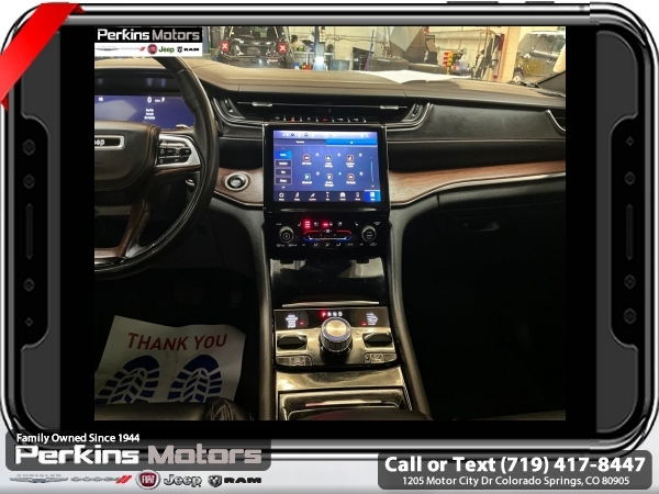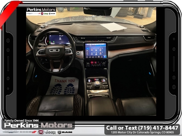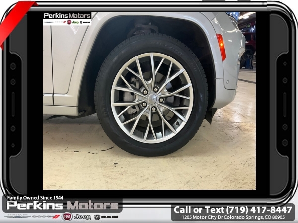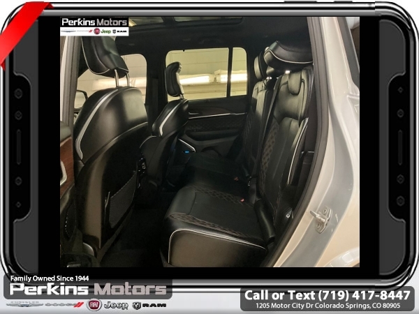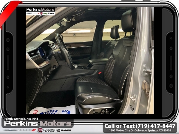 Silver Zynith 4WD 3.6L V6 24V VVT 8-Speed Automatic<br><br>4WD, 2nd-Row Manual Window Shades, ADV Protech Group IV, Heads-Up Display, Luxury Tech Group V, Navigation System, Night Vision w/Pedestrian-Animal Detection, Rearview Autodim Digital Display Mirror, Wireless Charging Pad.<br><br>Certified. FCA US LLC Certified Pre-Owned Details:<br><br> * 125 Point Inspection<br> * Roadside Assistance<br> * Transferable Warranty<br> * Vehicle History<br> * Includes First Day Rental, Car Rental Allowance, and Trip Interruption Benefits. SiriusXM 3 month trial subscription<br> * Warranty Deductible: $100<br> * Powertrain Limited Warranty: 84 Month/100,000 Mile (whichever comes first) from original in-service date<br> * Limited Warranty: 3 Month/3,000 Mile (whichever comes first) after new car warranty expires or from certified purchase date<br><br><br>CARFAX One-Owner.<br><br>Check us out at www.perkinsmotors.com to see our specials! Since opening our doors in 1944, we’ve been proud to serve Colorado Springs, CO, and the surrounding areas of Pueblo, Castle Rock and Denver, CO. Throughout this time of being family owned for 80 years, we’ve maintained a firm commitment to our customers: to offer a wide selection of New Chrysler, Dodge, Fiat, Jeep, and Ram vehicles and quality pre-owned vehicles, and provide a quick, no-hassle car-buying process that ensures everyone drives off the lot satisfied with their purchase.<br><br><br>ADV Protech Group IV (Heads-Up Display, Night Vision w/Pedestrian-Animal Detection, and Rearview Autodim Digital Display Mirror), Luxury Tech Group V (2nd-Row Manual Window Shades and Wireless Charging Pad), Quick Order Package 22S, FCA US LLC Certified Pre-Owned Certified, 4WD, Navigation System, 10 Speakers, 19 Speakers High Performance Audio, 3.45 Rear Axle Ratio, 4-Wheel Disc Brakes, 950 Watt Amplifier, ABS brakes, Active Noise Control System, Adaptive suspension, Air Conditioning, Alloy wheels, AM/FM radio: SiriusXM with 360L, Anti-whiplash front head restraints, Audio memory, Auto High-beam Headlights, Auto-dimming door mirrors, Auto-dimming Rear-View mirror, Auto-leveling suspension, Automatic temperature control, Brake assist, Bumpers: body-color, Compass, Conventional Differential Rear Axle, Cruise Control, Delay-off headlights, Driver door bin, Driver vanity mirror, Dual front impact airbags, Dual front side impact airbags, Electronic Limited Slip Differential Delete, Electronic Stability Control, Emergency communication system, Four wheel independent suspension, Front anti-roll bar, Front Bucket Seats, Front Center Armrest w/Storage, Front dual zone A/C, Front fog lights, Front reading lights, Fully automatic headlights, Garage door transmitter, Genuine wood dashboard insert, Genuine wood door panel insert, Heated door mirrors, Heated front seats, Heated rear seats, Heated steering wheel, Illuminated entry, Knee airbag, Leather steering wheel, Low tire pressure warning, Memory seat, Nappa Leather Seats, Normal Duty Suspension, Occupant sensing airbag, Outside temperature display, Overhead airbag, Overhead console, Panic alarm, Passenger door bin, Passenger vanity mirror, Power door mirrors, Power driver seat, Power Liftgate, Power moonroof, Power passenger seat, Power steering, Power windows, Radio data system, Radio: Uconnect 5 Nav w/10.1 Display, Rain sensing wipers, Rear air conditioning, Rear anti-roll bar, Rear dual zone A/C, Rear reading lights, Rear seat center armrest, Rear window defroster, Rear window wiper, Remote keyless entry, Roof rack: rails only, Security system, Speed-Sensitive Wipers, Split folding rear seat, Spoiler, Steering wheel memory, Steering wheel mounted audio controls, Tachometer, Telescoping steering wheel, Tilt steering wheel, Traction control, Trip computer, Turn signal indicator mirrors, Variably intermittent wipers, Ventilated front seats, Voltmeter, and Wheels: 20 x 8.5 Fully Painted Aluminum Silver.