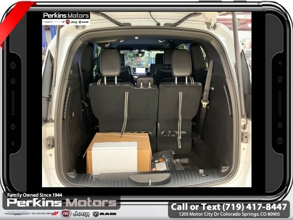 Bright White Clearcoat FWD 3.6L V6 24V VVT 9-Speed 948TE Automatic<br><br><br>Clean CARFAX.<br><br>Check us out at www.perkinsmotors.com to see our specials! Since opening our doors in 1944, we’ve been proud to serve Colorado Springs, CO, and the surrounding areas of Pueblo, Castle Rock and Denver, CO. Throughout this time of being family owned for 80 years, we’ve maintained a firm commitment to our customers: to offer a wide selection of New Chrysler, Dodge, Fiat, Jeep, and Ram vehicles and quality pre-owned vehicles, and provide a quick, no-hassle car-buying process that ensures everyone drives off the lot satisfied with their purchase.<br><br><br>Quick Order Package 27E, 17 x 7 Aluminum Wheels, 3.25 Axle Ratio, 3rd row seats: split-bench, 4-Wheel Disc Brakes, 6 Speakers, ABS brakes, Air Conditioning, Alloy wheels, AM/FM radio: SiriusXM, Apple CarPlay, Apple CarPlay/Android Auto, Automatic temperature control, Black Seats, Brake assist, Bumpers: body-color, Cloth Bucket Seats, Compass, Cruise Control, Delay-off headlights, Door auto-latch, Driver door bin, Driver vanity mirror, Driver's Seat Mounted Armrest, Dual front impact airbags, Dual front side impact airbags, Electronic Stability Control, Exterior Mirrors w/Heating Element, Four wheel independent suspension, Front anti-roll bar, Front Bucket Seats, Front dual zone A/C, Front reading lights, Fully automatic headlights, Google Android Auto, GPS Antenna Input, Heated door mirrors, Heated front seats, Heated steering wheel, Illuminated entry, Knee airbag, Low tire pressure warning, Occupant sensing airbag, Outside temperature display, Overhead airbag, Overhead console, Panic alarm, ParkView Rear Back-Up Camera, Passenger door bin, Passenger seat mounted armrest, Passenger vanity mirror, Power door mirrors, Power driver seat, Power Liftgate, Power steering, Power windows, Radio data system, Radio: Uconnect 5 w/7 Display, Rear air conditioning, Rear window defroster, Rear window wiper, Reclining 3rd row seat, Remote keyless entry, Security system, Split folding rear seat, Spoiler, Steering wheel mounted audio controls, Tachometer, Telescoping steering wheel, Tilt steering wheel, Touring Suspension, Traction control, Trip computer, USB Host Flip, Variably intermittent wipers, and Voltmeter.