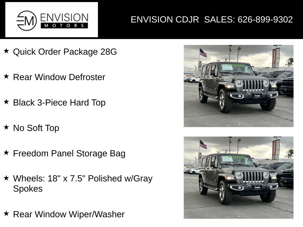 WE SPECIALIZE IN ALL CREDIT PROFILES! See what we can do for you! Call to find out (626) 899-9302.Clean CARFAX.Black 3-Piece Hard Top, Freedom Panel Storage Bag, No Soft Top, Quick Order Package 28G, Rear Window Defroster, Rear Window Wiper/Washer, Wheels: 18" x 7.5" Polished w/Gray Spokes.Sting-Gray Clearcoat2019 Jeep Wrangler Unlimited Sahara 4WD 8-Speed Automatic 2.0L I4 DOHC**********All Pricing and Advertised Prices for any/all vehicles offered for sale does not include dealer installed accessories which can be purchased for an additional cost.********** The Factory Rebates may not be available on this vehicle if you elect to take advantage of a Special Alternative APR or Special Lease program. Some Factory Rebates are California Resident specific and may vary for residents of other states. NO sales to Dealers, Brokers or Exporters. For out of state purchase, customers must be present to purchase. If shipping is required, dealership must facilitate; no exceptions. Please contact us for special Multi-Vehicle or Fleet pricing. Prices are plus government fees and taxes, any finance charges, $85 documentary fee, $29 electronic registration fee, any emission testing charge and $1.75 per new tire state tire fee. *** We make every effort to provide accurate information, but please verify before purchasing. Leasing & financing available on approved credit. Trade-ins accepted. Subject to prior sale.