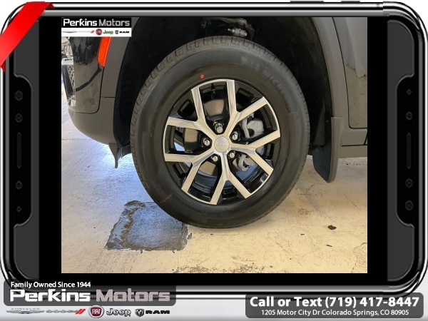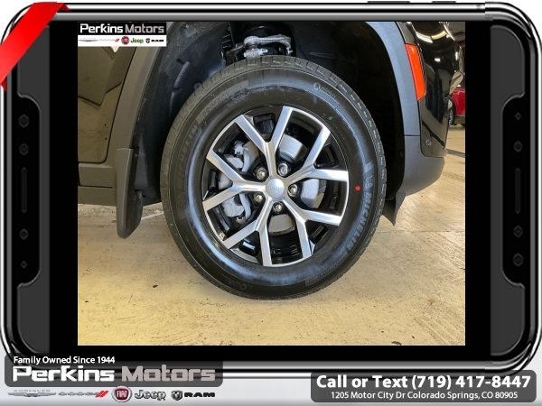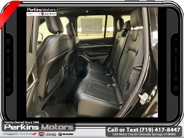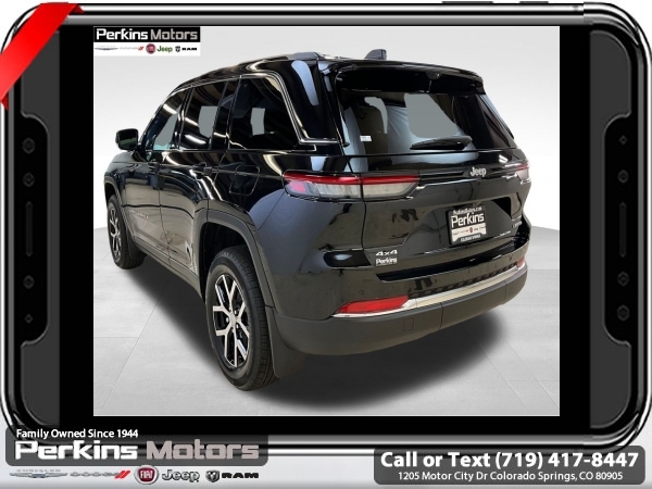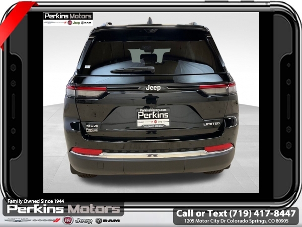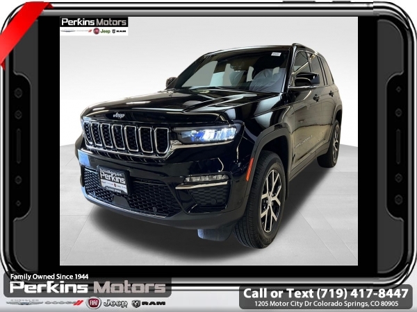 Factory MSRP: $54,935 $7,988 off MSRP! Diamond Black Crystal Pearlcoat 2025 Jeep Grand Cherokee Limited 4WD 8-Speed Automatic 3.6L V6 24V VVT<br>4WD.<br>Check us out at www.perkinsmotors.com to see our specials! Since opening our doors in 1944, we’ve been proud to serve Colorado Springs, CO, and the surrounding areas of Pueblo, Castle Rock and Denver, CO. Throughout this time of being family owned for 80 years, we’ve maintained a firm commitment to our customers: to offer a wide selection of New Chrysler, Dodge, Fiat, Jeep, and Ram vehicles and quality pre-owned vehicles, and provide a quick, no-hassle car-buying process that ensures everyone drives off the lot satisfied with their purchase.<br><br>Luxury Tech Group II (2nd-Row Manual Window Shades, Auto-Dimming Exterior Driver Mirror, Capri Leatherette w/Axis II Seats, Front/Rear Doors & Liftgate w/Passive Entry, Integrated Off-Road Camera, Intersection Collision Assist System, Memory Steering Column, ParkSense Front/Rear Park Assist w/Stop, Power Tilt/Telescope Steering Column, Rain Sensitive Windshield Wipers, Rear Back-Up Camera Washer, Rearview Autodim Digital Display Mirror, Surround View Camera System, Ventilated Front Seats, and Wireless Charging Pad), MOPAR Finishing Package (MOPAR Front Splash Guards, MOPAR Paint Protection Film, and MOPAR Rear Splash Guards w/Jeep Logo), Quick Order Package 22E, 4WD, 4-Wheel Disc Brakes, 506 Watt Amplifier, 6 Speakers, 9 Amplified Speakers w/Subwoofer, ABS brakes, Active Noise Control System, Air Conditioning, Alloy wheels, AM/FM radio: SiriusXM with 360L, Anti-whiplash front head restraints, Audio memory, Auto High-beam Headlights, Automatic temperature control, Brake assist, Bumpers: body-color, Capri Leatherette Seats, Compass, Cruise Control, Delay-off headlights, Driver door bin, Driver vanity mirror, Dual front impact airbags, Dual front side impact airbags, Dual-Pane Panoramic Sunroof, Electronic Stability Control, Emergency communication system, Four wheel independent suspension, Front anti-roll bar, Front Bucket Seats, Front Center Armrest w/Storage, Front dual zone A/C, Front fog lights, Front License Plate Bracket, Front reading lights, Fully automatic headlights, Garage door transmitter, Heated door mirrors, Heated front seats, Heated rear seats, Heated steering wheel, Illuminated entry, Knee airbag, Low tire pressure warning, Memory seat, Model Year Tracking, Navigation System, Normal Duty Suspension, Occupant sensing airbag, Outside temperature display, Overhead airbag, Overhead console, Panic alarm, ParkView Rear Back-Up Camera, Passenger door bin, Passenger vanity mirror, Power door mirrors, Power driver seat, Power Liftgate, Power passenger seat, Power steering, Power windows, Radio data system, Radio: Uconnect 5 Nav w/10.1 Display, Rear anti-roll bar, Rear reading lights, Rear window defroster, Rear window wiper, Remote keyless entry, Security system, Speed-Sensitive Wipers, Split folding rear seat, Spoiler, Steering wheel mounted audio controls, Tachometer, Telescoping steering wheel, Tilt steering wheel, Traction control, Trip computer, Turn signal indicator mirrors, Variably intermittent wipers, Voltmeter, and Wheels: 18 x 8 Polished/Painted Aluminum.<br><br>19/26 City/Highway MPG Sale price includes all manufacture's incentives and dealer discounts. Sale price not available on lease or compatible with special APR. $1000 - 2025 National Bonus Cash . Exp. 06/30/2025