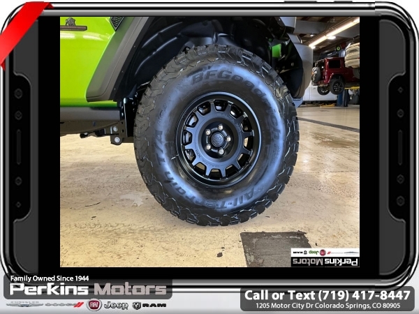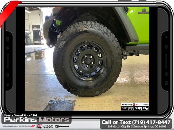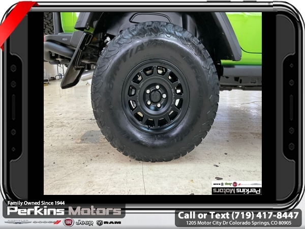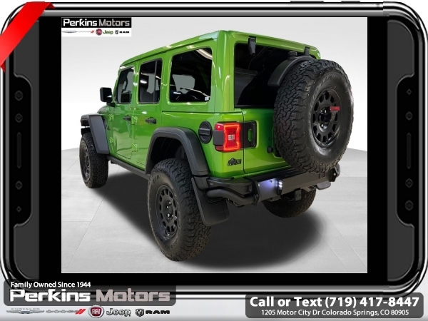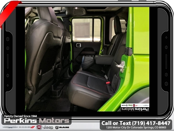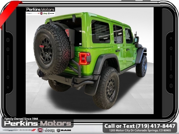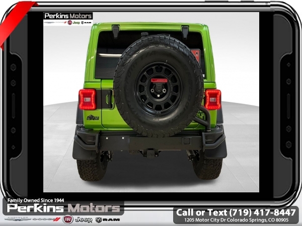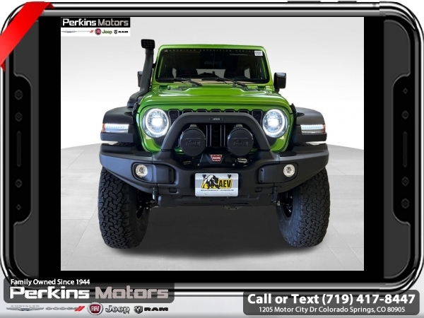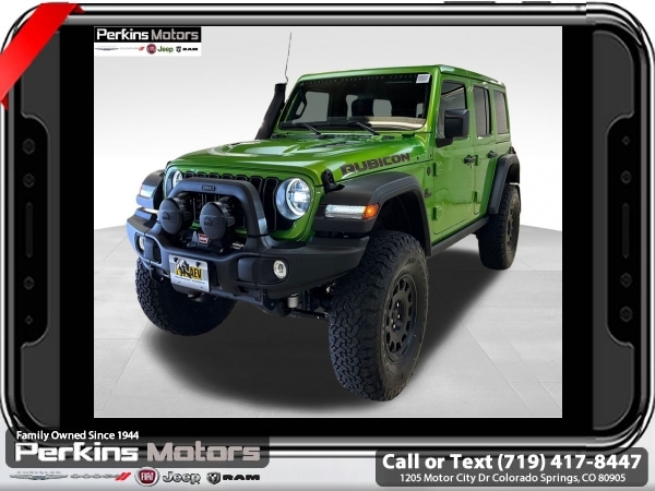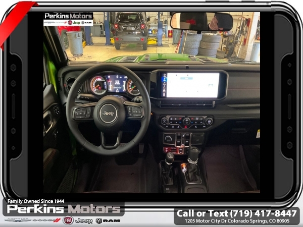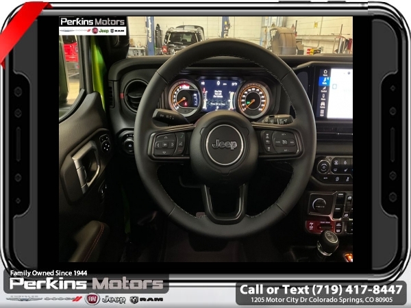 Factory MSRP: $66,965 Mojito Clearcoat 2025 Jeep Wrangler Rubicon 4WD 8-Speed Automatic 3.6L V6 24V VVT<br><br>Check us out at www.perkinsmotors.com to see our specials! Since opening our doors in 1944, we’ve been proud to serve Colorado Springs, CO, and the surrounding areas of Pueblo, Castle Rock and Denver, CO. Throughout this time of being family owned for 80 years, we’ve maintained a firm commitment to our customers: to offer a wide selection of New Chrysler, Dodge, Fiat, Jeep, and Ram vehicles and quality pre-owned vehicles, and provide a quick, no-hassle car-buying process that ensures everyone drives off the lot satisfied with their purchase.<br><br>Convenience Group (Heated Front Seats, Heated Steering Wheel, and Universal Garage Door Opener), Quick Order Package 24R Rubicon, Safety Group (Auto High Beam Headlamp Control, Blind Spot & Cross Path Detection, and ParkSense Rear Park Assist System), 4-Wheel Disc Brakes, 4.10 Rear Axle Ratio, 4.88 Rear Axle Ratio, 4G LTE Wi-Fi Hot Spot, 8 Speakers, 97 MPH Vehicle Max Speed Calibration, ABS brakes, Air Conditioning, Alloy wheels, AM/FM radio: SiriusXM, Apple CarPlay, Apple CarPlay/Android Auto, Automatic temperature control, Aux Battery, Auxiliary Switches, Body Color 3-Piece Hard Top, Brake assist, Class II Receiver Hitch, Cloth Low-Back Bucket Seats, Compass, Connectivity - US/Canada, Cruise Control, Delay-off headlights, Driver door bin, Driver vanity mirror, Dual front impact airbags, Dual front side impact airbags, Electronic Stability Control, Emergency communication system: Jeep Connect, Freedom Panel Storage Bag, Front anti-roll bar, Front Bucket Seats, Front Center Armrest w/Storage, Front dual zone A/C, Front fog lights, Front reading lights, Fully automatic headlights, Google Android Auto, Heated door mirrors, Illuminated entry, Integrated roll-over protection, Jeep Trail Rated Kit, Low tire pressure warning, MOPAR All-Weather Floor Mats, MOPAR Hardtop Headliner, MOPAR Plastic Door Sill Guards, Non-Lock Fuel Cap w/o Discriminator, Occupant sensing airbag, Outside temperature display, Overhead airbag, Panic alarm, ParkView Rear Back-Up Camera, Passenger door bin, Passenger vanity mirror, Performance Suspension, Power door mirrors, Power steering, Power windows, Radio data system, Radio: Uconnect 5 w/12.3 Display, Rear anti-roll bar, Rear reading lights, Rear Window Defroster, Rear Window Wiper/Washer, Remote keyless entry, Security system, Split folding rear seat, Steering wheel mounted audio controls, Stop-Start Dual Battery System, Tachometer, Telescoping steering wheel, Tilt steering wheel, Traction control, Trip computer, Variably intermittent wipers, Voltmeter, and Wheels: 17 x 7.5 Machined/Painted Black. Price includes $26,696 in dealer added accessories.