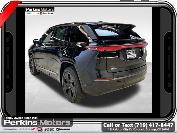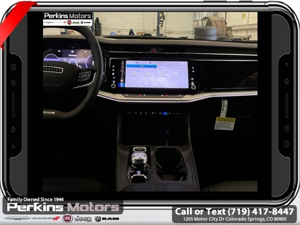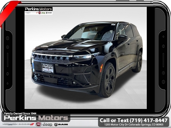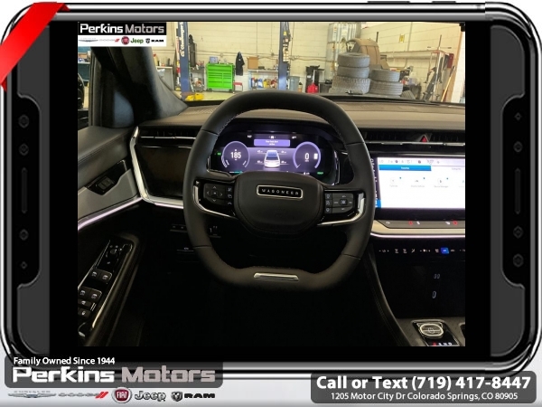 Factory MSRP: $72,590 $15,500 off MSRP! Priced below KBB Fair Purchase Price! Diamond Black Crystal Pearlcoat 2025 Jeep Wagoneer S Launch Edition 4WD 1-Speed Automatic Electric Motor<br><br>Check us out at www.perkinsmotors.com to see our specials! Since opening our doors in 1944, we’ve been proud to serve Colorado Springs, CO, and the surrounding areas of Pueblo, Castle Rock and Denver, CO. Throughout this time of being family owned for 80 years, we’ve maintained a firm commitment to our customers: to offer a wide selection of New Chrysler, Dodge, Fiat, Jeep, and Ram vehicles and quality pre-owned vehicles, and provide a quick, no-hassle car-buying process that ensures everyone drives off the lot satisfied with their purchase.<br><br>Luxury Group (115V Auxiliary Power Outlet, Digital Rearview Mirror, Front Passenger Interactive Display, Hands Free Power Liftgate, Heads-Up Display, and Roll-Up Tonneau Cover), Quick Order Package 25E, Two Tone Paint Group, 19 Speakers, 4-Wheel Disc Brakes, ABS brakes, Air Conditioning, Alloy wheels, AM/FM radio: SiriusXM with 360L, Apple CarPlay/Android Auto, Audio memory, Auto High-beam Headlights, Auto-dimming door mirrors, Auto-dimming Rear-View mirror, Automatic temperature control, Brake assist, Bumpers: body-color, Compass, Cruise Control, Delay-off headlights, Driver door bin, Driver vanity mirror, Dual front impact airbags, Dual front side impact airbags, Electronic Stability Control, Emergency communication system: Jeep Connect, Four wheel independent suspension, Front anti-roll bar, Front Bucket Seats, Front Center Armrest w/Storage, Front dual zone A/C, Front fog lights, Front reading lights, Fully automatic headlights, Garage door transmitter, Heated door mirrors, Heated front seats, Heated rear seats, Heated steering wheel, Heavy Duty Suspension, Illuminated entry, Knee airbag, Low tire pressure warning, Memory seat, Navigation System, Neo Ultra Lux III Seats, Occupant sensing airbag, Outside temperature display, Overhead airbag, Panic alarm, ParkView Rear Back-Up Camera, Passenger door bin, Passenger vanity mirror, Power door mirrors, Power driver seat, Power Liftgate, Power moonroof, Power passenger seat, Power steering, Power windows, Premium audio system: UConnect 5, Radio data system, Radio: Uconnect 5 Nav w/12.3 Display, Rain sensing wipers, Rear air conditioning, Rear anti-roll bar, Rear dual zone A/C, Rear reading lights, Rear seat center armrest, Rear side impact airbag, Rear window defroster, Rear window wiper, Remote keyless entry, Security system, Speed-sensing steering, Speed-Sensitive Wipers, Split folding rear seat, Spoiler, Steering wheel memory, Steering wheel mounted audio controls, Telescoping steering wheel, Tilt steering wheel, Traction control, Trip computer, Turn signal indicator mirrors, Variably intermittent wipers, Ventilated front seats, Ventilated rear seats, and Wheels: 20 x 8.5 Painted Aluminum Design 1.<br><br>104/90 City/Highway MPG Sale price includes all manufacture's incentives and dealer discounts. Sale price not available on lease or compatible with special APR. $1000 - 2025 West BC Auto Show Bonus Cash . Exp. 04/30/2025 $6500 - 2025 National Retail Consumer Cash. Exp. 04/30/2025