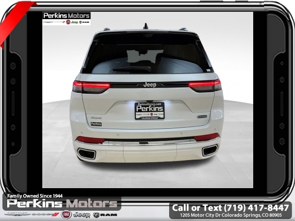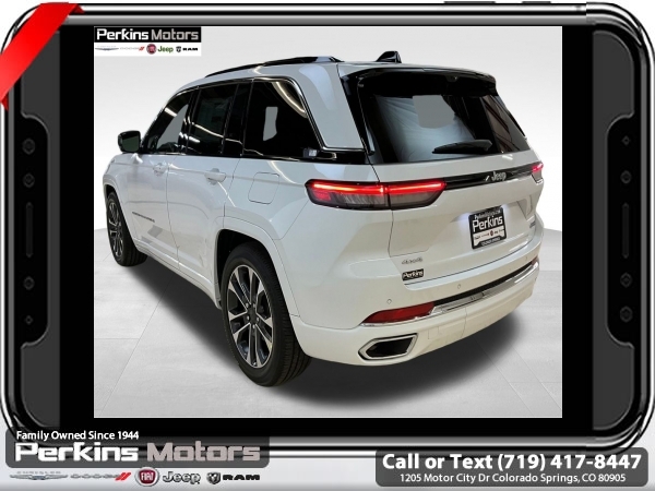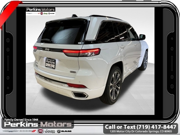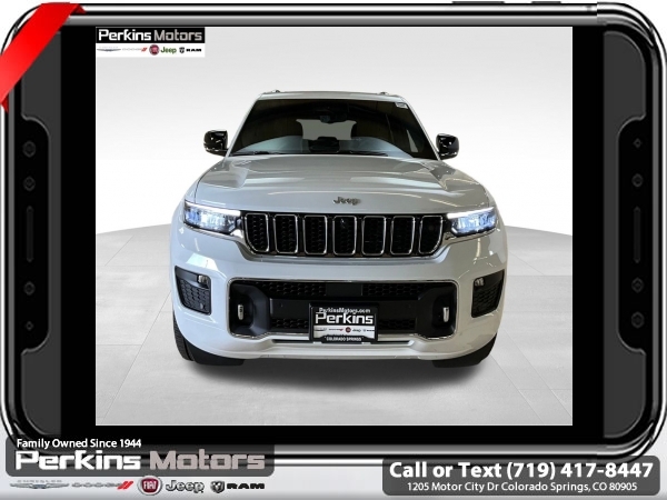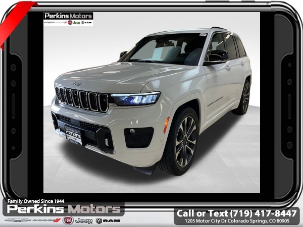Factory MSRP: $65,435 $7,592 off MSRP! Bright White Clearcoat 2025 Jeep Grand Cherokee Overland 4WD 8-Speed Automatic 3.6L V6 24V VVT<br>4WD.<br>Check us out at www.perkinsmotors.com to see our specials! Since opening our doors in 1944, we’ve been proud to serve Colorado Springs, CO, and the surrounding areas of Pueblo, Castle Rock and Denver, CO. Throughout this time of being family owned for 80 years, we’ve maintained a firm commitment to our customers: to offer a wide selection of New Chrysler, Dodge, Fiat, Jeep, and Ram vehicles and quality pre-owned vehicles, and provide a quick, no-hassle car-buying process that ensures everyone drives off the lot satisfied with their purchase.<br><br>ADV Protech Group III (Active Driving Assist System, Heads-Up Display, Integrated Off-Road Camera, Intersection Collision Assist System, Leather Wrapped Steering Wheel, Map-In-Cluster Display, Night Vision w/Pedestrian-Animal Detection, Rear Back-Up Camera Washer, Surround View Camera System, and Windshield Wiper De-Icer), Luxury Tech Group IV (12-Way Power Adjust Driver Seat, 12-Way Power Adjust Front Passenger Seat, 2nd-Row Manual Window Shades, Nappa Leather Seats w/AAM, Passenger Seat Memory, Power Driver Seatback Massage, Power Front Passenger Seatback Massage, Rearview Autodim Digital Display Mirror, and Wireless Charging Pad), Quick Order Package 23N, Trailer Tow Package (7 & 4-Pin Wiring Harness and Class IV Receiver Hitch), 4WD, 10 Speakers, 4-Wheel Disc Brakes, ABS brakes, Adaptive suspension, Air Conditioning, Alloy wheels, AM/FM radio: SiriusXM with 360L, Anti-whiplash front head restraints, Audio memory, Auto High-beam Headlights, Auto-dimming door mirrors, Auto-dimming Rear-View mirror, Auto-leveling suspension, Automatic temperature control, Auxiliary Battery, Brake assist, Bumpers: body-color, Compass, Cruise Control, Delay-off headlights, Driver door bin, Driver vanity mirror, Dual front impact airbags, Dual front side impact airbags, Electronic Stability Control, Emergency communication system, Four wheel independent suspension, Front anti-roll bar, Front Bucket Seats, Front Center Armrest w/Storage, Front dual zone A/C, Front fog lights, Front License Plate Bracket, Front reading lights, Fully automatic headlights, Garage door transmitter, Heated door mirrors, Heated front seats, Heated rear seats, Heated steering wheel, Illuminated entry, Knee airbag, Low tire pressure warning, Memory seat, Model Year Tracking, Nappa Leather Seats, Navigation System, Normal Duty Suspension, Occupant sensing airbag, Outside temperature display, Overhead airbag, Overhead console, Panic alarm, Passenger door bin, Passenger vanity mirror, Power door mirrors, Power driver seat, Power Liftgate, Power moonroof, Power passenger seat, Power steering, Power windows, Radio data system, Radio: Uconnect 5 Nav w/10.1 Display, Rain sensing wipers, Rear anti-roll bar, Rear reading lights, Rear seat center armrest, Rear window defroster, Rear window wiper, Remote keyless entry, Security system, Speed-Sensitive Wipers, Split folding rear seat, Spoiler, Steering wheel memory, Steering wheel mounted audio controls, Tachometer, Telescoping steering wheel, Tilt steering wheel, Traction control, Trip computer, Turn signal indicator mirrors, Variably intermittent wipers, Ventilated front seats, Voltmeter, and Wheels: 20 x 8.5 Machined Face Aluminum.<br><br>19/26 City/Highway MPG