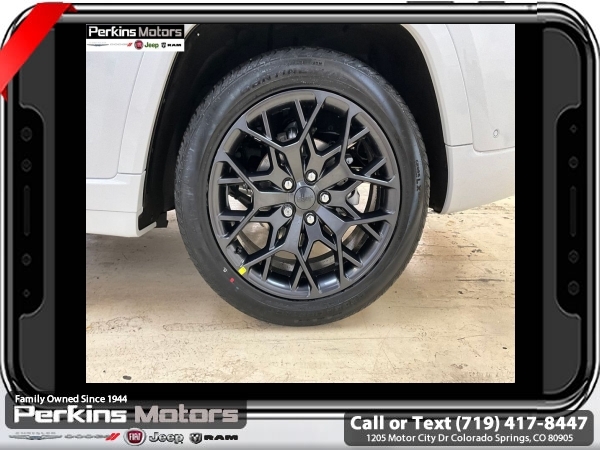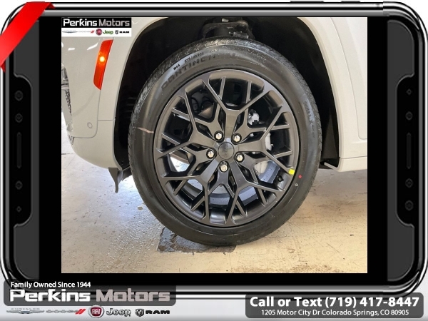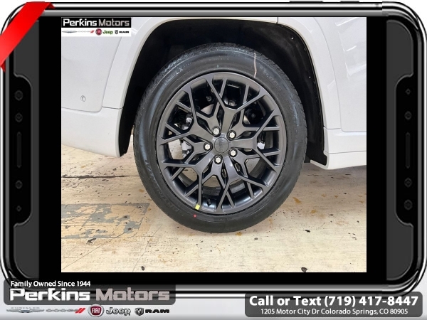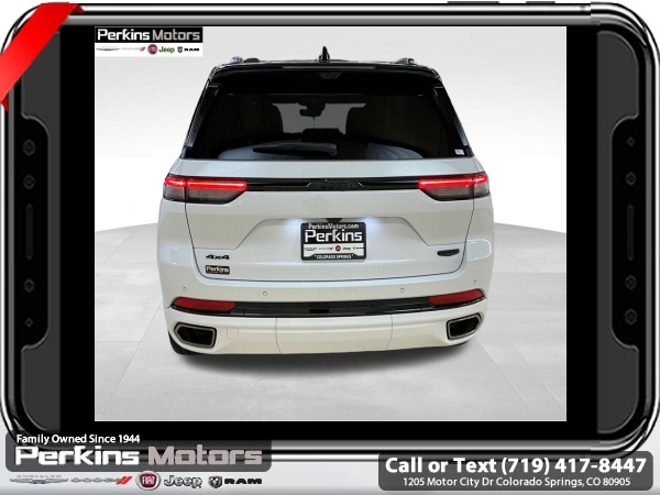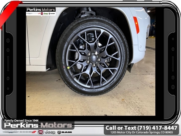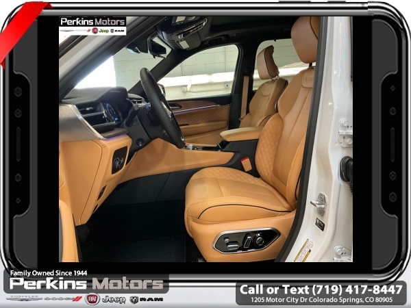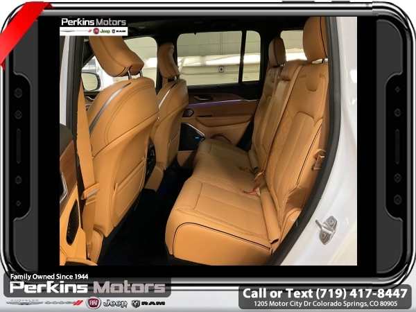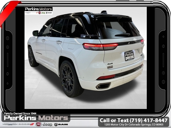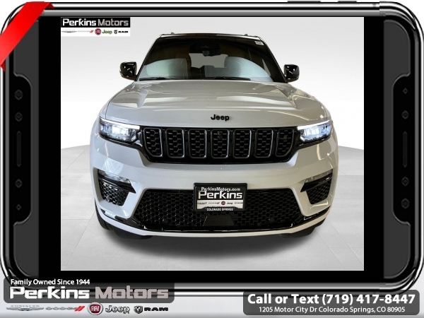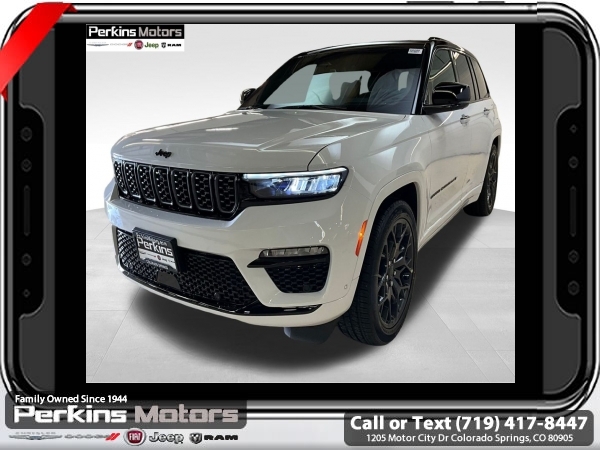 Factory MSRP: $73,625 $7,500 off MSRP! Bright White Clearcoat 2025 Jeep Grand Cherokee Summit 4WD 8-Speed Automatic 3.6L V6 24V VVT<br>4WD.<br>Check us out at www.perkinsmotors.com to see our specials! Since opening our doors in 1944, we’ve been proud to serve Colorado Springs, CO, and the surrounding areas of Pueblo, Castle Rock and Denver, CO. Throughout this time of being family owned for 80 years, we’ve maintained a firm commitment to our customers: to offer a wide selection of New Chrysler, Dodge, Fiat, Jeep, and Ram vehicles and quality pre-owned vehicles, and provide a quick, no-hassle car-buying process that ensures everyone drives off the lot satisfied with their purchase.<br><br>ADV Protech Group IV (Heads-Up Display, Night Vision w/Pedestrian-Animal Detection, Rearview Autodim Digital Display Mirror, and Windshield Wiper De-Icer), Hands-Free Active Driving Assist System (Auxiliary Battery), High Altitude Package (Gloss Black Exterior Accents, Neutral Gray Exterior Accents, Painted Door Cladding, and Wheels: 21 x 9 Black Painted Aluminum), Luxury Tech Group V (2nd-Row Manual Window Shades and Wireless Charging Pad), Quick Order Package 23U Summit Reserve (19 Speakers High Performance Audio, 950 Watt Amplifier, Active Noise Control System, Deluxe Headliner, Front Passenger Interactive Display, Palermo Leather Door Trim, Palermo Leather Seats, Summit Reserve, Summit Reserve Badge, Ventilated Rear Seats, and Wheels: 21 x 9 Machined Face/Painted Aluminum), 4WD, 10 Speakers, 4-Wheel Disc Brakes, ABS brakes, Adaptive suspension, Air Conditioning, Alloy wheels, AM/FM radio: SiriusXM with 360L, Anti-whiplash front head restraints, Audio memory, Auto High-beam Headlights, Auto-dimming door mirrors, Auto-dimming Rear-View mirror, Auto-leveling suspension, Automatic temperature control, Brake assist, Bumpers: body-color, Compass, Cruise Control, Delay-off headlights, Driver door bin, Driver vanity mirror, Dual front impact airbags, Dual front side impact airbags, Electronic Stability Control, Emergency communication system, Four wheel independent suspension, Front anti-roll bar, Front Bucket Seats, Front Center Armrest w/Storage, Front dual zone A/C, Front fog lights, Front License Plate Bracket, Front reading lights, Fully automatic headlights, Garage door transmitter, Genuine wood dashboard insert, Genuine wood door panel insert, Heated door mirrors, Heated front seats, Heated rear seats, Heated steering wheel, Illuminated entry, Knee airbag, Leather steering wheel, Low tire pressure warning, Memory seat, Model Year Tracking, Nappa Leather Seats, Navigation System, Normal Duty Suspension, Occupant sensing airbag, Outside temperature display, Overhead airbag, Overhead console, Panic alarm, Passenger door bin, Passenger vanity mirror, Power door mirrors, Power driver seat, Power Liftgate, Power moonroof, Power passenger seat, Power steering, Power windows, Radio data system, Radio: Uconnect 5 Nav w/10.1 Display, Rain sensing wipers, Rear air conditioning, Rear anti-roll bar, Rear dual zone A/C, Rear reading lights, Rear seat center armrest, Rear window defroster, Rear window wiper, Remote keyless entry, Security system, Speed-Sensitive Wipers, Split folding rear seat, Spoiler, Steering wheel memory, Steering wheel mounted audio controls, Tachometer, Telescoping steering wheel, Tilt steering wheel, Traction control, Trip computer, Turn signal indicator mirrors, Variably intermittent wipers, Ventilated front seats, Voltmeter, and Wheels: 20 x 8.5 Fully Painted Aluminum Silver.<br><br>19/26 City/Highway MPG Sale price includes all manufacture's incentives and dealer discounts. Sale price not available on lease or compatible with special APR. $1000 - 2025 National Retail Consumer Cash. Exp. 04/30/2025 $1500 - 2025 National Jeep Celebration Event Retail Bonus Cash . Exp. 04/30/2025