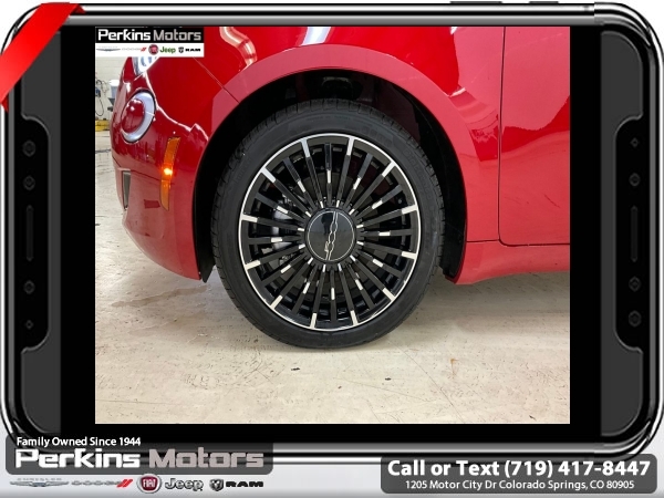 Factory MSRP: $34,095 $2,000 off MSRP! Red by (Red) 2024 Fiat 500e Battery Electric FWD 1-Speed Automatic Electric<br><br>Check us out at www.perkinsmotors.com to see our specials! Since opening our doors in 1944, we’ve been proud to serve Colorado Springs, CO, and the surrounding areas of Pueblo, Castle Rock and Denver, CO. Throughout this time of being family owned for 80 years, we’ve maintained a firm commitment to our customers: to offer a wide selection of New Chrysler, Dodge, Fiat, Jeep, and Ram vehicles and quality pre-owned vehicles, and provide a quick, no-hassle car-buying process that ensures everyone drives off the lot satisfied with their purchase.<br><br>Quick Order Package 21A 500e Inspi(red), 6 Speakers, ABS brakes, Air Conditioning, Alloy wheels, AM/FM radio: SiriusXM, Anti-whiplash front head restraints, Automatic temperature control, Brake assist, Bumpers: body-color, Cloth Bucket Seats w/Red Accents, Compass, Cruise Control, Delay-off headlights, Driver door bin, Dual front impact airbags, Dual front side impact airbags, Electronic Stability Control, Front anti-roll bar, Front Bucket Seats, Front Center Armrest, Front dual zone A/C, Front reading lights, Front wheel independent suspension, Fully automatic headlights, Illuminated entry, Knee airbag, Low tire pressure warning, Manufacturer's Statement of Origin, Navigation System, Occupant sensing airbag, Outside temperature display, Overhead airbag, Overhead console, Panic alarm, ParkView Rear Back-Up Camera, Passenger door bin, Passenger vanity mirror, Power door mirrors, Power steering, Power windows, Premium audio system: Uconnect 5.0, Radio data system, Radio: Uconnect 5 Nav w/10.25 Display, Rain sensing wipers, Rear anti-roll bar, Rear window defroster, Rear window wiper, Remote keyless entry, Security system, Split folding rear seat, Spoiler, Sport steering wheel, Steering wheel mounted audio controls, Telescoping steering wheel, Tilt steering wheel, Traction control, Trip computer, Variably intermittent wipers, and Wheels: 17 x 7.0 Aluminum Multi-Spoke.