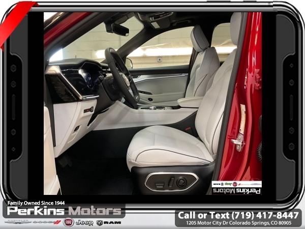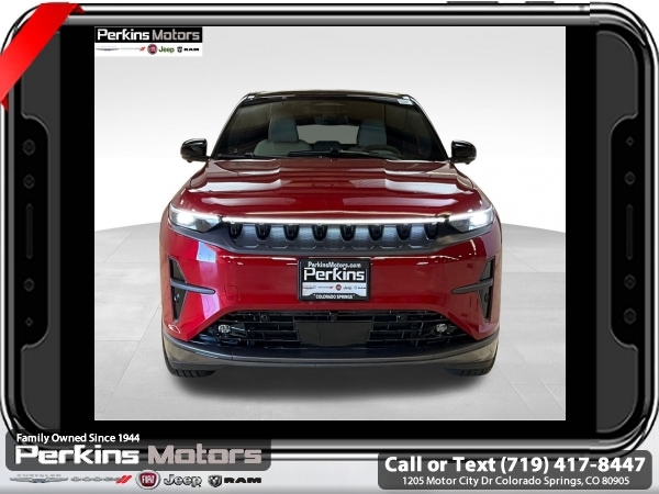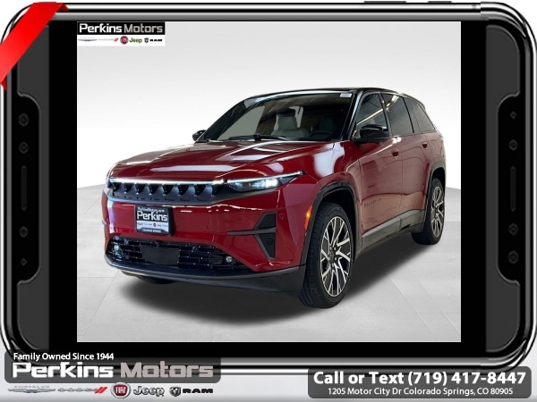 Factory MSRP: $67,590 $21,643 off MSRP! Priced below KBB Fair Purchase Price! Red Hot Pearlcoat 2025 Jeep Wagoneer S Limited 4WD 1-Speed Automatic Electric Motor<br><br>Check us out at www.perkinsmotors.com to see our specials! Since opening our doors in 1944, we’ve been proud to serve Colorado Springs, CO, and the surrounding areas of Pueblo, Castle Rock and Denver, CO. Throughout this time of being family owned for 80 years, we’ve maintained a firm commitment to our customers: to offer a wide selection of New Chrysler, Dodge, Fiat, Jeep, and Ram vehicles and quality pre-owned vehicles, and provide a quick, no-hassle car-buying process that ensures everyone drives off the lot satisfied with their purchase.<br><br>Dark Appearance Package (Dark Daylight Opening Upper, Titanium Exterior Accents, Titanium Rear Fascia Applique, and Titanium Upper Grille Applique), Quick Order Package 25D, Two Tone Paint Group, 10 Speakers, 4-Wheel Disc Brakes, ABS brakes, Air Conditioning, Alloy wheels, AM/FM radio: SiriusXM with 360L, Apple CarPlay/Android Auto, Audio memory, Auto High-beam Headlights, Auto-dimming door mirrors, Auto-dimming Rear-View mirror, Automatic temperature control, Brake assist, Bumpers: body-color, Compass, Cruise Control, Delay-off headlights, Driver door bin, Driver vanity mirror, Dual front impact airbags, Dual front side impact airbags, Electronic Stability Control, Emergency communication system: Jeep Connect, Four wheel independent suspension, Front anti-roll bar, Front Bucket Seats, Front Center Armrest w/Storage, Front dual zone A/C, Front fog lights, Front reading lights, Fully automatic headlights, Garage door transmitter, Heated door mirrors, Heated front seats, Heated steering wheel, Heavy Duty Suspension, Illuminated entry, Knee airbag, Low tire pressure warning, Memory seat, Navigation System, Neo Ultra Lux II Seats, Occupant sensing airbag, Outside temperature display, Overhead airbag, Panic alarm, ParkView Rear Back-Up Camera, Passenger door bin, Passenger vanity mirror, Power door mirrors, Power driver seat, Power Liftgate, Power moonroof, Power passenger seat, Power steering, Power windows, Premium audio system: UConnect 5, Radio data system, Radio: Uconnect 5 Nav w/12.3 Display, Rain sensing wipers, Rear air conditioning, Rear anti-roll bar, Rear dual zone A/C, Rear reading lights, Rear seat center armrest, Rear side impact airbag, Rear window defroster, Rear window wiper, Remote keyless entry, Security system, Speed-sensing steering, Speed-Sensitive Wipers, Split folding rear seat, Spoiler, Steering wheel mounted audio controls, Telescoping steering wheel, Tilt steering wheel, Traction control, Trip computer, Turn signal indicator mirrors, Variably intermittent wipers, and Wheels: 20 x 8.5 Painted Diamond Aluminum Design 1. Sale price includes all manufacture's incentives and dealer discounts. Sale price not available on lease or compatible with special APR. $3500 - Colorado Innovative Motor Vehicle Retail Credit. Exp. 12/31/2025 $4500 - 2025 National Retail Consumer Cash. Exp. 06/30/2025 $7500 - 2025 CDJ Federal Tax Credit Purchase FTC251. Exp. 01/05/2026