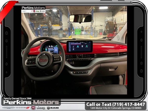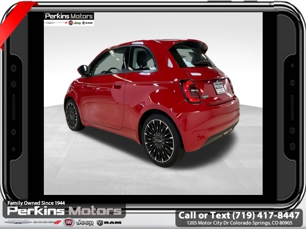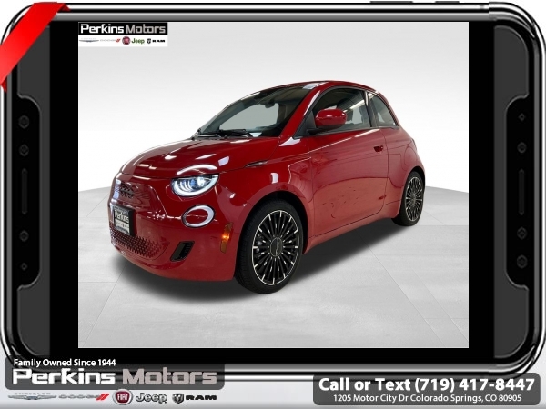 Factory MSRP: $34,095 $2,000 off MSRP! Red by (Red) 2024 Fiat 500e Battery Electric FWD 1-Speed Automatic Electric<br><br>Check us out at www.perkinsmotors.com to see our specials! Since opening our doors in 1944, we’ve been proud to serve Colorado Springs, CO, and the surrounding areas of Pueblo, Castle Rock and Denver, CO. Throughout this time of being family owned for 80 years, we’ve maintained a firm commitment to our customers: to offer a wide selection of New Chrysler, Dodge, Fiat, Jeep, and Ram vehicles and quality pre-owned vehicles, and provide a quick, no-hassle car-buying process that ensures everyone drives off the lot satisfied with their purchase.<br><br>Quick Order Package 21A 500e Inspi(red), 6 Speakers, ABS brakes, Air Conditioning, Alloy wheels, AM/FM radio: SiriusXM, Anti-whiplash front head restraints, Automatic temperature control, Brake assist, Bumpers: body-color, Cloth Bucket Seats w/Red Accents, Compass, Cruise Control, Delay-off headlights, Driver door bin, Dual front impact airbags, Dual front side impact airbags, Electronic Stability Control, Front anti-roll bar, Front Bucket Seats, Front Center Armrest, Front dual zone A/C, Front reading lights, Front wheel independent suspension, Fully automatic headlights, Illuminated entry, Knee airbag, Low tire pressure warning, Manufacturer's Statement of Origin, Navigation System, Occupant sensing airbag, Outside temperature display, Overhead airbag, Overhead console, Panic alarm, ParkView Rear Back-Up Camera, Passenger door bin, Passenger vanity mirror, Power door mirrors, Power steering, Power windows, Premium audio system: Uconnect 5.0, Radio data system, Radio: Uconnect 5 Nav w/10.25 Display, Rain sensing wipers, Rear anti-roll bar, Rear window defroster, Rear window wiper, Remote keyless entry, Security system, Split folding rear seat, Spoiler, Sport steering wheel, Steering wheel mounted audio controls, Telescoping steering wheel, Tilt steering wheel, Traction control, Trip computer, Variably intermittent wipers, and Wheels: 17 x 7.0 Aluminum Multi-Spoke.