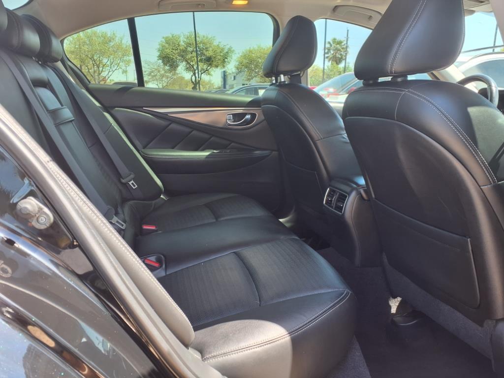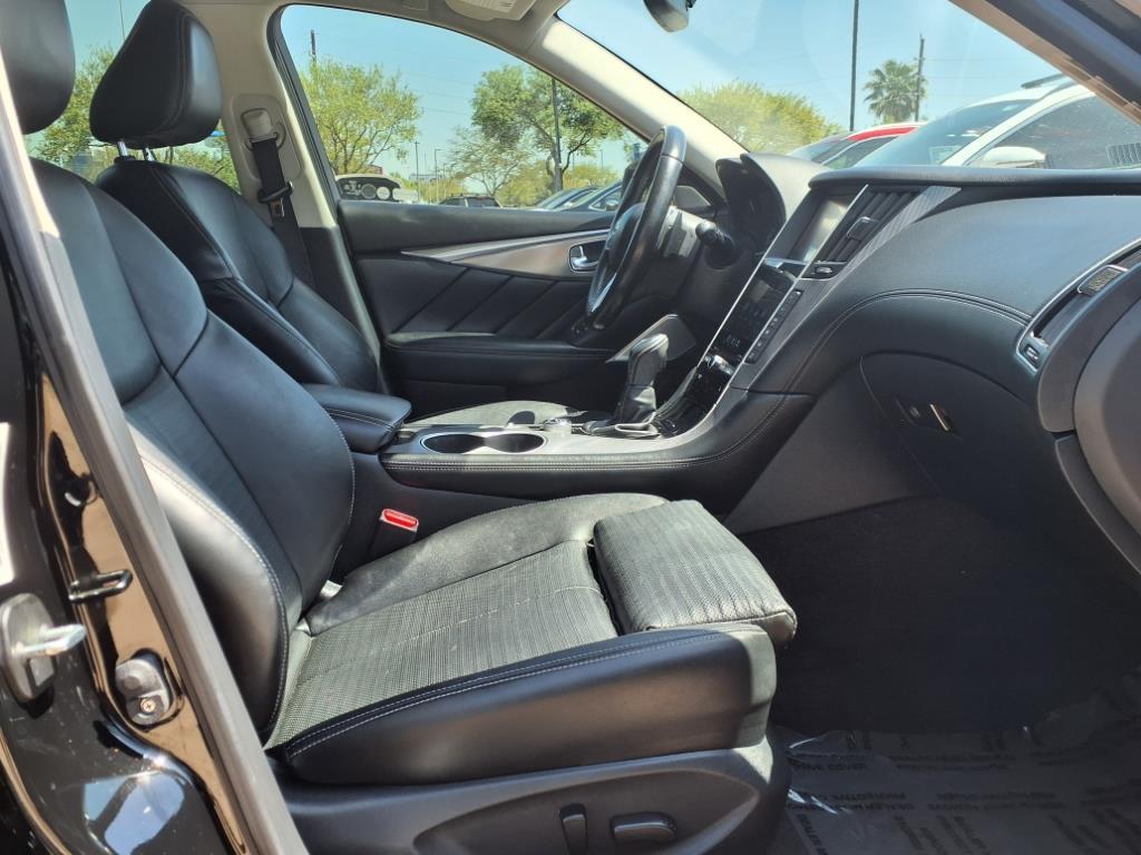 This Midnight Black 2019 INFINITI Q50 3.0t SPORT would be a welcomed addition to your family or business. \n\n \n\nThis Q50 has the following features:\n\n\n\n<h4 class=vc_build_package_name>Cargo Package ($270 value)</h4><ul class=vc_build_package_item_list><li>First Aid Kit</li><li>Shopping Bag Hook</li><li>Cargo Net</li><li>Carpeted Trunk Mat</li></ul>\n\n\n<h4 class=vc_build_feature_name>Convenience</h4><ul class=vc_build_feature_item_list><li> Cruise control with steering wheel mounted controls. Set it and forget it. Road trips used to be stressful, until cruise control set the pace. Simply set the desired speed using the steering wheel mounted controls and it will maintain that speed without driver intervention. This can help minimize driver fatigue and improve overall fuel economy. Resting your right foot is right at your fingertips thanks to cruise control with steering wheel mounted controls.</li></ul><h4 class=vc_build_feature_name>Safety and Security</h4><ul class=vc_build_feature_item_list><li> Forward collision mitigation - Forward thinking. You look away for just a second and suddenly the vehicle in front of you has stopped. That's when the forward collision mitigation system comes to life. When it senses an impending impact, it will activate a combination of features to help prevent or reduce the severity of an accident. Forward collision mitigation is always looking ahead.</li><li> Rear camera - Watching your back! The rear camera helps you see obstacles and hazards you otherwise couldn't by showing enhanced images of what is behind you. The rear camera is an extra set of eyes that's both convenient and safe.</li><li> Rear collision mitigation - It has your back. Rear collision mitigation uses sensors to monitor the area behind you. If it senses an impending crash, it activates certain features to help prevent a collision or reduce the severity of it. Put your worries behind you with rear collision mitigation.</li><li> Brake assist - Stop right there. Something jumps out into the middle of the road and you need to stop now! With brake assist, you will. It uses the speed of the brake pedal's travel to sense panic braking, then applies all available power to boost your stopping power. Brake assist can stop the accident before it is one.</li></ul>\n\n\n\n\n \n\nTo be sure you don't miss out, give us a call at and schedule a test drive. We are located at 8811 Lakes At 610 Dr Houston TX 77054. We look forward to seeing you soon.