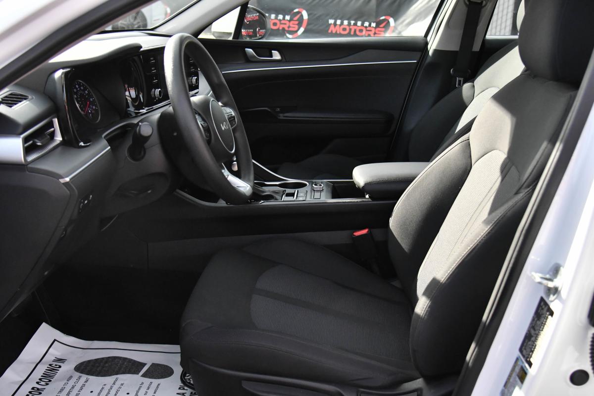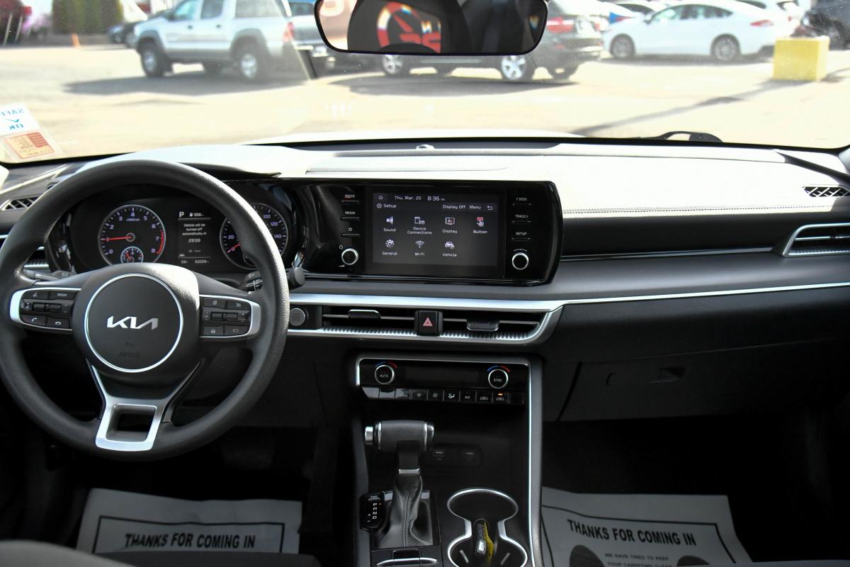 Delivers 37 Highway MPG and 27 City MPG! This Kia K5 boasts a Intercooled Turbo Regular Unleaded I-4 1.6 L/98 engine powering this Automatic transmission. GLACIAL WHITE PEARL, CARPETED FLOOR MATS, BLACK, CLOTH SEAT TRIM.*This Kia K5 Comes Equipped with These Options *Window Grid Antenna, Wheels: 6.5J x 16 Gray Alloy, Variable Intermittent Wipers, Urethane Gear Shifter Material, Turn-By-Turn Navigation Directions, Trunk Rear Cargo Access, Trip Computer, Transmission: 8-Speed Automatic -inc: drive mode select system, Transmission w/Sequential Shift Control, Tires: P205/65R16 95H.