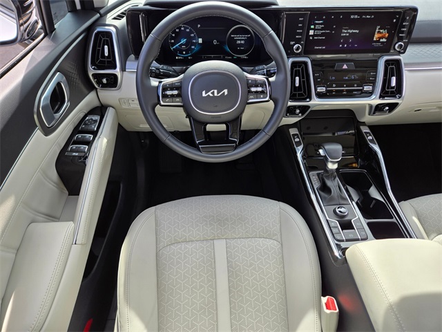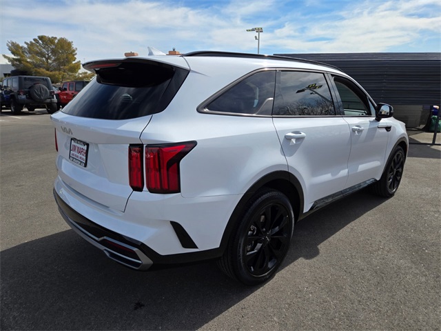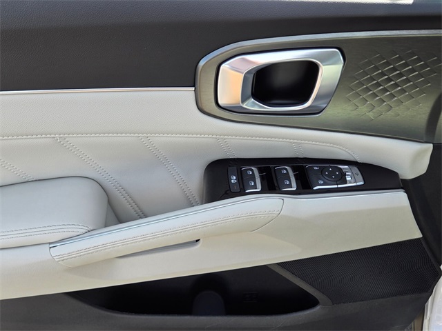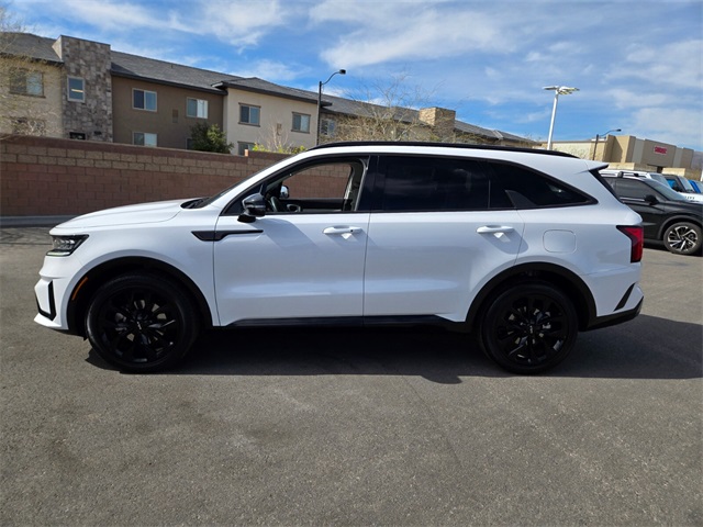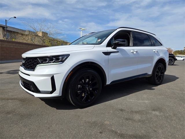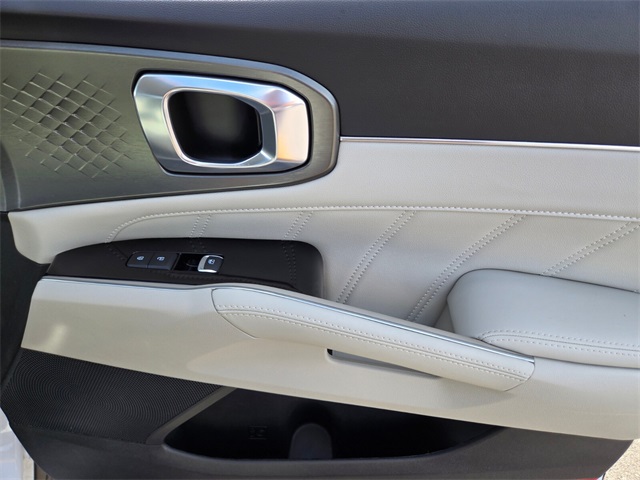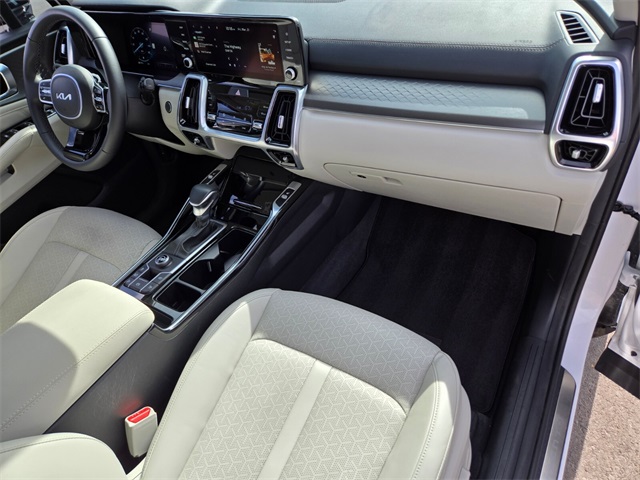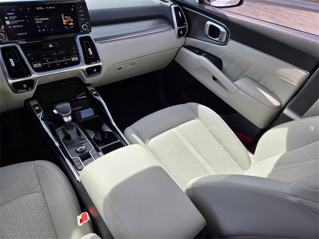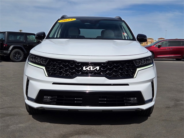 CARFAX One-Owner.Priced below KBB Fair Purchase Price!Odometer is 7948 miles below market average!22/29 City/Highway MPGGlacial White Pearl 2023 Kia Sorento SX FWD 8-Speed DCT 2.5L I4 DGI Turbocharged DOHC 16V LEV3-ULEV70 281hpIf you don't drive here, you can't save here!Price may not include recon fee. 3.316 Axle Ratio, 3rd row seats: split-bench, 4-Wheel Disc Brakes, 6 Speakers, ABS brakes, Air Conditioning, Alloy wheels, AM/FM radio: SiriusXM, Apple CarPlay & Android Auto, Auto High-beam Headlights, Auto-dimming Rear-View mirror, Automatic temperature control, Brake assist, Bumpers: body-color, Carpet Floor Mats, Delay-off headlights, Driver door bin, Driver vanity mirror, Dual front impact airbags, Dual front side impact airbags, Electronic Stability Control, Emergency communication system, Exterior Parking Camera Rear, Four wheel independent suspension, Front anti-roll bar, Front Bucket Seats, Front Center Armrest, Front dual zone A/C, Front fog lights, Front reading lights, Fully automatic headlights, Heated door mirrors, Heated Front Bucket Seats, Heated front seats, Illuminated entry, Knee airbag, Leather steering wheel, Low tire pressure warning, Navigation System, Occupant sensing airbag, Outside temperature display, Overhead airbag, Overhead console, Panic alarm, Passenger door bin, Passenger vanity mirror, Power door mirrors, Power driver seat, Power Liftgate, Power moonroof, Power passenger seat, Power steering, Power windows, Radio data system, Radio: AM/FM Audio System, Rain sensing wipers, Rear air conditioning, Rear anti-roll bar, Rear reading lights, Rear window defroster, Rear window wiper, Remote keyless entry, Roof rack: rails only, Security system, Smart Key w/ Push Button and Remote Start, Speed control, Speed-sensing steering, Split folding rear seat, Spoiler, Steering wheel mounted audio controls, SynTex Artificial Leather Seat Trim, Tachometer, Telescoping steering wheel, Tilt steering wheel, Traction control, Trip computer, Turn signal indicator mirrors, Variably intermittent wipers, and Wheels: 8.5J x 20" Gloss Black Alloy.