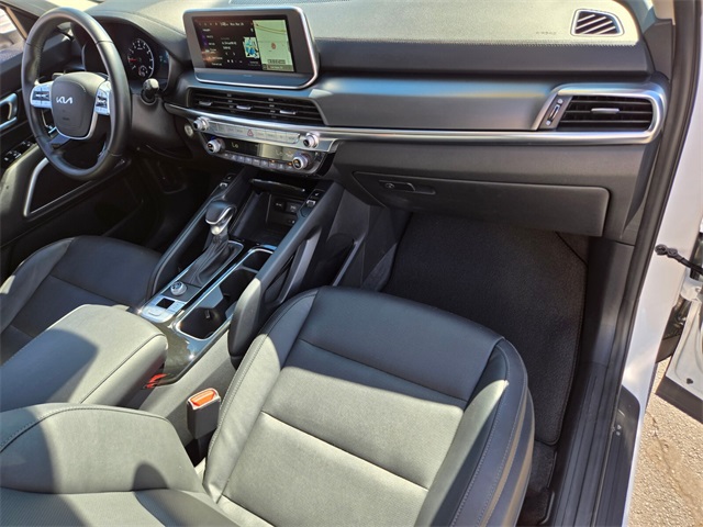 CARFAX One-Owner.Priced below KBB Fair Purchase Price!Odometer is 21019 miles below market average!20/26 City/Highway MPGGlacial White Pearl 2022 Kia Telluride S FWD 8-Speed Automatic 3.8L V6 DOHCIf you don't drive here, you can't save here!Price may not include recon fee. 20" x 7.5" Machined Alloy Wheels, 3.648 Axle Ratio, 3rd row seats: split-bench, 4-Wheel Disc Brakes, 6 Speakers, ABS brakes, Air Conditioning, Alloy wheels, AM/FM radio: SiriusXM, Apple CarPlay & Android Auto, Automatic temperature control, Brake assist, Bumpers: body-color, Carpeted Floor Mats, Delay-off headlights, Driver door bin, Driver vanity mirror, Dual front impact airbags, Dual front side impact airbags, Electronic Stability Control, Emergency communication system: 911 Connect, Folding Cargo Tray, Four wheel independent suspension, Front anti-roll bar, Front Bucket Seats, Front Center Armrest, Front dual zone A/C, Front reading lights, Fully automatic headlights, Heated door mirrors, Heated Front Bucket Seats, Heated front seats, Hybrid Cargo Net, Illuminated entry, Knee airbag, Leather Shift Knob, Leather steering wheel, Low tire pressure warning, Navigation System, Occupant sensing airbag, Outside temperature display, Overhead airbag, Overhead console, Panic alarm, Passenger door bin, Passenger vanity mirror, Power door mirrors, Power driver seat, Power moonroof, Power steering, Power windows, Radio data system, Radio: AM/FM Display Audio System, Rear air conditioning, Rear anti-roll bar, Rear audio controls, Rear reading lights, Rear window defroster, Rear window wiper, Reclining 3rd row seat, Remote keyless entry, Roof rack: rails only, Security system, Smart Key w/ Push Button and Remote Start, Speed control, Speed-sensing steering, Split folding rear seat, Spoiler, Steering wheel mounted audio controls, Synthetic Leather Seat Trim, Tachometer, Telescoping steering wheel, Tilt steering wheel, Traction control, Trip computer, Turn signal indicator mirrors, and Variably intermittent wipers.