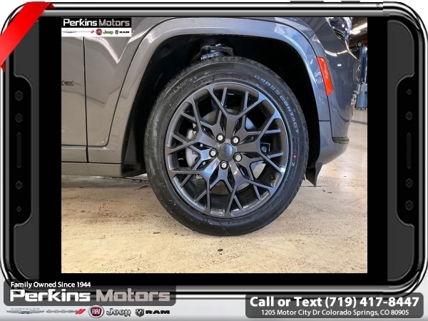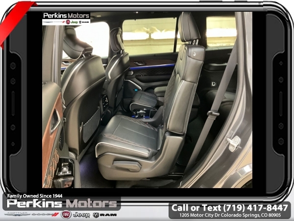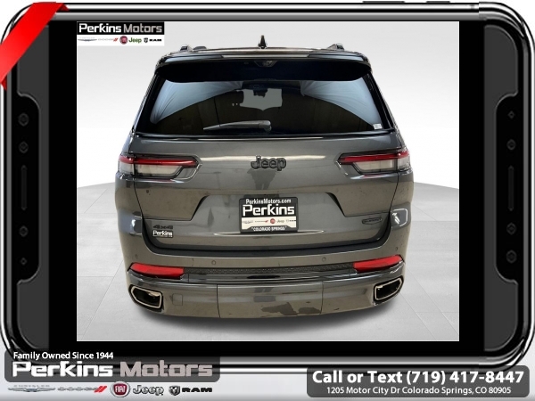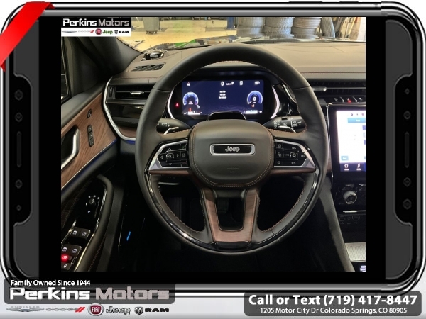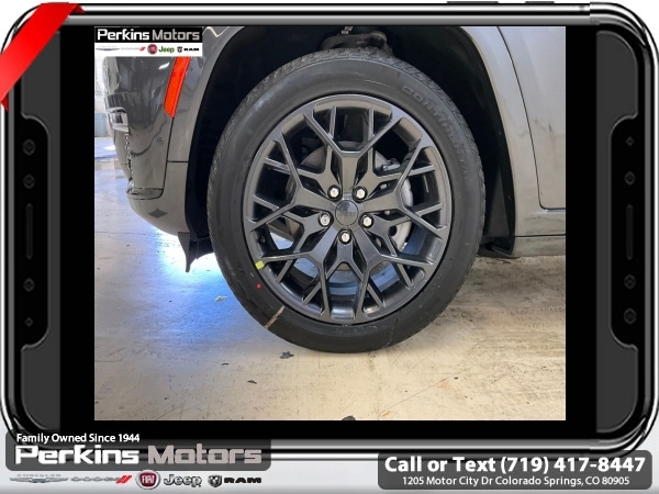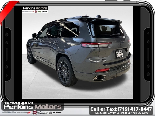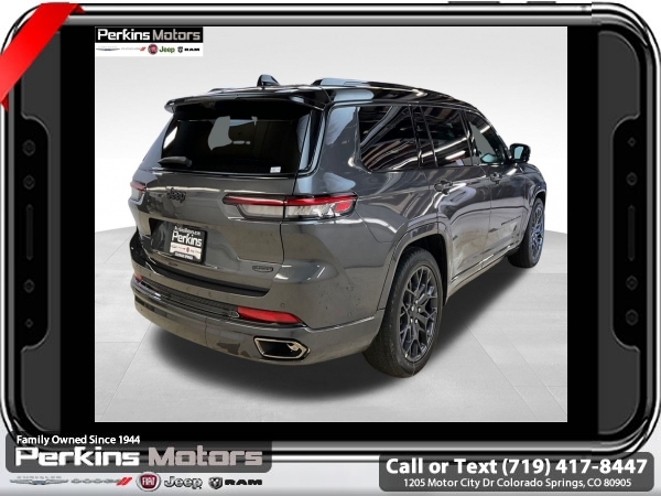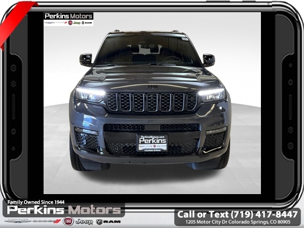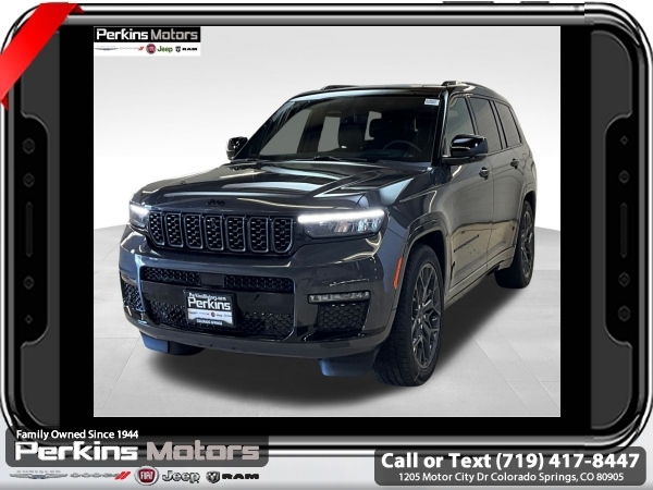 Factory MSRP: $75,840 $7,000 off MSRP! Baltic Gray Metallic Clearcoat 2025 Jeep Grand Cherokee L Summit 4WD 8-Speed Automatic 3.6L V6 24V VVT<br><br>Check us out at www.perkinsmotors.com to see our specials! Since opening our doors in 1944, we’ve been proud to serve Colorado Springs, CO, and the surrounding areas of Pueblo, Castle Rock and Denver, CO. Throughout this time of being family owned for 80 years, we’ve maintained a firm commitment to our customers: to offer a wide selection of New Chrysler, Dodge, Fiat, Jeep, and Ram vehicles and quality pre-owned vehicles, and provide a quick, no-hassle car-buying process that ensures everyone drives off the lot satisfied with their purchase.<br><br>Advanced Protech Group IV (Heads-Up Display, Interior Rear Facing Camera, Night Vision/Pedestrian-Animal Detection, Rearview Autodim Digital Display Mirror, and Windshield Wiper De-Icer), High Altitude Package (Gloss Black Exterior Accents, Neutral Gray Exterior Accents, Painted Door Cladding, and Wheels: 21 x 9 Black Painted Aluminum), Luxury Tech Group V (2nd Row Manual Window Shades and Wireless Charging Pad), Quick Order Package 23S, Two Tone Paint Group, 10 Speakers, 19 Speakers High Performance Audio, 3.45 Rear Axle Ratio, 3rd row seats: split-bench, 4-Wheel Disc Brakes, 950 Watt Amplifier, ABS brakes, Active Noise Control System, Adaptive suspension, Air Conditioning, Alloy wheels, AM/FM radio: SiriusXM with 360L, Anti-whiplash front head restraints, Audio memory, Auto High-beam Headlights, Auto-dimming door mirrors, Auto-dimming Rear-View mirror, Auto-leveling suspension, Automatic temperature control, Aux Battery, Brake assist, Bumpers: body-color, Compass, Cruise Control, Delay-off headlights, Driver door bin, Driver vanity mirror, Dual front impact airbags, Dual front side impact airbags, Electronic Stability Control, Emergency communication system, Four wheel independent suspension, Front anti-roll bar, Front Bucket Seats, Front Center Armrest w/Storage, Front dual zone A/C, Front fog lights, Front License Plate Bracket, Front Passenger Interactive Display, Front reading lights, Fully automatic headlights, Garage door transmitter, Genuine wood dashboard insert, Genuine wood door panel insert, Hands-Free Active Driving Assist System, Heated door mirrors, Heated front seats, Heated rear seats, Heated steering wheel, Illuminated entry, Knee airbag, Leather steering wheel, Low tire pressure warning, Memory seat, Model Year Tracking, Nappa Leather Seats, Navigation System, Normal Duty Suspension, Occupant sensing airbag, Outside temperature display, Overhead airbag, Overhead console, Panic alarm, Passenger door bin, Passenger vanity mirror, Power door mirrors, Power driver seat, Power Fold Seatbacks, Power Liftgate, Power moonroof, Power passenger seat, Power steering, Power windows, Radio data system, Radio: Uconnect 5 Nav w/10.1 Display, Rain sensing wipers, Rear air conditioning, Rear anti-roll bar, Rear dual zone A/C, Rear reading lights, Rear seat center armrest, Rear window defroster, Rear window wiper, Reclining 3rd row seat, Remote keyless entry, Security system, Speed-Sensitive Wipers, Split folding rear seat, Spoiler, Steering wheel memory, Steering wheel mounted audio controls, Tachometer, Telescoping steering wheel, Tilt steering wheel, Traction control, Trip computer, Turn signal indicator mirrors, Variably intermittent wipers, Ventilated front seats, Voltmeter, and Wheels: 20 x 8.5 Fully Painted Aluminum Silver. Sale price includes all manufacture's incentives and dealer discounts. Sale price not available on lease or compatible with special APR. $1000 - 2025 National Retail Consumer Cash. Exp. 04/30/2025 $1500 - 2025 National Jeep Celebration Event Retail Bonus Cash . Exp. 04/30/2025