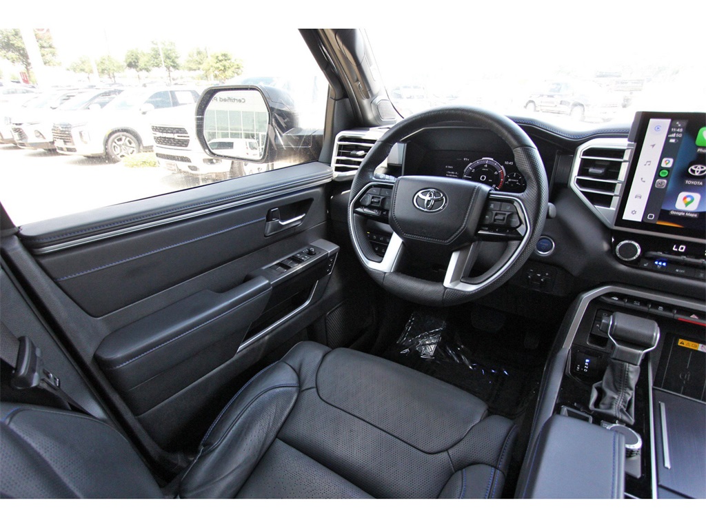 Central Houston Nissan is proud to present you with another True Market Priced Pre-Owned Vehicle. This 2024 Toyota Tundra Hybrid Platinum is loaded with the following Factory Options: 3.4L V6 3.4L V6, 10" Color Head-Up Display (HUD), 12 Speakers, 3.31 Axle Ratio, 4-Wheel Disc Brakes, ABS brakes, Air Conditioning, Alloy wheels, AM/FM radio: SiriusXM, Apple CarPlay/Android Auto, Auto High-beam Headlights, Auto-dimming door mirrors, Auto-dimming Rear-View mirror, Automatic temperature control, Brake assist, Bumpers: body-color, Delay-off headlights, Driver door bin, Driver vanity mirror, Dual front impact airbags, Dual front side impact airbags, Electronic Stability Control, Emergency communication system: Safety Connect (10-year trial), Exterior Parking Camera Rear, Front anti-roll bar, Front Bucket Seats, Front Center Armrest, Front dual zone A/C, Front fog lights, Front reading lights, Front wheel independent suspension, Fully automatic headlights, Garage door transmitter: HomeLink, Heated & Ventilated Front Bucket Seats, Heated door mirrors, Heated front seats, Heated rear seats, Heated steering wheel, Illuminated entry, Knee airbag, Leather Seat Trim, Leather Shift Knob, Load-Leveling Rear Height Control Air Suspension, Low tire pressure warning, Memory seat, Navigation System, Occupant sensing airbag, Outside temperature display, Overhead airbag, Overhead console, Panic alarm, Passenger door bin, Passenger vanity mirror, Power door mirrors, Power driver seat, Power moonroof, Power passenger seat, Power Running Boards, Power steering, Power windows, Radio data system, Radio: Premium Audio w/JBL, Rain sensing wipers, Rear reading lights, Rear seat center armrest, Rear step bumper, Rear window defroster, Remote keyless entry, Security system, Speed control, Speed-sensing steering, Split folding rear seat, Steering wheel memory, Steering wheel mounted audio controls, Tachometer, Telescoping steering wheel, Tilt steering wheel, Traction control, Trip computer, Turn signal indicator mirrors, Variably intermittent wipers, Ventilated front seats, Ventilated rear seats, Voltmeter, and Wheels: 20" x 8" Dark-Painted Alloy!!Central Houston Nissan is more than just your typical car dealership. When our customers visit us, our goal is to provide quality vehicles, exceptional service and a friendly atmosphere. Our staff has been trained to create ease during your purchase or service experience and we are always making sure you get everything you want and deserve out of your visit. Our vision and mission is an employee-centered and customer-focused environment. Vehicles may be subject to prep package and market adjustment. When you buy from Central Houston Nissan, we'll make it the best car buying experience you've ever had. When you purchase a New Nissan or a qualifying Pre-Owned vehicle from Central Houston Nissan, you are automatically enrolled into our Central Houston Nissan Central Care Program at no cost to you. You can’t beat that! Vehicles may be subject to prep package and market adjustment. Stop by 2901 S Loop W, Houston, Texas 77054 today!!!