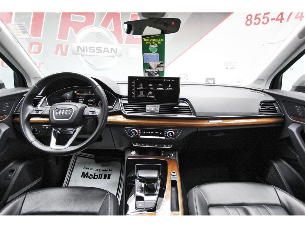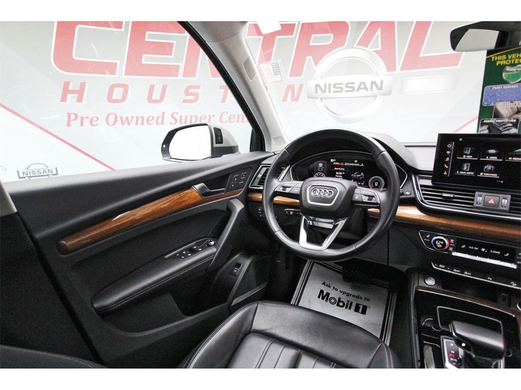 Central Houston Nissan is proud to present you with another True Market Priced Pre-Owned Vehicle. This 2023 Audi Q5 45 S line Premium quattro is loaded with the following Factory Options: Black Leather Black Leather, 10 Speakers, 4-Wheel Disc Brakes, 5.302 Axle Ratio, ABS brakes, Air Conditioning, Alloy wheels, AM/FM radio, Auto-dimming Rear-View mirror, Automatic temperature control, Brake assist, Bumpers: body-color, Compass, Delay-off headlights, Driver door bin, Driver vanity mirror, Dual front impact airbags, Dual front side impact airbags, Electronic Stability Control, Emergency communication system: Audi connect CARE, Exterior Parking Camera Rear, Four wheel independent suspension, Front anti-roll bar, Front Bucket Seats, Front Center Armrest, Front dual zone A/C, Front fog lights, Front reading lights, Garage door transmitter: HomeLink, Genuine wood console insert, Genuine wood dashboard insert, Genuine wood door panel insert, Heated 8-Way Power Front Bucket Seats, Heated door mirrors, Heated front seats, Illuminated entry, Leather Seating Surfaces, Leather Shift Knob, Low tire pressure warning, Occupant sensing airbag, Outside temperature display, Overhead airbag, Overhead console, Panic alarm, Passenger door bin, Passenger vanity mirror, Power door mirrors, Power driver seat, Power Liftgate, Power passenger seat, Power steering, Power windows, Radio data system, Radio: Audi Sound System, Rain sensing wipers, Rear air conditioning, Rear anti-roll bar, Rear fog lights, Rear reading lights, Rear seat center armrest, Rear window defroster, Rear window wiper, Remote keyless entry, Roof rack, Security system, Speed control, Speed-sensing steering, Speed-Sensitive Wipers, Split folding rear seat, Spoiler, Steering wheel mounted audio controls, Tachometer, Telescoping steering wheel, Tilt steering wheel, Traction control, Trip computer, Turn signal indicator mirrors, Variably intermittent wipers, and Wheels: 18" 5-Arm-Turbine Design!!Central Houston Nissan is more than just your typical car dealership. When our customers visit us, our goal is to provide quality vehicles, exceptional service and a friendly atmosphere. Our staff has been trained to create ease during your purchase or service experience and we are always making sure you get everything you want and deserve out of your visit. Our vision and mission is an employee-centered and customer-focused environment. Vehicles may be subject to prep package and market adjustment. When you buy from Central Houston Nissan, we'll make it the best car buying experience you've ever had. When you purchase a New Nissan or a qualifying Pre-Owned vehicle from Central Houston Nissan, you are automatically enrolled into our Central Houston Nissan Central Care Program at no cost to you. You can’t beat that! Vehicles may be subject to prep package and market adjustment. Stop by 2901 S Loop W, Houston, Texas 77054 today!!!