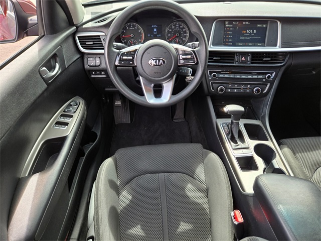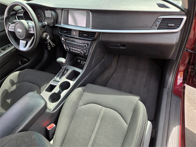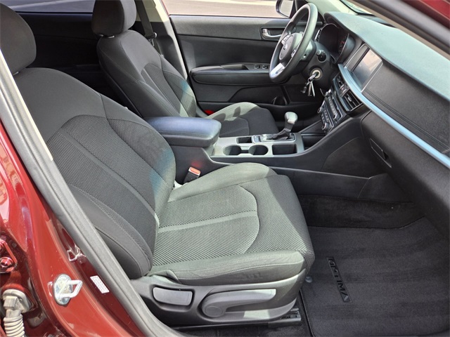 24/32 City/Highway MPGSangria 2020 Kia Optima LX FWD 6-Speed Automatic with Sportmatic 2.4L I4 DGI DOHC Black Cloth.If you don't drive here, you can't save here!Price may not include recon fee. Black Cloth, 4-Wheel Disc Brakes, 6 Speakers, 6.5J x 16" Silver Alloy Wheels, ABS brakes, Air Conditioning, Alloy wheels, AM/FM radio, Anti-whiplash front head restraints, Apple CarPlay & Android Auto, Auto High-beam Headlights, Brake assist, Bumpers: body-color, Carpet Floor Mats, Cloth Seat Trim, Delay-off headlights, Driver door bin, Driver vanity mirror, Dual front impact airbags, Dual front side impact airbags, Electronic Stability Control, Four wheel independent suspension, Front anti-roll bar, Front Bucket Seats, Front Center Armrest, Front reading lights, Fully automatic headlights, Heated door mirrors, Illuminated entry, Knee airbag, Low tire pressure warning, Occupant sensing airbag, Outside temperature display, Overhead airbag, Overhead console, Panic alarm, Passenger door bin, Passenger vanity mirror, Power door mirrors, Power steering, Power windows, Radio data system, Radio: AM/FM/MP3 Audio System, Rear anti-roll bar, Rear seat center armrest, Rear window defroster, Remote keyless entry, Security system, Speed control, Speed-sensing steering, Split folding rear seat, Steering wheel mounted audio controls, Tachometer, Telescoping steering wheel, Tilt steering wheel, Traction control, Trip computer, Turn signal indicator mirrors, and Variably intermittent wipers.