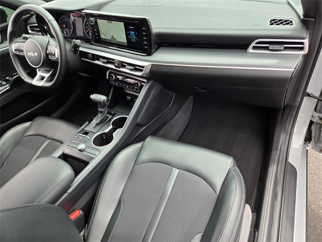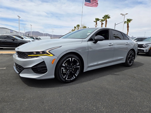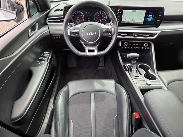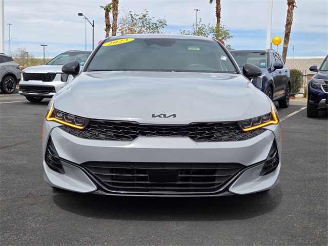 Recent Arrival!CARFAX One-Owner.Wolf Gray 2023 Kia K5 GT-Line FWD 8-Speed Automatic 1.6L I4 DGI Turbocharged DOHC 16V LEV3-ULEV70 180hpIf you don't drive here, you can't save here!Price may not include recon fee. GT-Line Premium Package (Smart Cruise Control w/Stop & Go), 4-Wheel Disc Brakes, 6 Speakers, ABS brakes, Air Conditioning, Alloy wheels, AM/FM radio: SiriusXM, Apple CarPlay & Android Auto, Auto High-beam Headlights, Automatic temperature control, Brake assist, Bumpers: body-color, Cargo Net, Cargo Tray, Carpeted Floor Mats, Cloth/SynTex Seat Trim, Delay-off headlights, Driver door bin, Driver vanity mirror, Dual front impact airbags, Dual front side impact airbags, Electronic Stability Control, Four wheel independent suspension, Front anti-roll bar, Front Bucket Seats, Front Center Armrest, Front dual zone A/C, Front fog lights, Front reading lights, Fully automatic headlights, Heated door mirrors, Illuminated entry, Knee airbag, Low tire pressure warning, Navigation System, Occupant sensing airbag, Outside temperature display, Overhead airbag, Overhead console, Panic alarm, Passenger door bin, Passenger vanity mirror, Power door mirrors, Power driver seat, Power steering, Power windows, Radio data system, Radio: AM/FM/MP3 Audio System, Rear anti-roll bar, Rear seat center armrest, Rear side impact airbag, Rear window defroster, Remote keyless entry, Security system, Speed control, Speed-sensing steering, Split folding rear seat, Spoiler, Sport steering wheel, Steering wheel mounted audio controls, Tachometer, Telescoping steering wheel, Tilt steering wheel, Traction control, Trip computer, Turn signal indicator mirrors, Variably intermittent wipers, and Wheels: 18" Gloss Black Machined Finish Alloy.