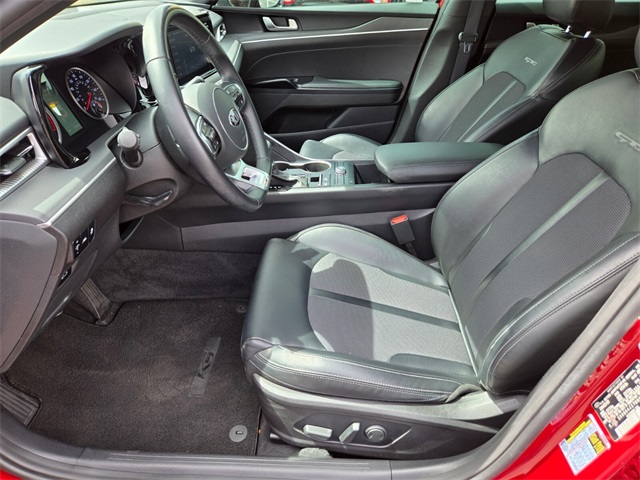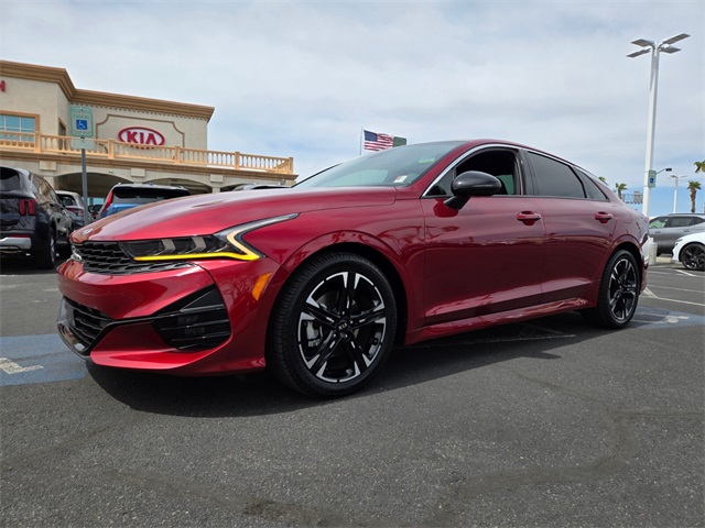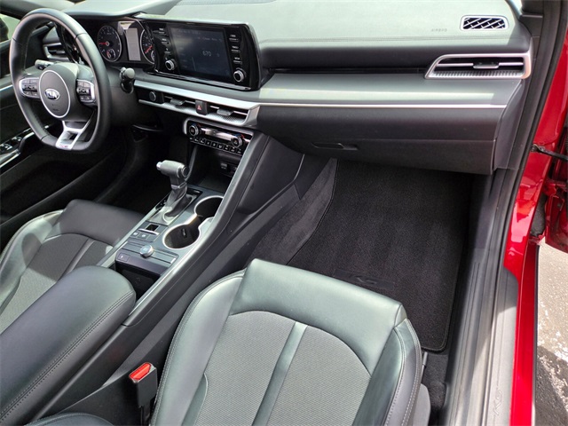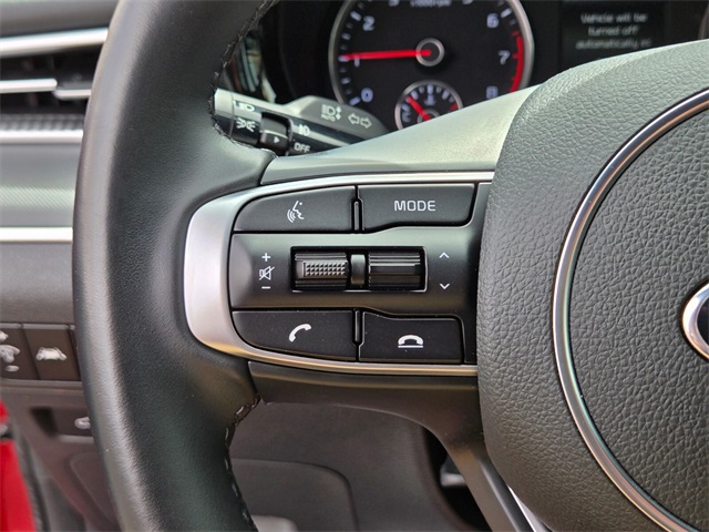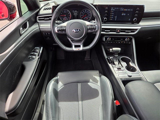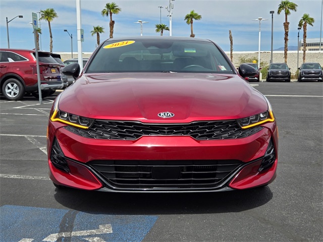 CARFAX One-Owner.Priced below KBB Fair Purchase Price!Odometer is 32302 miles below market average!Passion Red 2021 Kia K5 GT-Line FWD 8-Speed Automatic 1.6L I4 DGIIf you don't drive here, you can't save here!Price may not include recon fee. 4-Wheel Disc Brakes, 6 Speakers, ABS brakes, Air Conditioning, Alloy wheels, Apple CarPlay & Android Auto, Auto High-beam Headlights, Automatic temperature control, Brake assist, Bumpers: body-color, Cargo Net, Carpeted Floor Mats, Cloth/Leatherette Seat Trim, Delay-off headlights, Driver door bin, Driver vanity mirror, Dual front impact airbags, Dual front side impact airbags, Electronic Stability Control, Four wheel independent suspension, Front anti-roll bar, Front Bucket Seats, Front Center Armrest, Front dual zone A/C, Front fog lights, Front reading lights, Fully automatic headlights, Heated door mirrors, Illuminated entry, Knee airbag, Low tire pressure warning, Occupant sensing airbag, Outside temperature display, Overhead airbag, Overhead console, Panic alarm, Passenger door bin, Passenger vanity mirror, Power door mirrors, Power driver seat, Power steering, Power windows, Radio data system, Rear anti-roll bar, Rear seat center armrest, Rear side impact airbag, Rear window defroster, Remote keyless entry, Security system, Speed control, Speed-sensing steering, Split folding rear seat, Spoiler, Sport steering wheel, Steering wheel mounted audio controls, Tachometer, Telescoping steering wheel, Tilt steering wheel, Traction control, Trip computer, Turn signal indicator mirrors, Variably intermittent wipers, and Wheels: 7.5J x 18" Graphite Machined Finish Alloy.