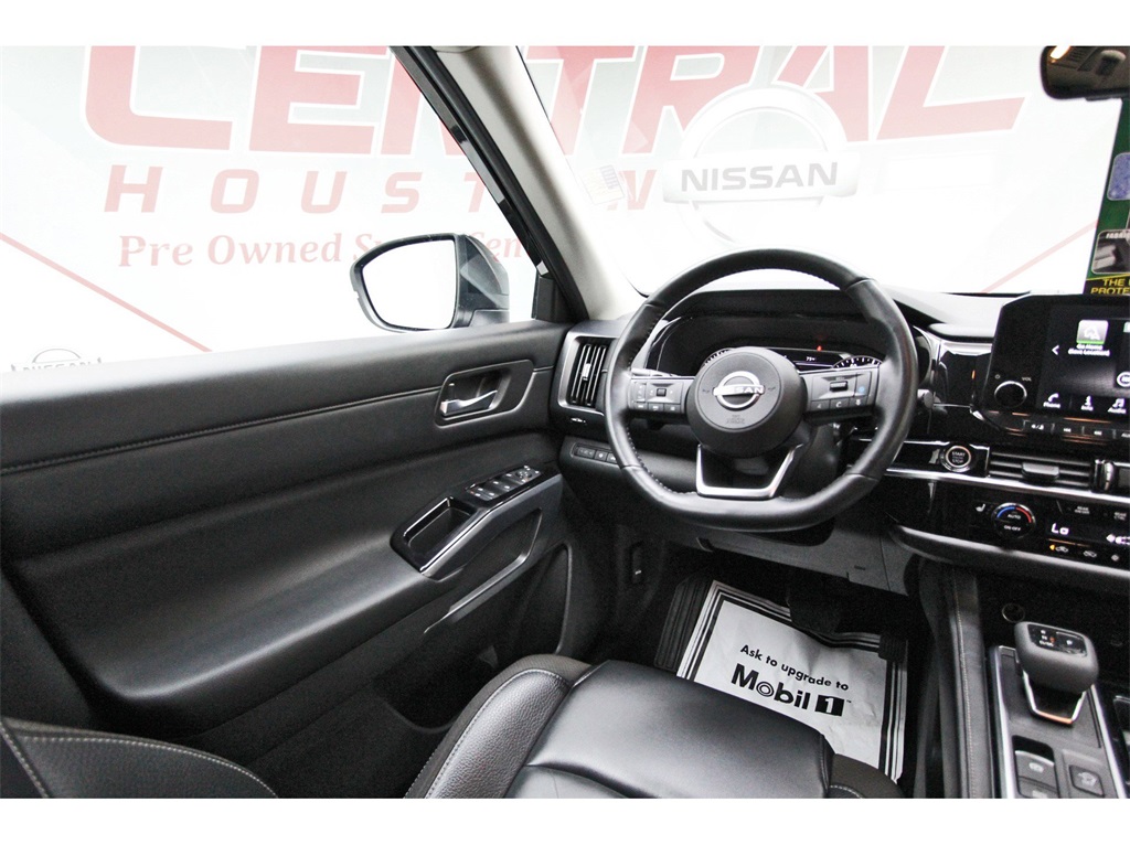 Central Houston Nissan is proud to present you with another True Market Priced Pre-Owned Vehicle. This 2023 Nissan Pathfinder SL Nissan Certified is loaded with the following Factory Options: Nissan Certified Certified Nissan Certified Certified, 18" Machined Alloy Wheels, 3rd row seats: bench, 4-Wheel Disc Brakes, 6 Speakers, ABS brakes, Air Conditioning, Alloy wheels, AM/FM radio: SiriusXM, Auto High-beam Headlights, Auto-dimming Rear-View mirror, Automatic temperature control, Axle Ratio: 4.334, Bose Premium Audio System, Brake assist, Bumpers: body-color, Delay-off headlights, Driver door bin, Driver vanity mirror, Dual front impact airbags, Dual front side impact airbags, Electronic Stability Control, Emergency communication system: NissanConnect Services, Exterior Parking Camera Rear, Four wheel independent suspension, Front anti-roll bar, Front Bucket Seats, Front Center Armrest, Front dual zone A/C, Front reading lights, Fully automatic headlights, Garage door transmitter: HomeLink, Heated door mirrors, Heated Front Bucket Seats, Heated front seats, Heated steering wheel, Illuminated entry, Knee airbag, Leather Seating Surfaces, Leather steering wheel, Low tire pressure warning, Navigation system: NissanConnect Navigation, NissanConnect w/Navigation & Services, Occupant sensing airbag, Outside temperature display, Overhead airbag, Overhead console, Panic alarm, Passenger door bin, Passenger vanity mirror, Power door mirrors, Power driver seat, Power Liftgate, Power passenger seat, Power steering, Power windows, Radio data system, Radio: AM/FM Audio System, Rear air conditioning, Rear anti-roll bar, Rear reading lights, Rear seat center armrest, Rear side impact airbag, Rear window defroster, Rear window wiper, Reclining 3rd row seat, Remote keyless entry, Security system, Speed control, Speed-sensing steering, Split folding rear seat, Spoiler, Steering wheel mounted audio controls, Tachometer, Telescoping steering wheel, Tilt steering wheel, Traction control, Trip computer, Turn signal indicator mirrors, and Variably intermittent wipers!!Central Houston Nissan is more than just your typical car dealership. When our customers visit us, our goal is to provide quality vehicles, exceptional service and a friendly atmosphere. Our staff has been trained to create ease during your purchase or service experience and we are always making sure you get everything you want and deserve out of your visit. Our vision and mission is an employee-centered and customer-focused environment. Vehicles may be subject to prep package and market adjustment. When you buy from Central Houston Nissan, we'll make it the best car buying experience you've ever had. When you purchase a New Nissan or a qualifying Pre-Owned vehicle from Central Houston Nissan, you are automatically enrolled into our Central Houston Nissan Central Care Program at no cost to you. You can’t beat that! Vehicles may be subject to prep package and market adjustment. Stop by 2901 S Loop W, Houston, Texas 77054 today!!!