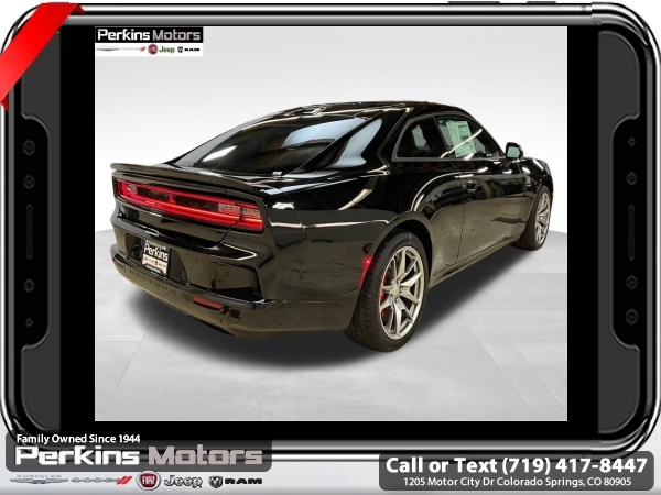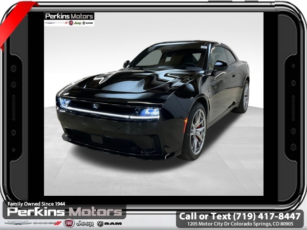 Factory MSRP: $79,680 $15,959 off MSRP! Priced below KBB Fair Purchase Price! Diamond Black Crystal Pearlcoat 2025 Dodge Charger R/T Scat Pack AWD 1-Speed Automatic Electric Motor<br>AWD, Black Artificial Leather.<br>Check us out at www.perkinsmotors.com to see our specials! Since opening our doors in 1944, we’ve been proud to serve Colorado Springs, CO, and the surrounding areas of Pueblo, Castle Rock and Denver, CO. Throughout this time of being family owned for 80 years, we’ve maintained a firm commitment to our customers: to offer a wide selection of New Chrysler, Dodge, Fiat, Jeep, and Ram vehicles and quality pre-owned vehicles, and provide a quick, no-hassle car-buying process that ensures everyone drives off the lot satisfied with their purchase.<br><br>Plus Group (Ambient Light Color Control, Automatic High-Beam Headlamp Control, Black Color Multi-Function Mirrors, Exterior Mirrors Logo Lamps, Exterior Mirrors w/Memory, Front Cubby Bin w/Light, Frunk, Glove Box Lamp, Heated Exterior Mirrors, Heated Front Seats, Heated Second Row Seats, High Back Bucket Seats, Illuminated Door Pull Handles, Leather Performance Seats, LED Footwell Lighting, LED Map Pockets, Map-In-Cluster Display, Power 4-Way Driver Lumbar Adjust, Power 4-Way Passenger Lumbar Adjust, Power Adjust 12-Way Driver Seat, Power Adjust 12-Way Front Passenger Seat, Power Adjust Mirrors, Power Hatch, Power Tilt/Telescope Steering Column, Power Windows Global Down w/Key Fob, Premium Door Trim Panel, Premium Instrument Panel, Premium Interior Accents, Premium LED Low-High Reflective Headlamps, Radio, Driver Seat, Mirrors & Steering Column Memory, Rain Sensitive Windshield Wipers, Surround View Camera System, Ventilated Front Seats, Windshield Wiper De-Icer, and Wireless Charging Pad), Quick Order Package 25S Scat Pack, Two Tone Paint Group, AWD, Black Artificial Leather, 10 Speakers, 4-Wheel Disc Brakes, ABS brakes, Adaptive Damping, Air Conditioning, Alloy wheels, AM/FM radio: SiriusXM w/360L, Apple CarPlay/Android Auto, Auto-dimming Rear-View mirror, Automatic temperature control, Black 1-Piece Performance Spoiler, Black Seats, Brake assist, Brake Calipers - Red, Bumpers: body-color, Compass, Cruise Control, Delay-off headlights, Drive Experience Recorder, Drive Experience Recorder Prep, Driver door bin, Driver vanity mirror, Dual front impact airbags, Dual front side impact airbags, Electronic Stability Control, Emergency communication system: Dodge Connect, Four wheel independent suspension, Front anti-roll bar, Front Bucket Seats, Front Center Armrest, Front dual zone A/C, Front License Plate Bracket, Front reading lights, Fully automatic headlights, Garage door transmitter, Heads-Up Display, Heated door mirrors, Heated front seats, Heated steering wheel, Illuminated entry, Knee airbag, Leather Shift Knob, Low tire pressure warning, Navigation System, Occupant sensing airbag, Outside temperature display, Overhead airbag, Overhead console, Panic alarm, ParkView Rear Back-Up Camera, Passenger door bin, Passenger vanity mirror, Power door mirrors, Power driver seat, Power steering, Power windows, Radio & Driver Seat Memory, Radio data system, Radio: Uconnect 5 Nav w/12.3 Display, Rear anti-roll bar, Rear reading lights, Rear seat center armrest, Rear window defroster, Remote keyless entry, Security system, Split folding rear seat, Sport steering wheel, Steering wheel mounted audio controls, Telescoping steering wheel, Tilt steering wheel, Track Pack, Traction control, Trip computer, Ultra High Performance Brakes, Variably intermittent wipers, Wheels: 20 x 11 Fr/20 x 11.5 Rr Aluminum, and Widebody Competition Suspension.<br><br>82/73 City/Highway MPG Sale price includes all manufacture's incentives and dealer discounts. Sale price not available on lease or compatible with special APR. $4500 - 2025 National Retail Consumer Cash. Exp. 06/30/2025
