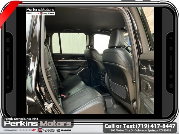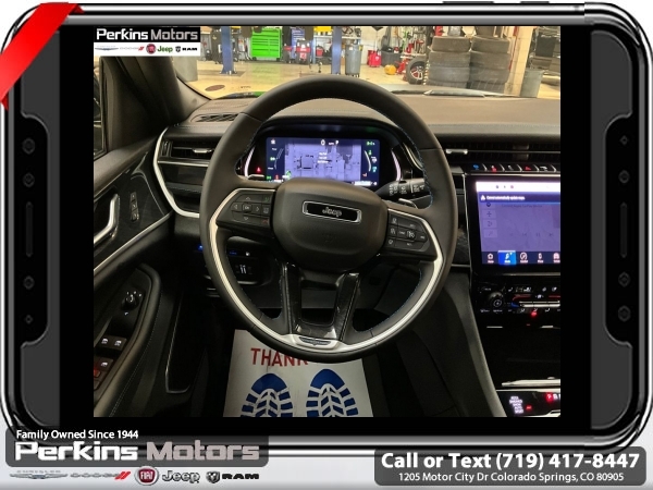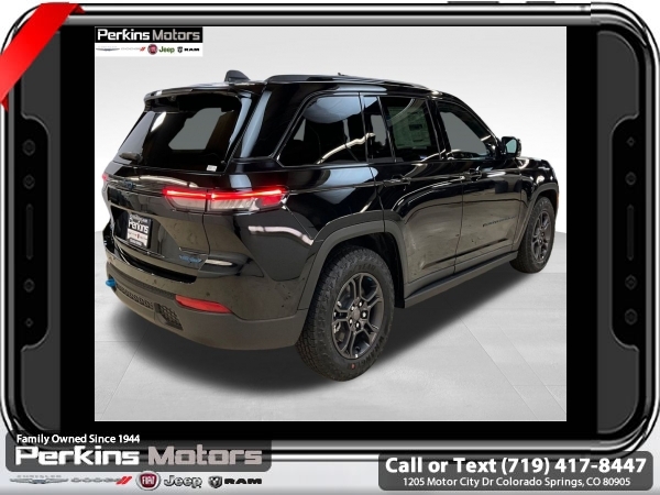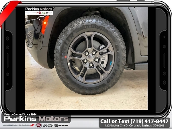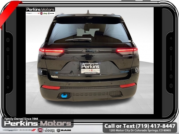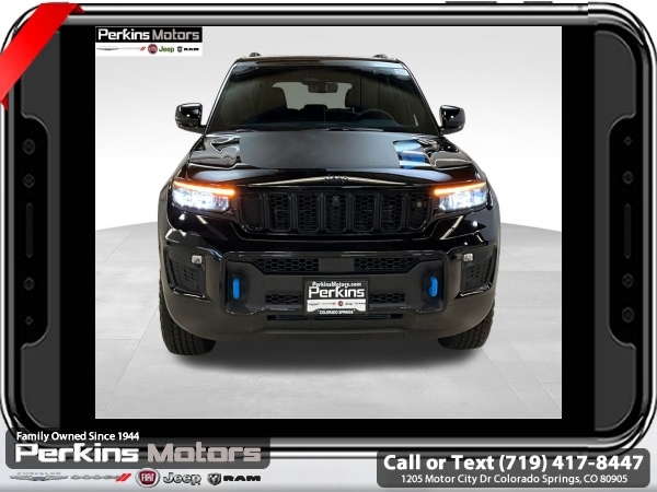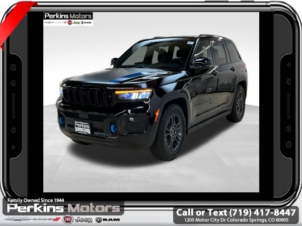 Factory MSRP: $75,015 $9,689 off MSRP! Diamond Black Crystal Pearlcoat 2025 Jeep Grand Cherokee Trailhawk 4xe 4WD 8-Speed Automatic 2.0L I4 DOHC<br>2.0L I4 DOHC, 4WD.<br>Check us out at www.perkinsmotors.com to see our specials! Since opening our doors in 1944, we’ve been proud to serve Colorado Springs, CO, and the surrounding areas of Pueblo, Castle Rock and Denver, CO. Throughout this time of being family owned for 80 years, we’ve maintained a firm commitment to our customers: to offer a wide selection of New Chrysler, Dodge, Fiat, Jeep, and Ram vehicles and quality pre-owned vehicles, and provide a quick, no-hassle car-buying process that ensures everyone drives off the lot satisfied with their purchase.<br><br>Advanced Protech Group II (Intersection Collision Assist System, Night Vision/Pedestrian-Animal Detection, ParkSense Front/Rear Park Assist w/Stop, and Surround View Camera System), Luxury Tech Group III (2nd-Row Manual Window Shades, Hands-Free Power Liftgate, Memory Steering Column, Passive Entry - Front/Rear Doors, Liftgate, Power Tilt/Telescope Steering Column, Rain Sensitive Windshield Wipers, Rearview Autodim Digital Display Mirror, and Wireless Charging Pad), Quick Order Package 27K, Two Tone Paint Group, 2.0L I4 DOHC, 4WD, 10 Speakers, 3.70 Rear Axle Ratio, 4-Wheel Disc Brakes, ABS brakes, Adaptive suspension, Air Conditioning, Alloy wheels, AM/FM radio: SiriusXM with 360L, Anti-whiplash front head restraints, Audio memory, Auto High-beam Headlights, Auto-dimming door mirrors, Auto-dimming Rear-View mirror, Auto-leveling suspension, Automatic temperature control, Brake assist, Bumpers: body-color, Capri Leather/Suede Seats, Compass, Cruise Control, Delay-off headlights, Driver door bin, Driver vanity mirror, Dual front impact airbags, Dual front side impact airbags, Electronic Stability Control, Four wheel independent suspension, Front anti-roll bar, Front Bucket Seats, Front Center Armrest w/Storage, Front dual zone A/C, Front fog lights, Front License Plate Bracket, Front reading lights, Fully automatic headlights, Garage door transmitter, Heated door mirrors, Heated front seats, Heated rear seats, Heated steering wheel, Heavy Duty Suspension, Illuminated entry, Knee airbag, Leather Shift Knob, Low tire pressure warning, Memory seat, Model Year Tracking, Navigation System, Occupant sensing airbag, Outside temperature display, Overhead airbag, Overhead console, Panic alarm, Passenger door bin, Passenger vanity mirror, Power door mirrors, Power driver seat, Power Liftgate, Power passenger seat, Power steering, Power windows, Radio data system, Radio: Uconnect 5 Nav w/10.1 Display, Rear anti-roll bar, Rear reading lights, Rear seat center armrest, Rear window defroster, Rear window wiper, Remote keyless entry, Security system, Speed-Sensitive Wipers, Split folding rear seat, Spoiler, Steering wheel mounted audio controls, Tachometer, Telescoping steering wheel, Tilt steering wheel, Traction control, Trip computer, Turn signal indicator mirrors, Variably intermittent wipers, Ventilated front seats, Voltmeter, and Wheels: 18 x 8 Fully Painted Aluminum. Sale price includes all manufacture's incentives and dealer discounts. Sale price not available on lease or compatible with special APR. $2000 - 2025 National Retail Consumer Cash. Exp. 06/30/2025
