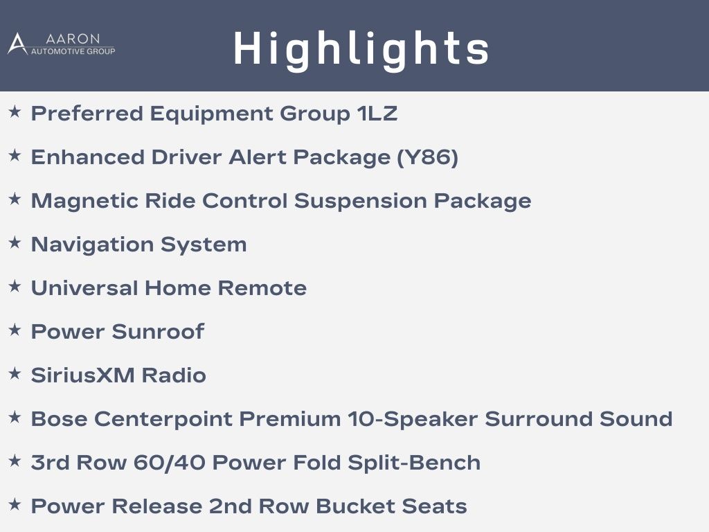 Shadow Gray Metallic 2019 Chevrolet Tahoe Premier RWD 6-Speed Automatic Electronic with Overdrive EcoTec3 5.3L V8 Jet Black Leather, 1st & 2nd Row Color-Keyed Carpeted Floor Mats, 3rd Row 60/40 Power Fold Split-Bench, 4-Wheel Antilock Disc Brakes w/Brake Assist, 5 12-Volt Auxiliary Power Outlets, Auto-Dimming Inside Rear-View Mirror, Black Assist Steps w/Chrome Accent Strip, Bose Centerpoint Premium 10-Speaker Surround Sound, Cargo Net, Color-Keyed Carpeting Floor Covering, Driver Inboard & Front Passenger Airbags, Electronic Cruise Control w/Set & Resume Speed, Enhanced Driver Alert Package (Y86), Floor Console, Fog Lamps, Forward Collision Alert, Front & Rear Park Assist, Front Passenger 6-Way Power Seat Adjuster, Hands Free Power Liftgate, Heated & Ventilated Driver & Front Passenger Seats, Heated 2nd Row Seats, Heated Leather Wrapped Steering Wheel, IntelliBeam Headlamps, Lane Change Alert w/Side Blind Zone Alert, Lane Keep Assist w/Lane Departure Warning, Low Speed Forward Automatic Braking, Magnetic Ride Control Suspension Package, Memory Settings, Navigation System, Passive Entry System, Power Liftgate, Power Release 2nd Row Bucket Seats, Power Sunroof, Power Tilt & Telescopic Steering Column, Power-Adjustable Accelerator & Brake Pedals, Power-Folding Heated Outside Mirrors, Preferred Equipment Group 1LZ, Push Button Keyless Start, Rear Cross Traffic Alert, Remote Keyless Entry, Remote Vehicle Start, Roof-Mounted Luggage Rack Side Rails, SiriusXM NavTraffic, SiriusXM Radio, Universal Home Remote, Wheels: 22" 6-Spoke Black (LPO), Wheels: 22" x 9" Steel, Wireless Charging.Recent Arrival!Awards: * JD Power Initial Quality Study * 2019 KBB.com Best Resale Value Awards