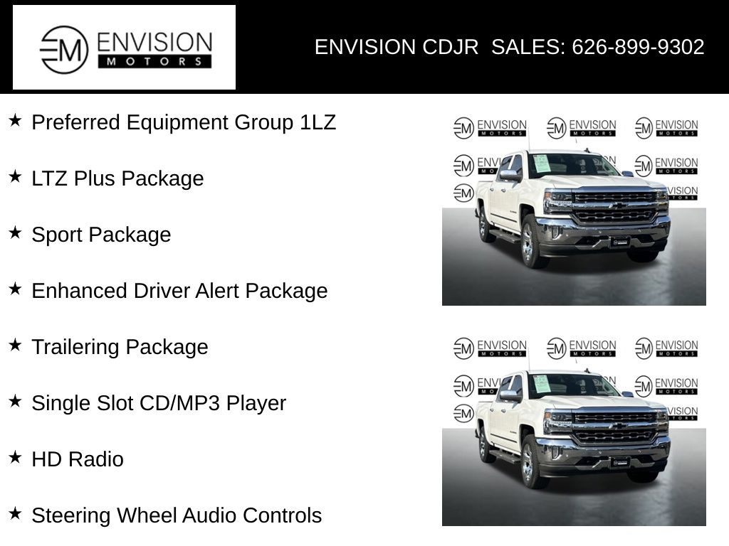 WE SPECIALIZE IN ALL CREDIT PROFILES! See what we can do for you! Call to find out (626) 899-9302.Clean CARFAX.8-Speed Automatic with Overdrive, Jet Black Leather, 110-Volt AC Power Outlet, 150 Amp Alternator, 4.2" Diagonal Color Display Driver Info Center, 6 Speaker Audio System, Auto-Dimming Inside Rear-View Mirror, Auxiliary External Transmission Oil Cooler, Bluetooth® For Phone, Chrome Bodyside Moldings, Chrome Cap Power-Adjustable Heated Outside Mirrors, Chrome Door Handles, Chrome Grille Surround, Chrome Mirror Caps, Color-Keyed Carpeting w/Rubberized Vinyl Floor Mats, Deep-Tinted Glass, Driver & Front Passenger Illuminated Vanity Mirrors, Dual-Zone Automatic Climate Control, Electric Rear-Window Defogger, Enhanced Driver Alert Package, EZ Lift & Lower Tailgate, Forward Collision Alert, Front Chrome Bumper, Front Frame-Mounted Black Recovery Hooks, HD Radio, Heavy-Duty Rear Locking Differential, IntelliBeam Automatic High Beam On/Off Headlight, Lane Keep Assist, Leather Wrapped Heated Steering Wheel, Leather Wrapped Steering Wheel w/Cruise Controls, LED Taillamps w/Signature, Low Speed Forward Automatic Braking, LTZ Plus Package, Manual Tilt/Telescoping Steering Column, OnStar 3 Months Guidance Plan, OnStar w/4G LTE, Power Adjustable Pedals, Power Sliding Rear Window, Power Windows w/Driver Express Up, Preferred Equipment Group 1LZ, Rear 60/40 Folding Bench Seat (Folds Up), Rear Chrome Bumper, Rear Vision Camera, Rear Wheelhouse Liners, Remote Keyless Entry, Remote Locking Tailgate, Remote Vehicle Starter System, Single Slot CD/MP3 Player, Sport Package, Steering Wheel Audio Controls, Theft Deterrent System (Unauthorized Entry), Thin Profile LED Fog Lamps, Trailering Package, Ultrasonic Front & Rear Park Assist, Universal Home Remote, Wheels: 20" x 9" Chrome.Iridescent Pearl Tricoat2017 Chevrolet Silverado 1500 LTZ RWD 8-Speed Automatic with Overdrive EcoTec3 6.2L V8**********All Pricing and Advertised Prices for any/all vehicles offered for sale does not include dealer installed accessories which can be purchased for an additional cost.********** The Factory Rebates may not be available on this vehicle if you elect to take advantage of a Special Alternative APR or Special Lease program. Some Factory Rebates are California Resident specific and may vary for residents of other states. NO sales to Dealers, Brokers or Exporters. For out of state purchase, customers must be present to purchase. If shipping is required, dealership must facilitate; no exceptions. Please contact us for special Multi-Vehicle or Fleet pricing. Prices are plus government fees and taxes, any finance charges, $85 documentary fee, $29 electronic registration fee, any emission testing charge and $1.75 per new tire state tire fee. *** We make every effort to provide accurate information, but please verify before purchasing. Leasing & financing available on approved credit. Trade-ins accepted. Subject to prior sale.Awards: * 2017 KBB.com 10 Most Awarded BrandsReviews: * Quick acceleration and strong towing/hauling ability thanks to available V8 engines; front seats are comfortable for long drives; cabin is pleasingly quiet at highway speeds; long list of available options allow for extensive customization. Source: Edmunds